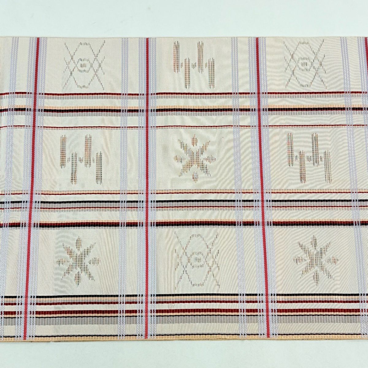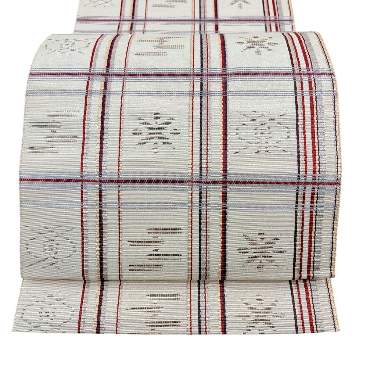 名古屋帯 秀品 八寸名古屋帯 松葉仕立て 格子 流水 薄小豆 正絹