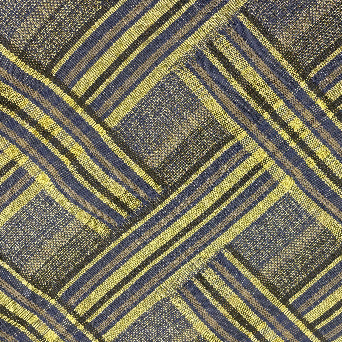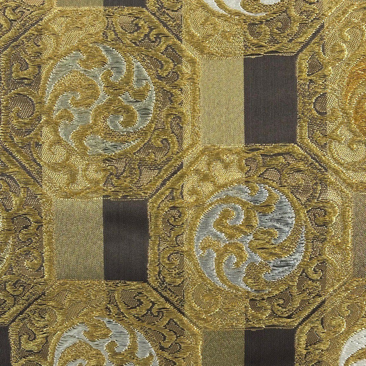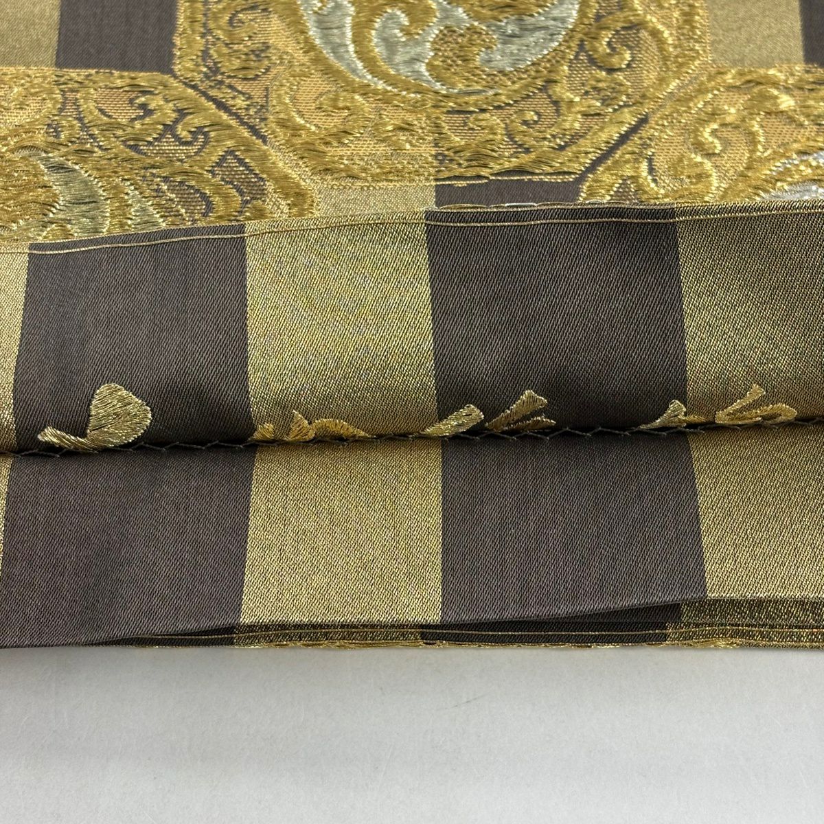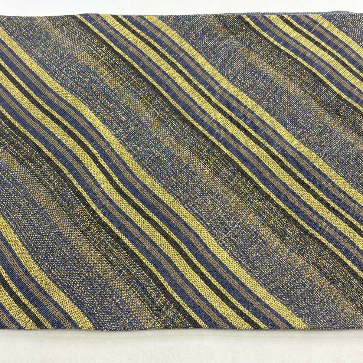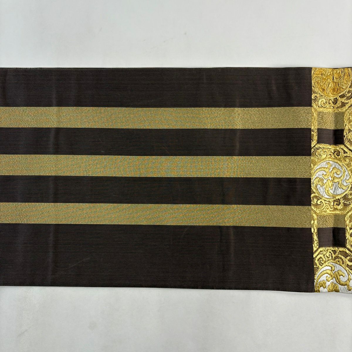 【美品】 袋帯 秀品 芝 幾何学模様 箔 黄土色 全通 正絹