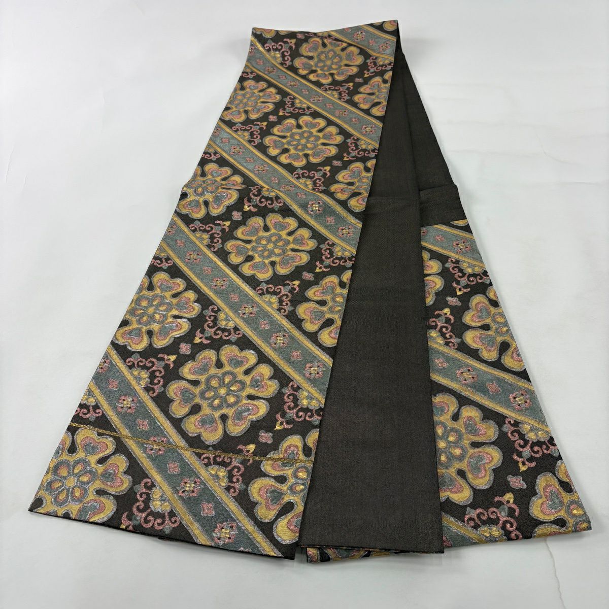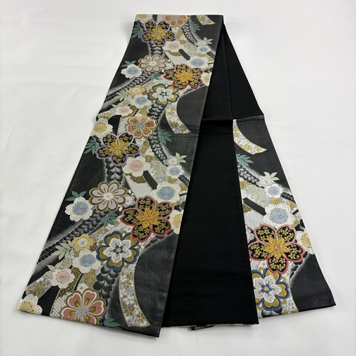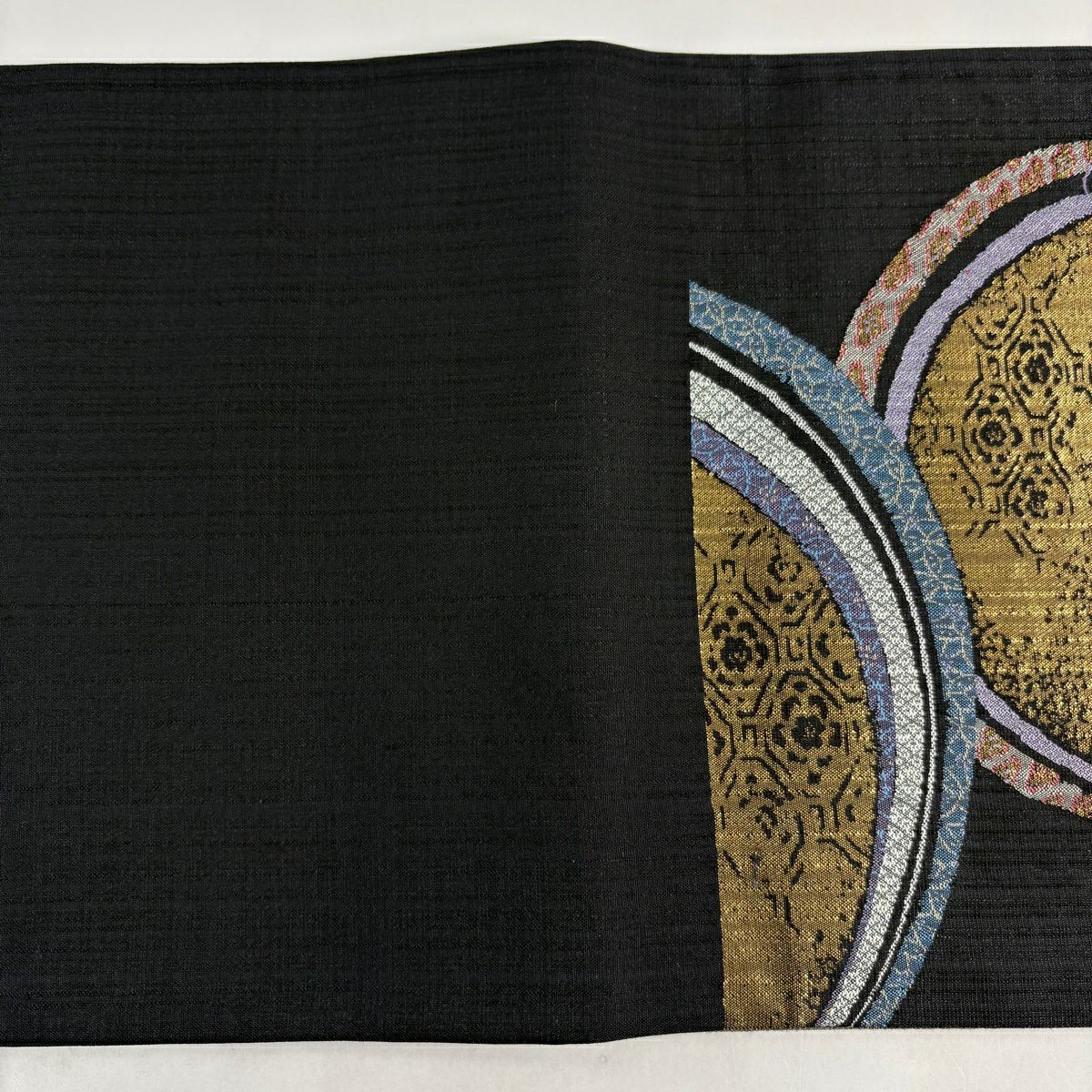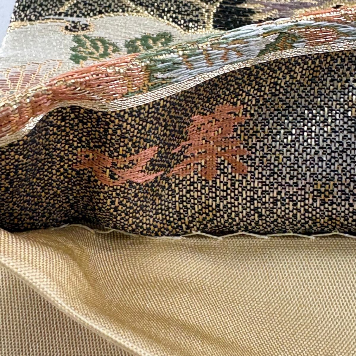 【美品】 袋帯 秀品 蜀江文 花 箔 刺繍 墨色 六通 正絹
