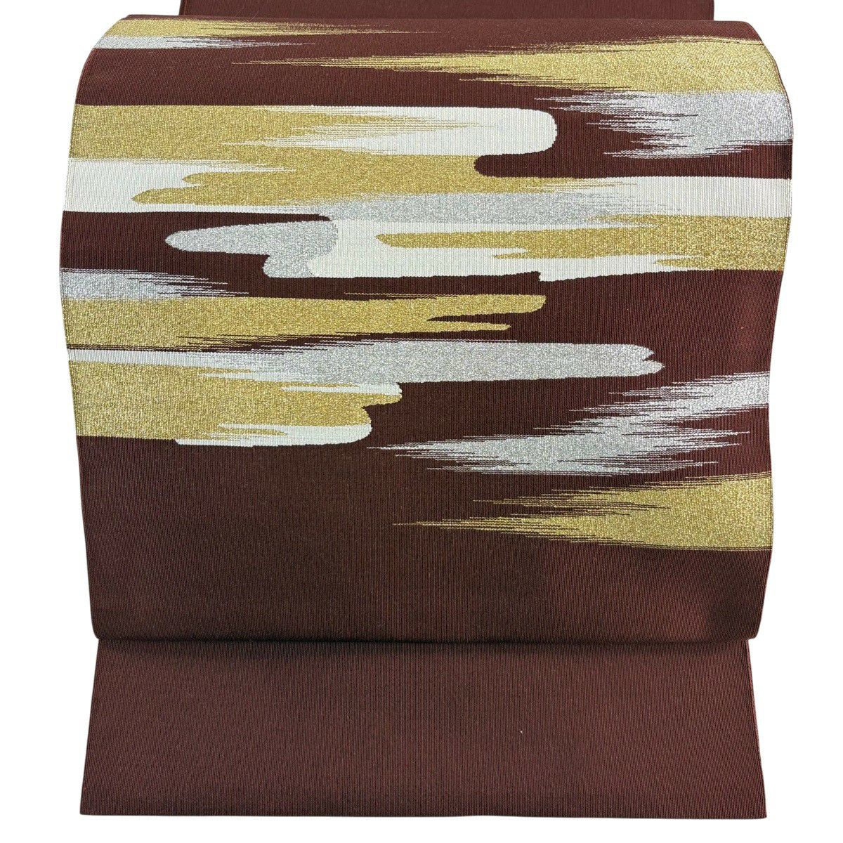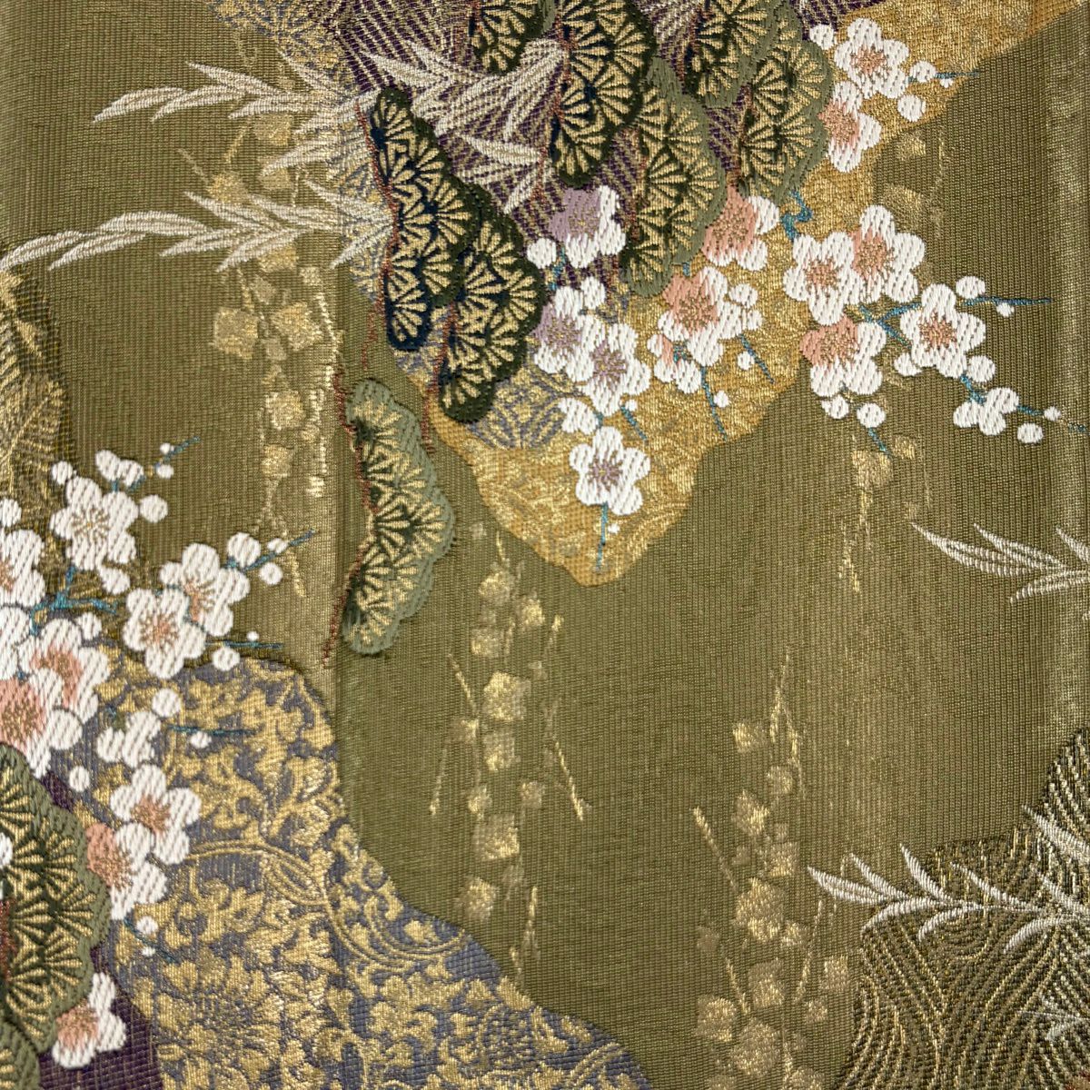 【美品】 袋帯 秀品 武田菱霞風彩 金糸 茶緑色 六通 正絹
