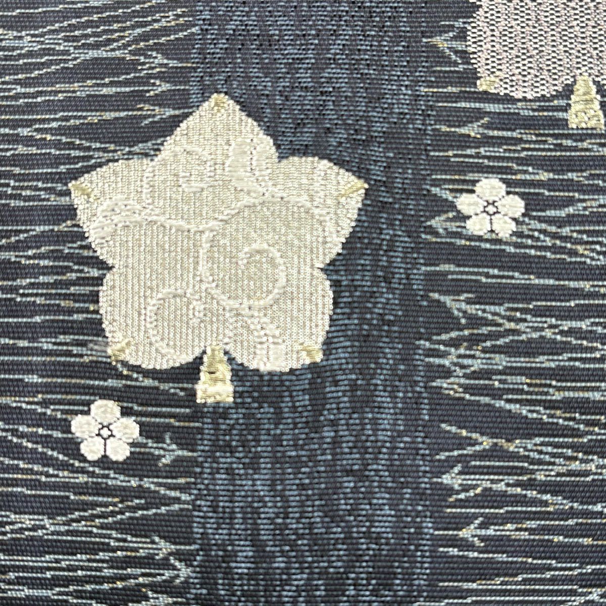 袋帯 秀品 鈴乃屋 桜花爛漫 金銀糸 刺繍 濃紺 六通 正絹
