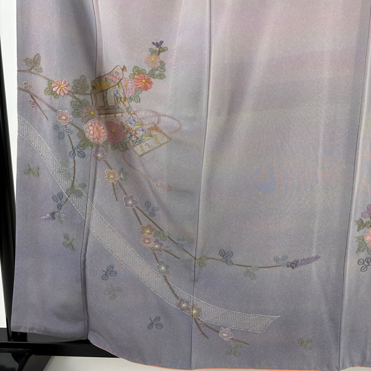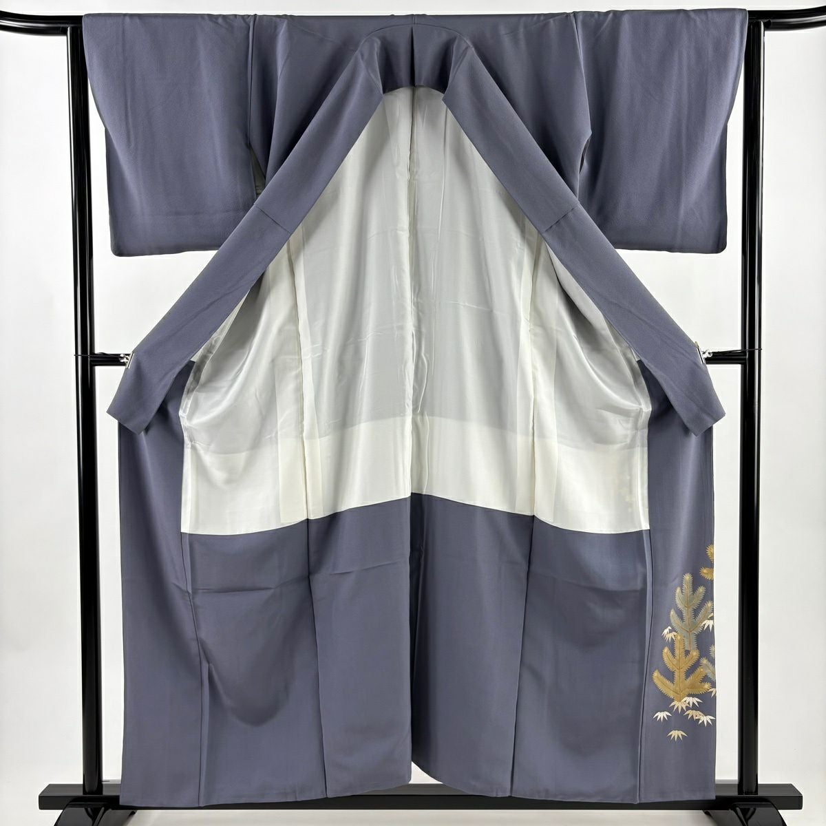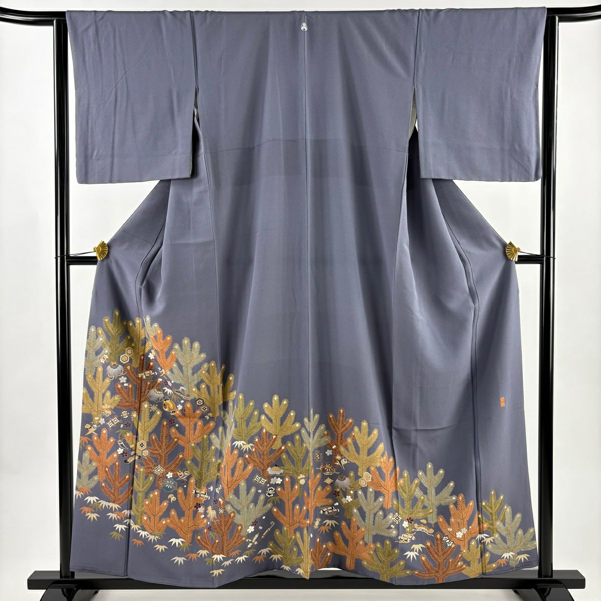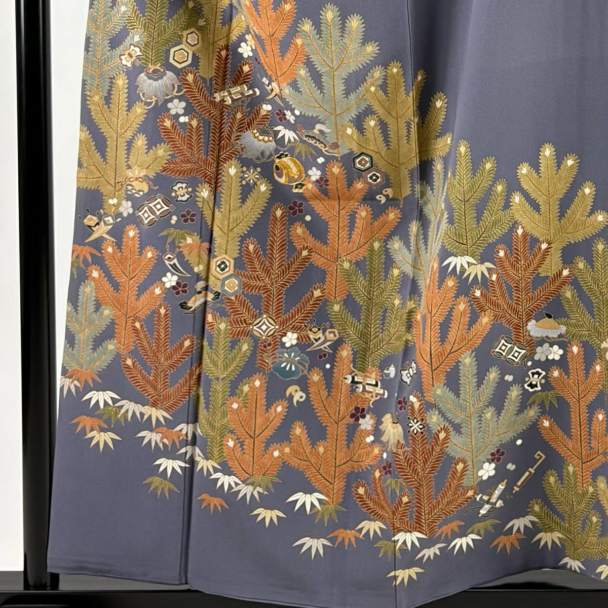 色留袖 身丈157.5cm 裄丈63.5cm S 袷 落款あり 松竹梅 宝尽くし 金糸 金彩 灰紫 正絹 秀品 一つ紋