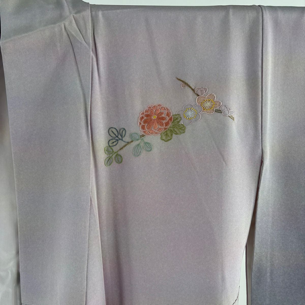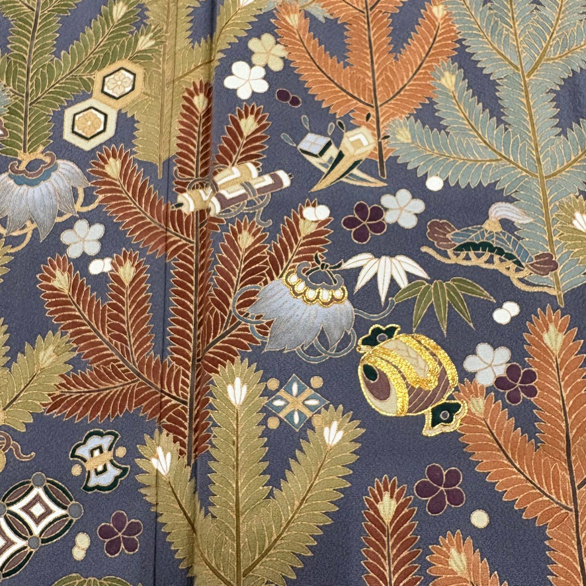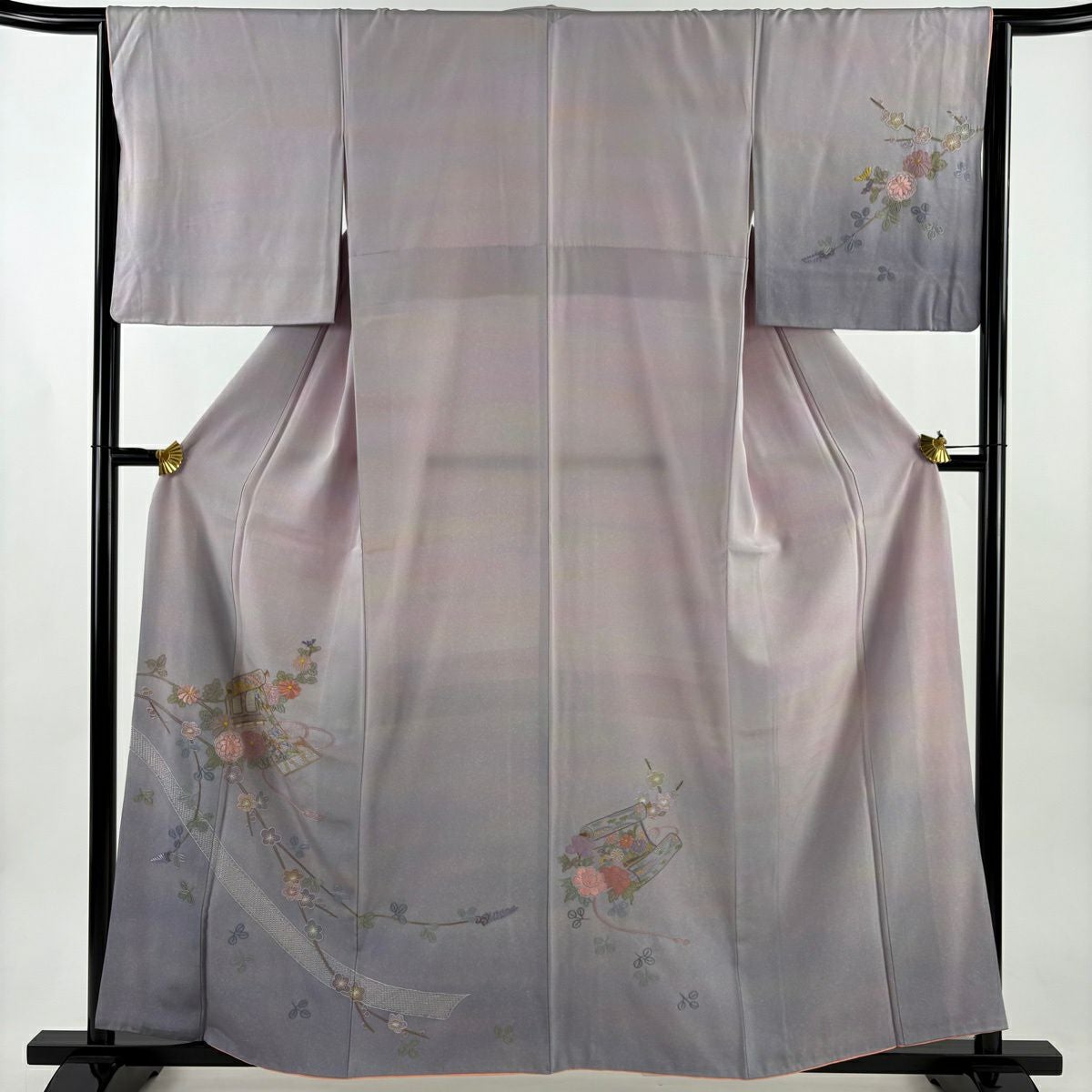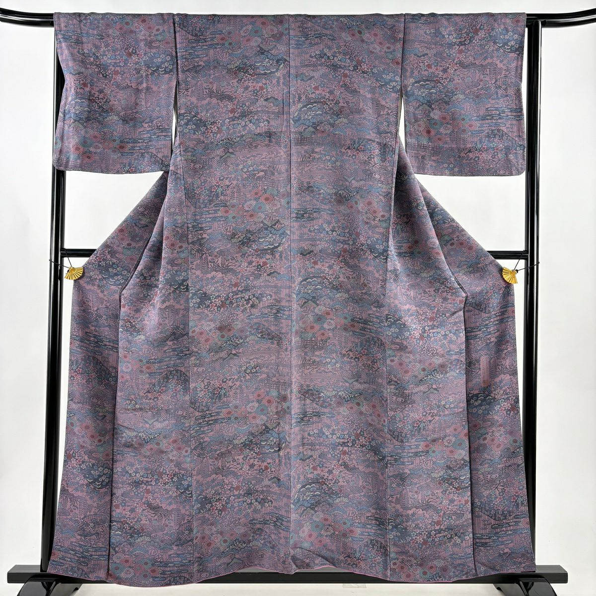 色留袖 身丈157.5cm 裄丈63.5cm S 袷 落款あり 松竹梅 宝尽くし 金糸 金彩 灰紫 正絹 秀品 一つ紋