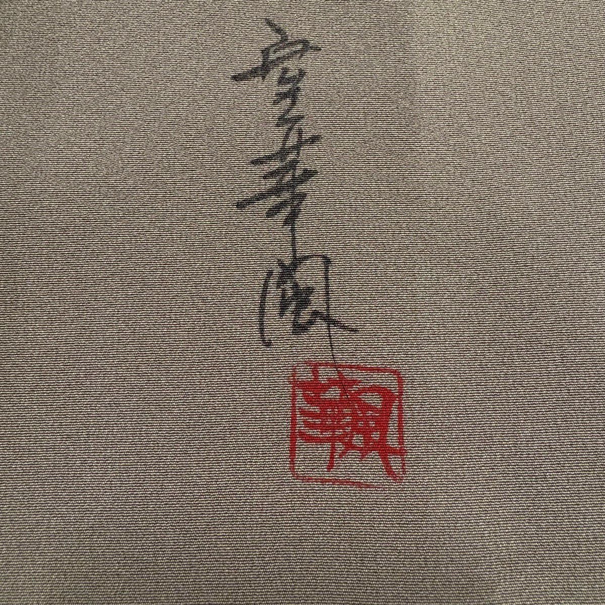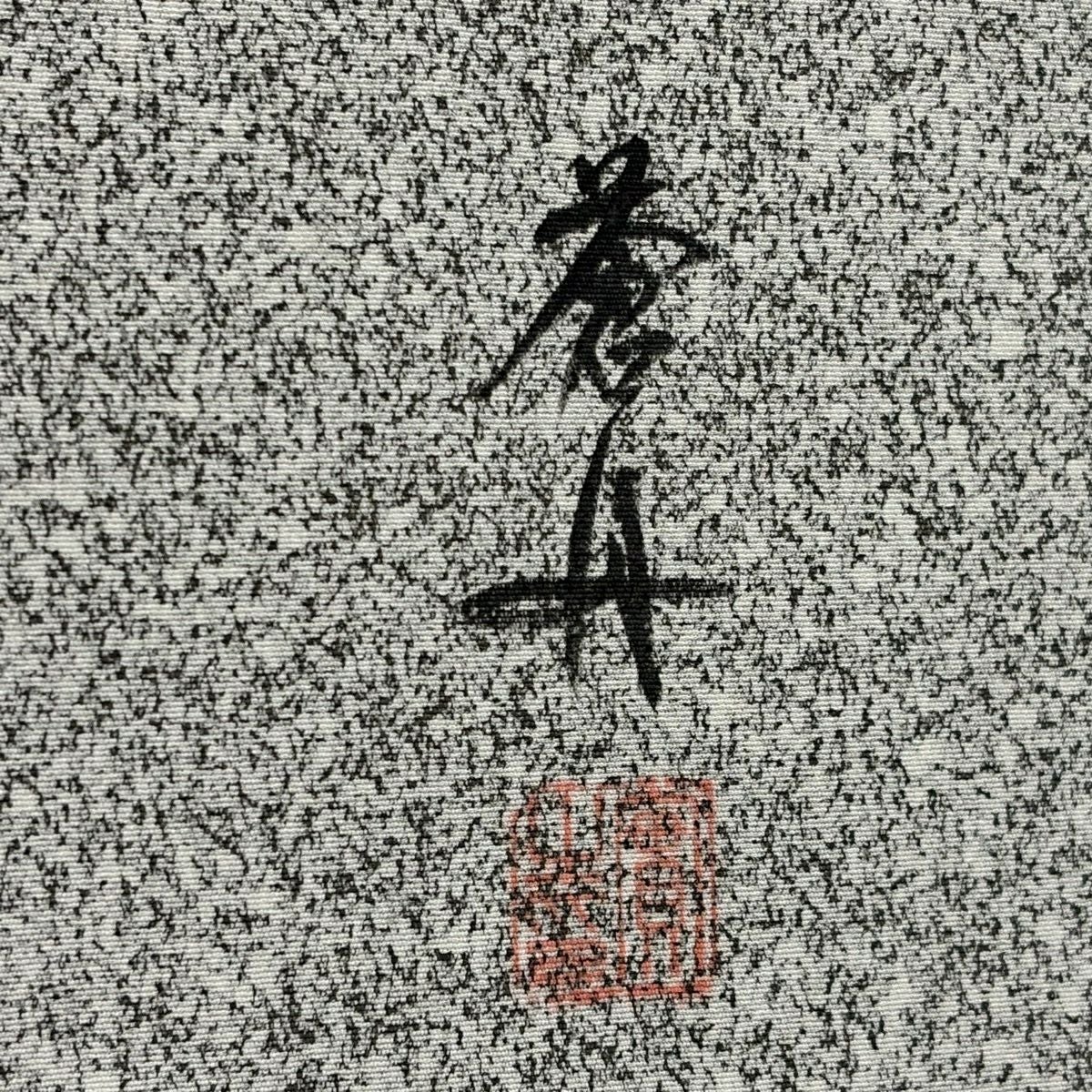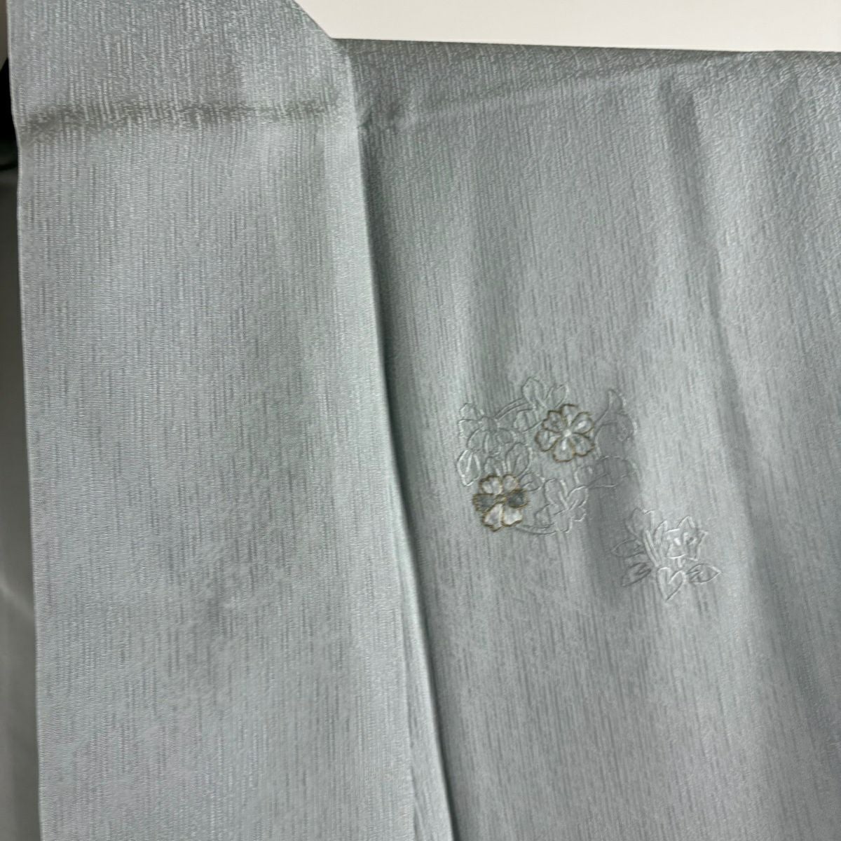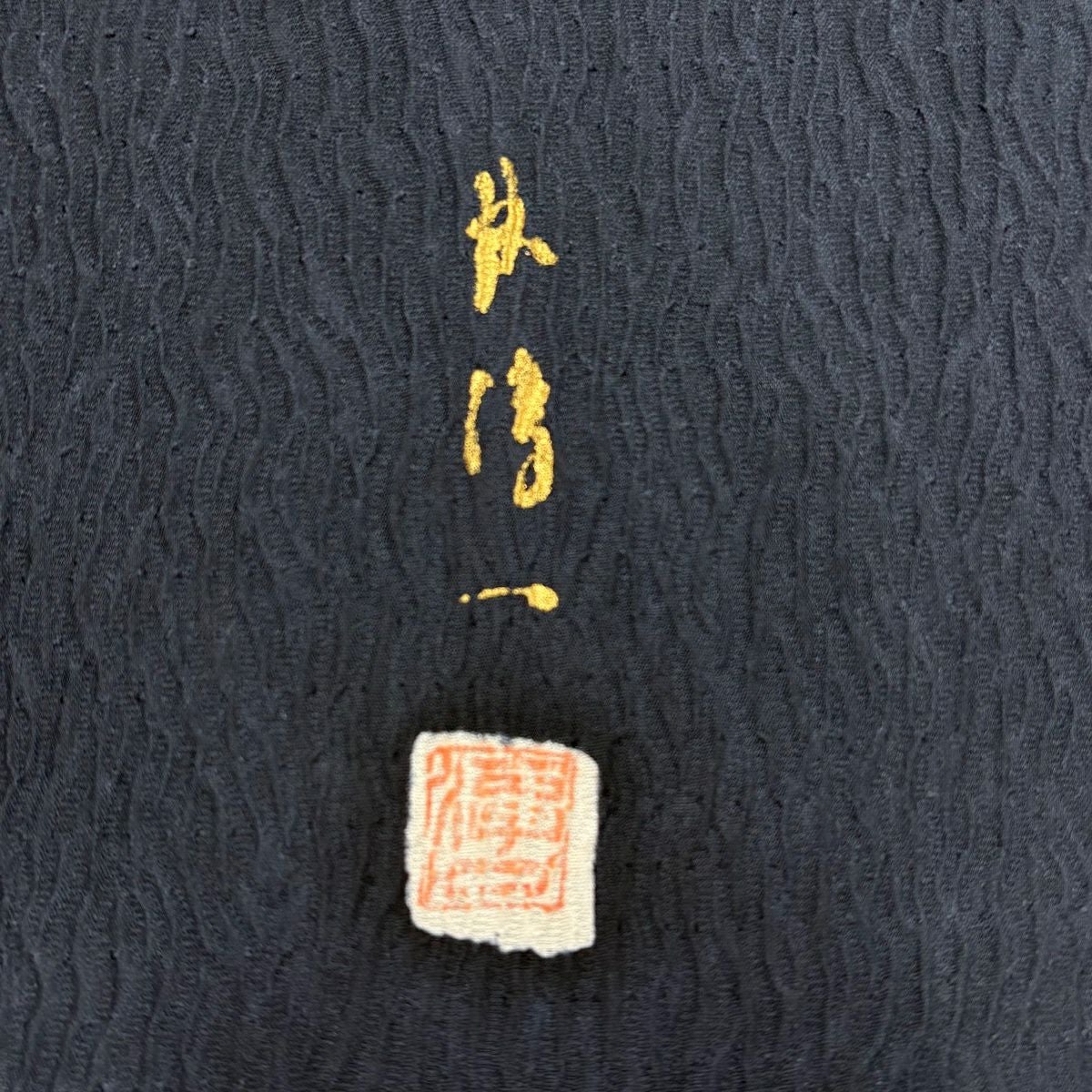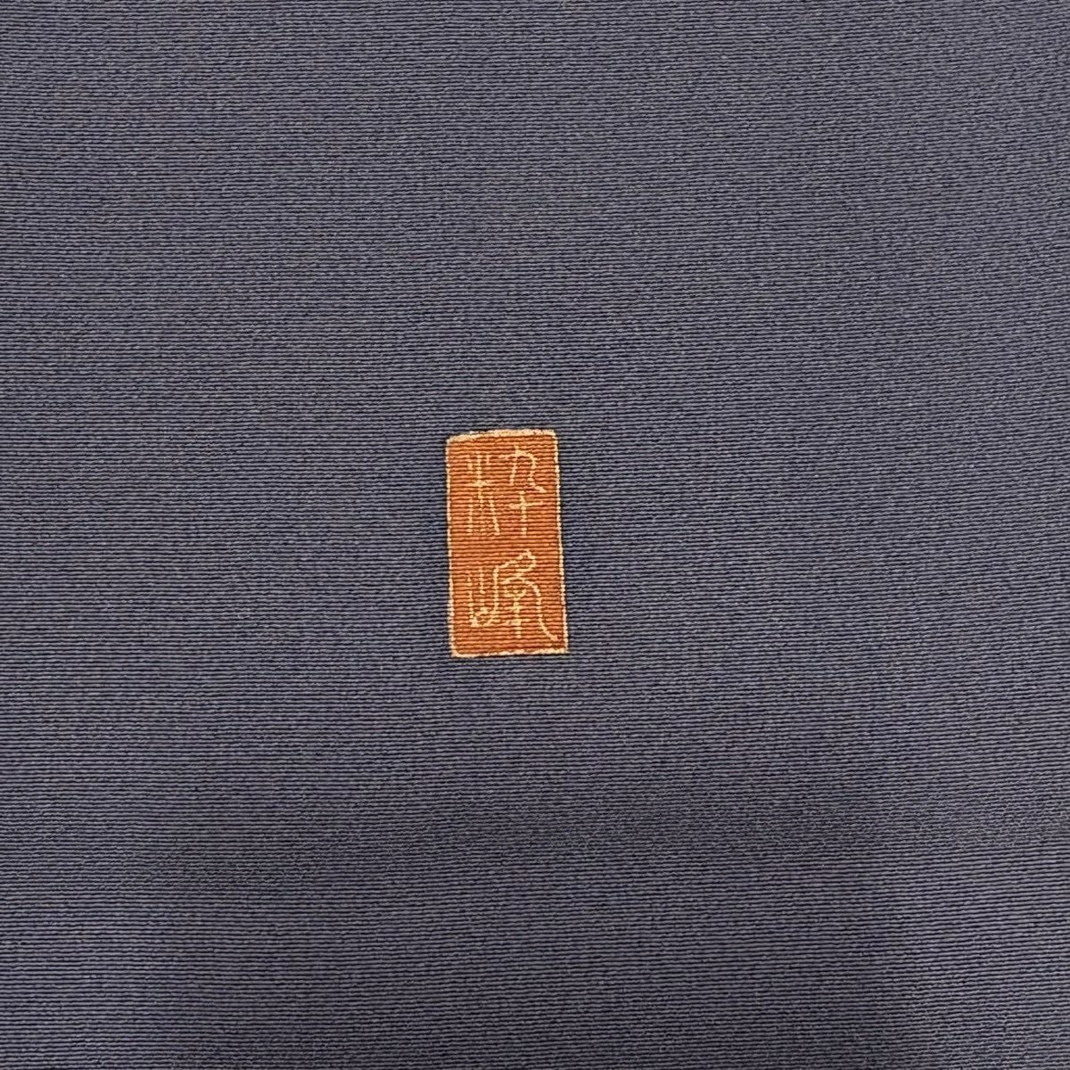 【美品】 付下げ 身丈160cm 裄丈62cm S 袷 中村勘三郎 落款あり 鶴 草花 刺繍 青灰色 正絹 秀品