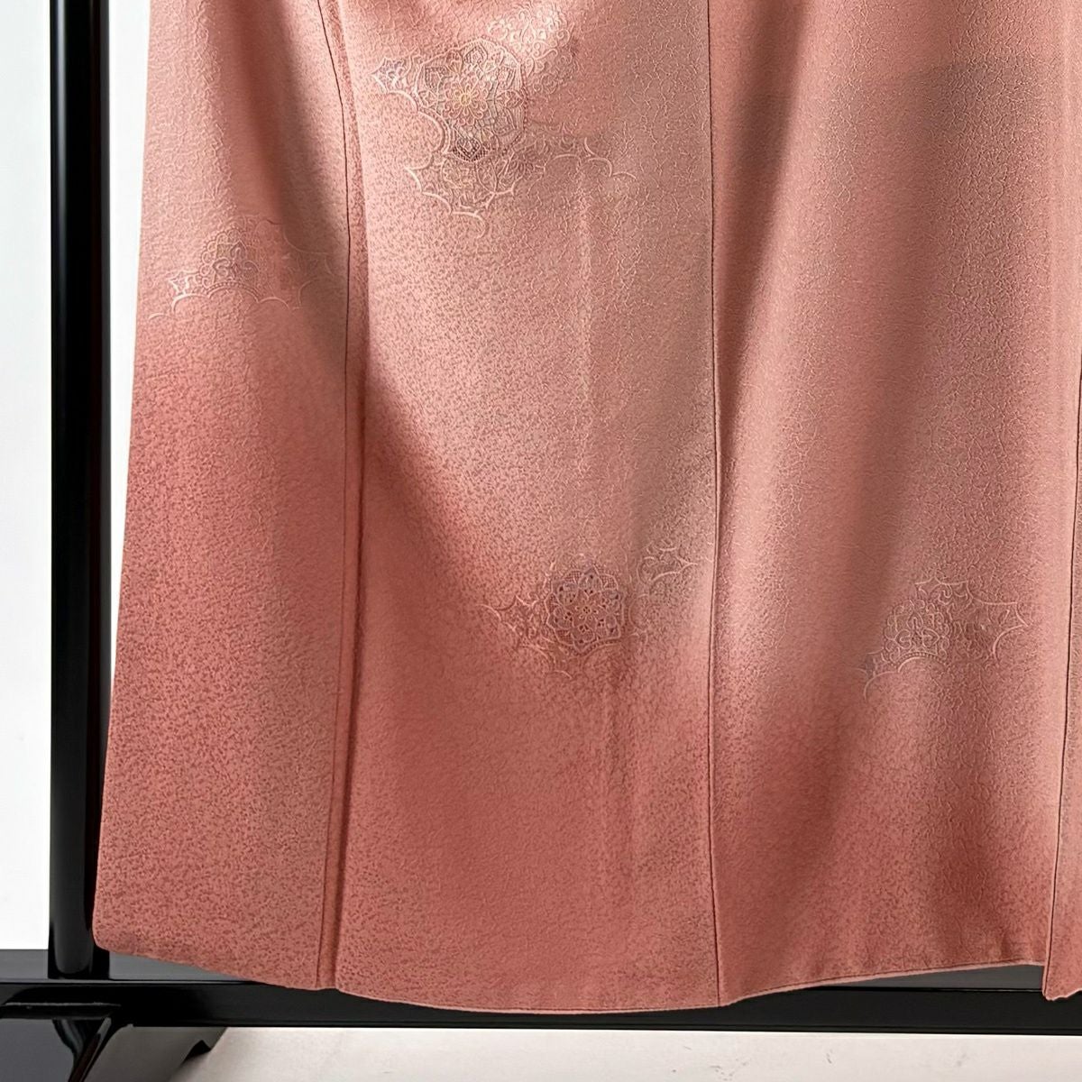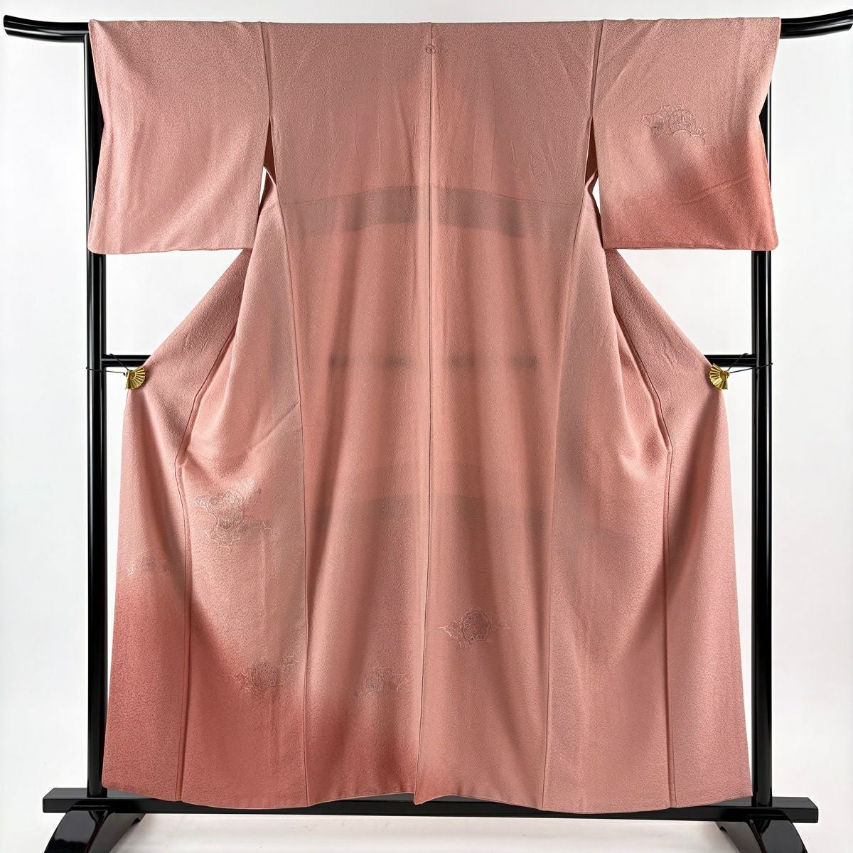 【美品】 訪問着 身丈164.5cm 裄丈64.5cm M 袷 雲文 花丸文 金彩 ぼかし サーモンピンク 正絹 秀品