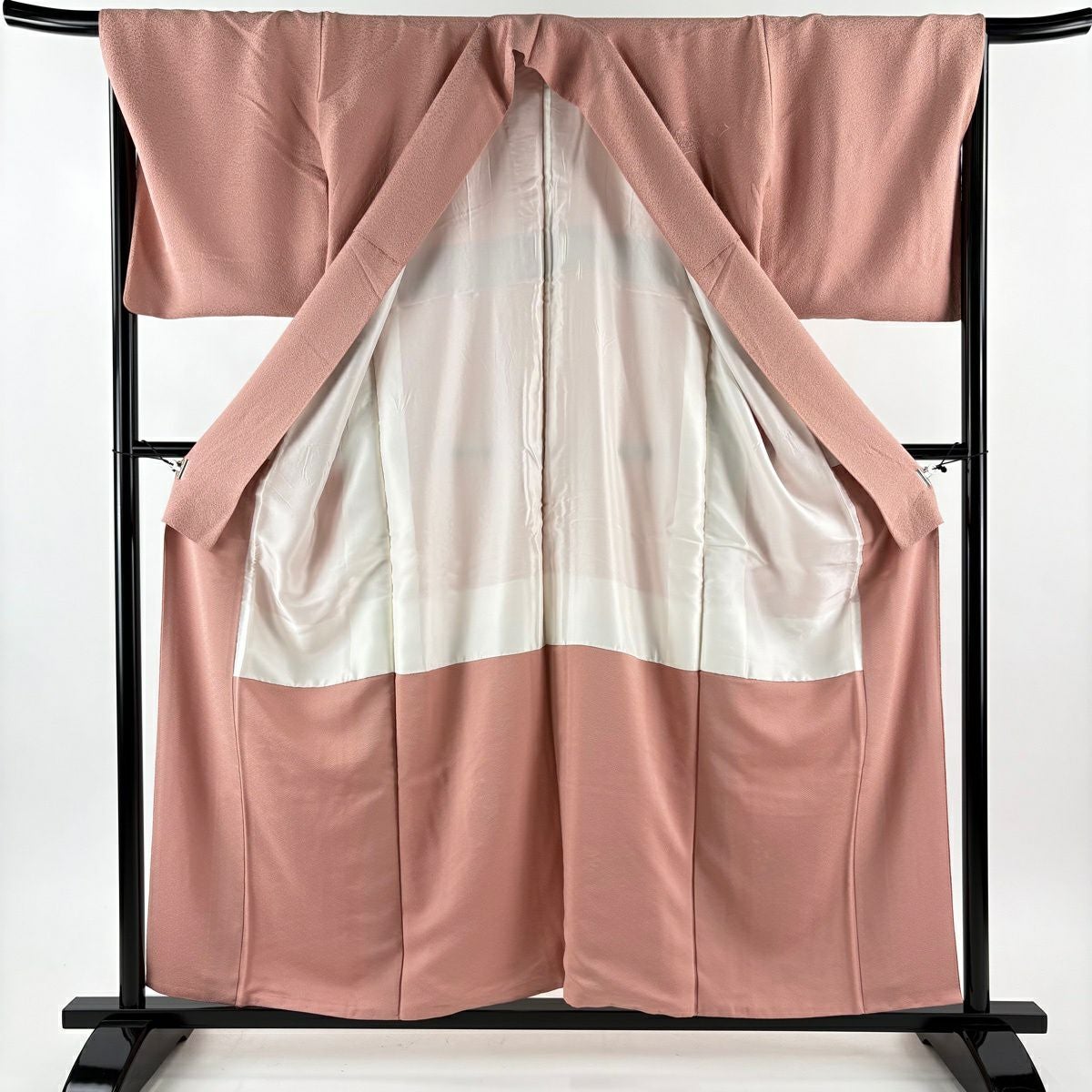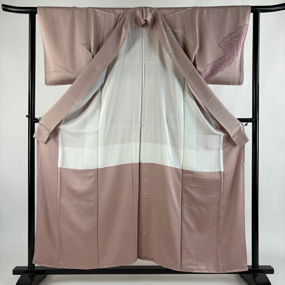 【美品】 付下げ 身丈156.5cm 裄丈67.5cm L 袷 華文 逆さ雲取り 刺繍 ピンク 正絹 秀品 一つ紋