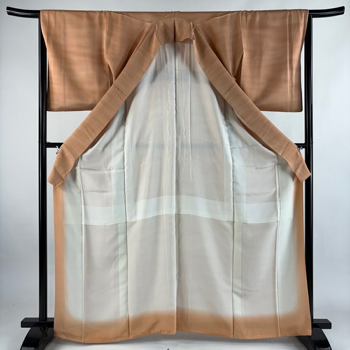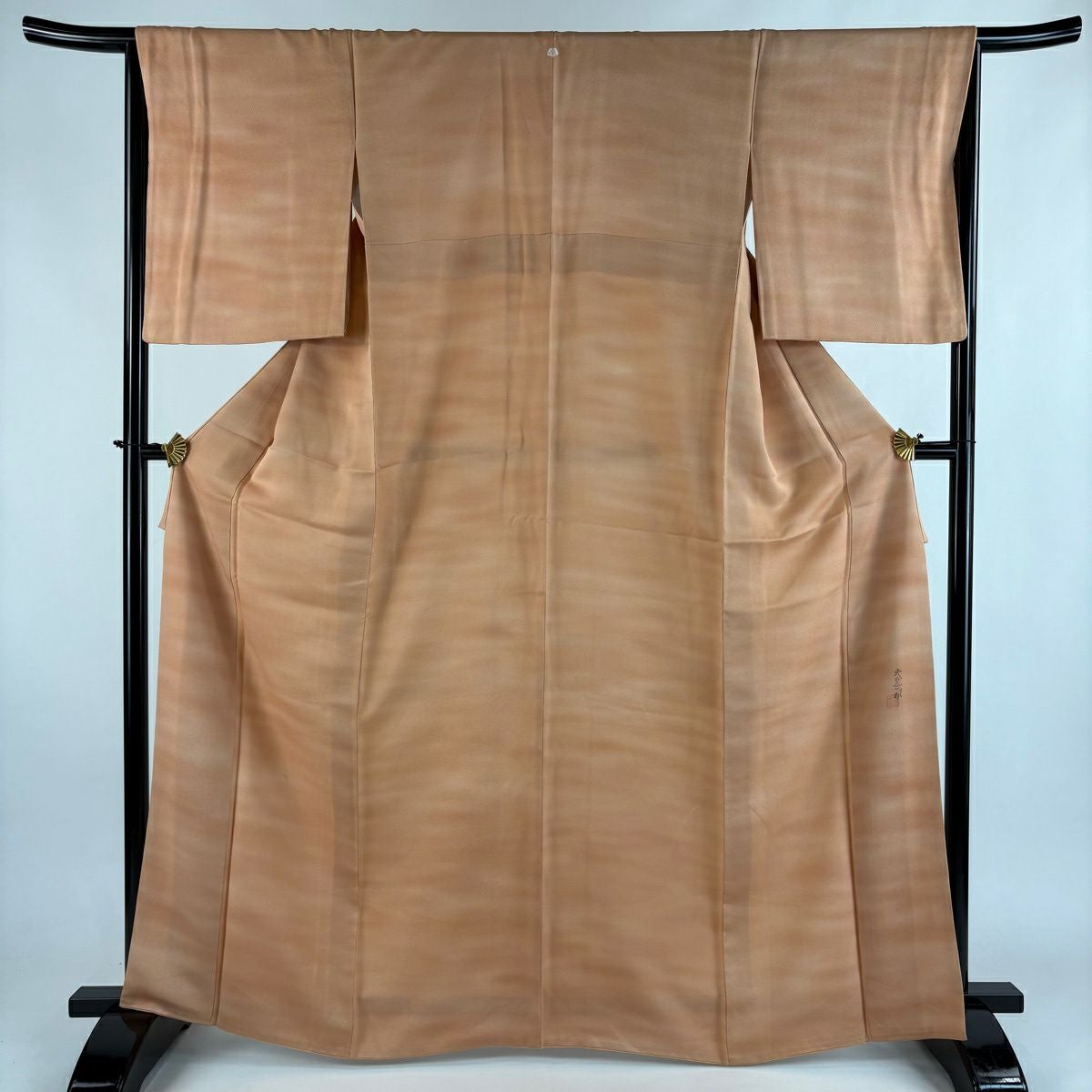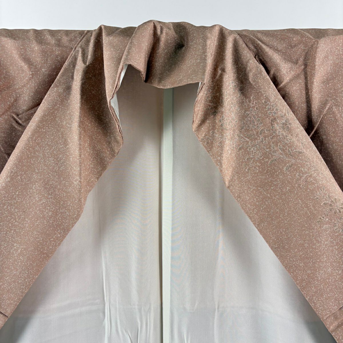 【美品】 道行 身丈107cm 裄丈67cm M 和装コート 角衿 地紋 ぼかし ピンクベージュ 正絹 秀品