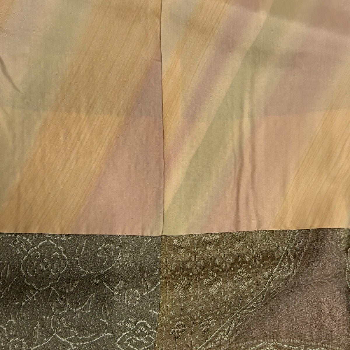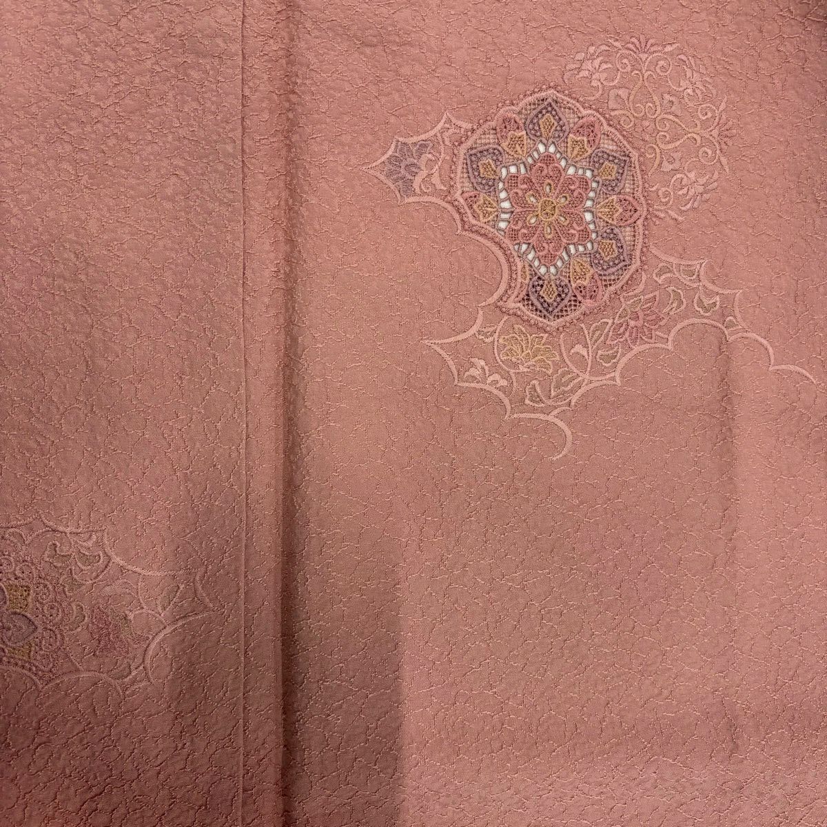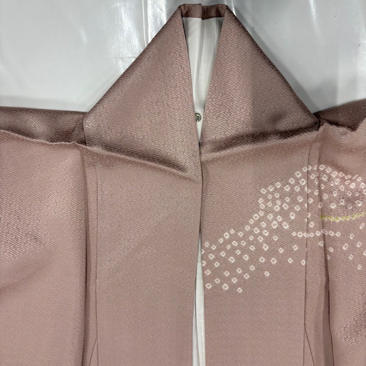 【美品】 道行 身丈107cm 裄丈67cm M 和装コート 角衿 地紋 ぼかし ピンクベージュ 正絹 秀品