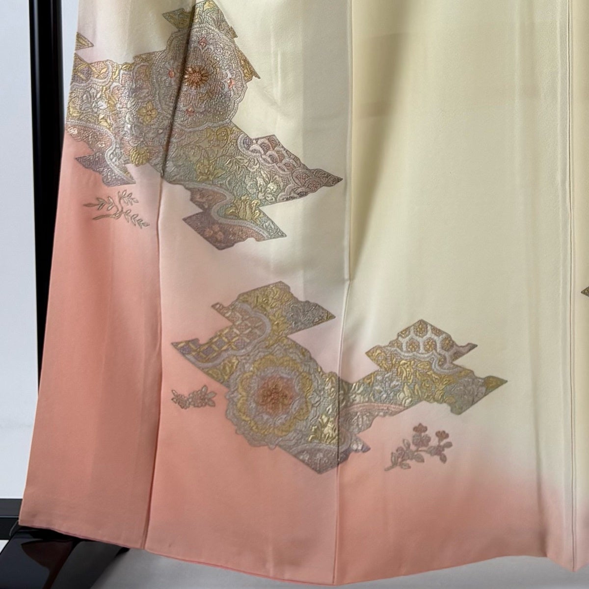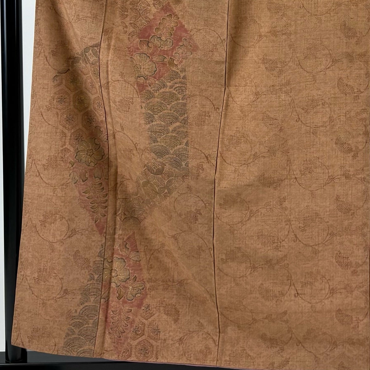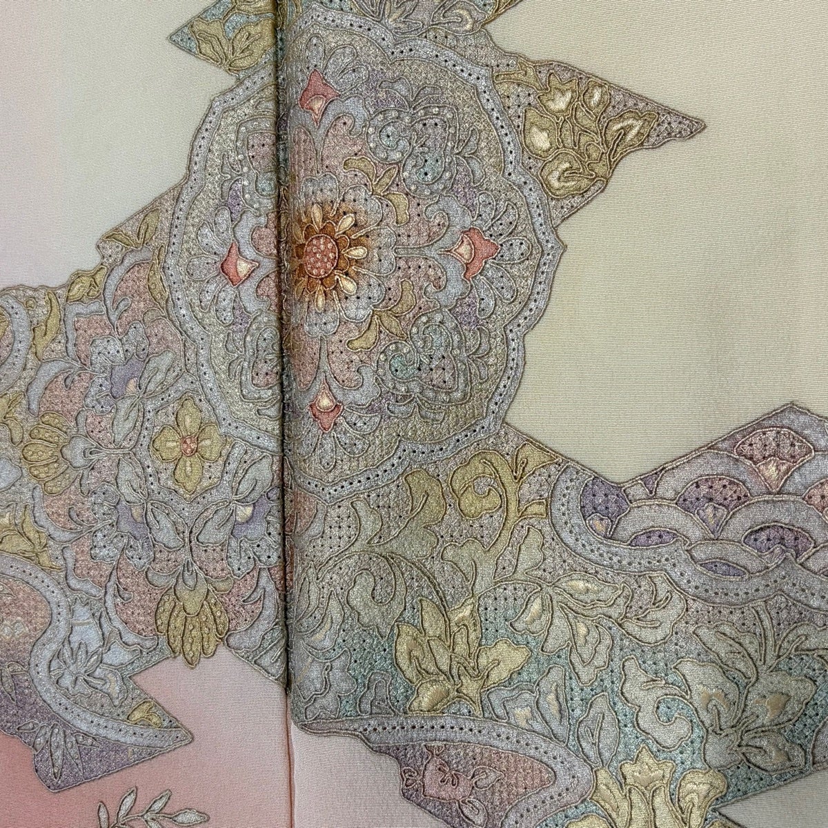付下げ 身丈161cm 裄丈62.5cm S 袷 華文 花唐草 金銀彩 刺繍 ベージュ 正絹 秀品