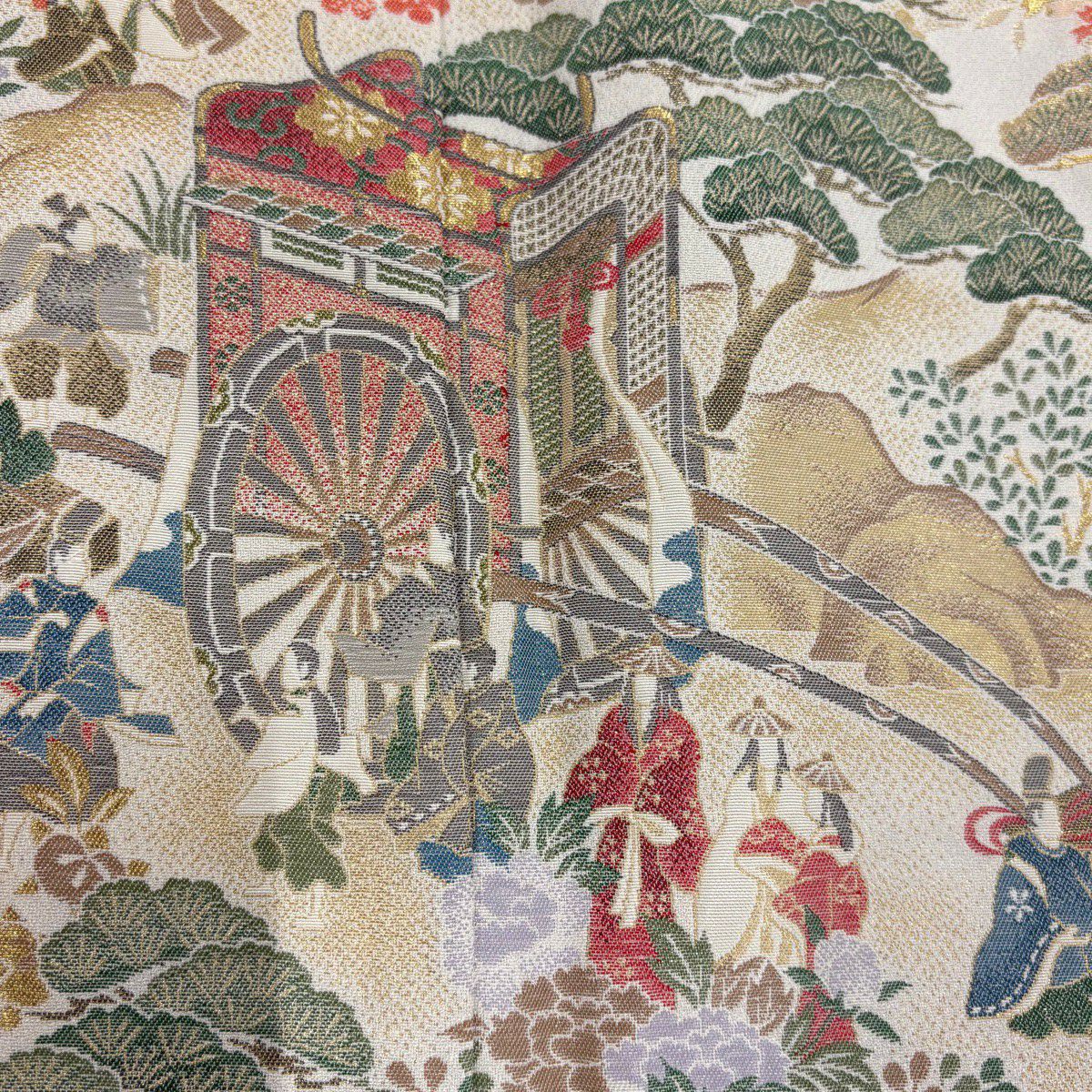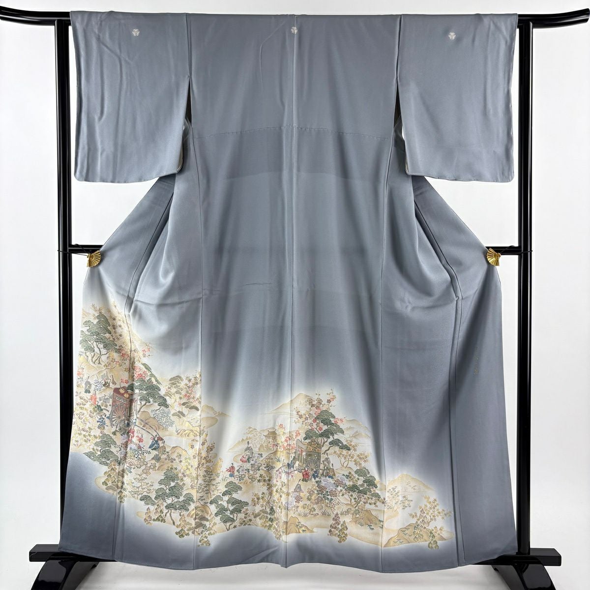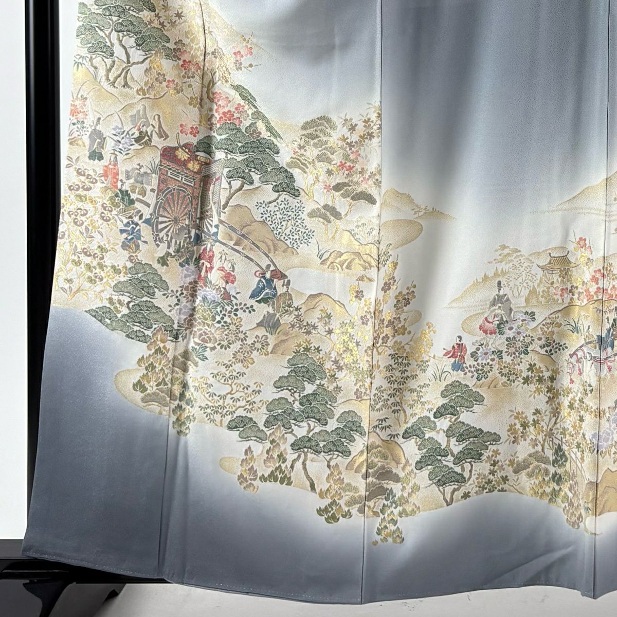 色留袖 身丈160cm 裄丈62.5cm S 袷 源氏の宴 御所車 人物 金糸 ぼかし 灰色 正絹 秀品 三つ紋