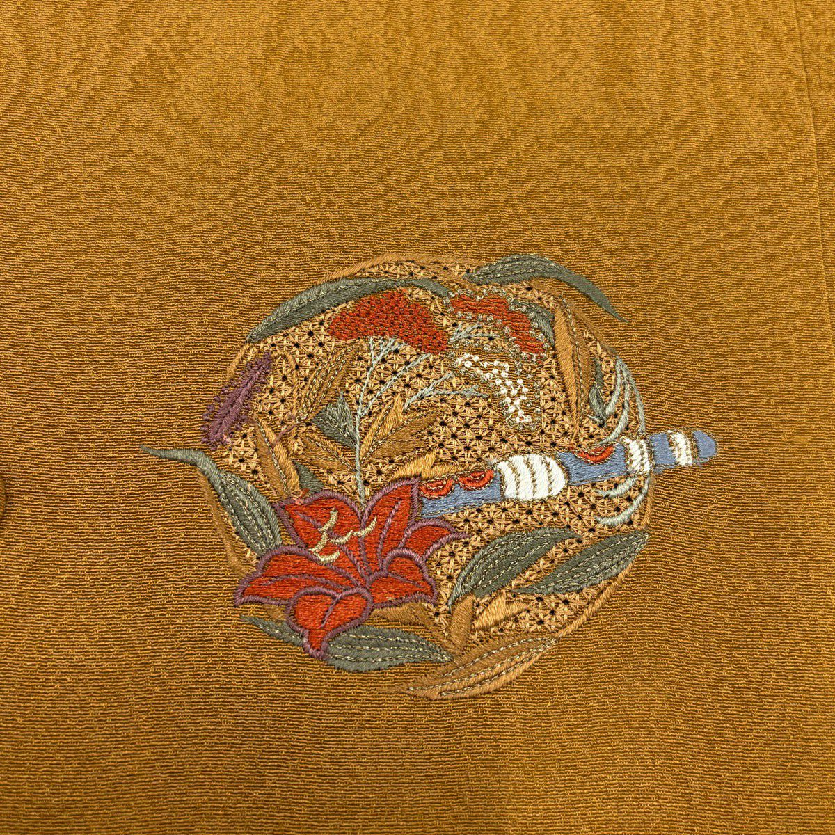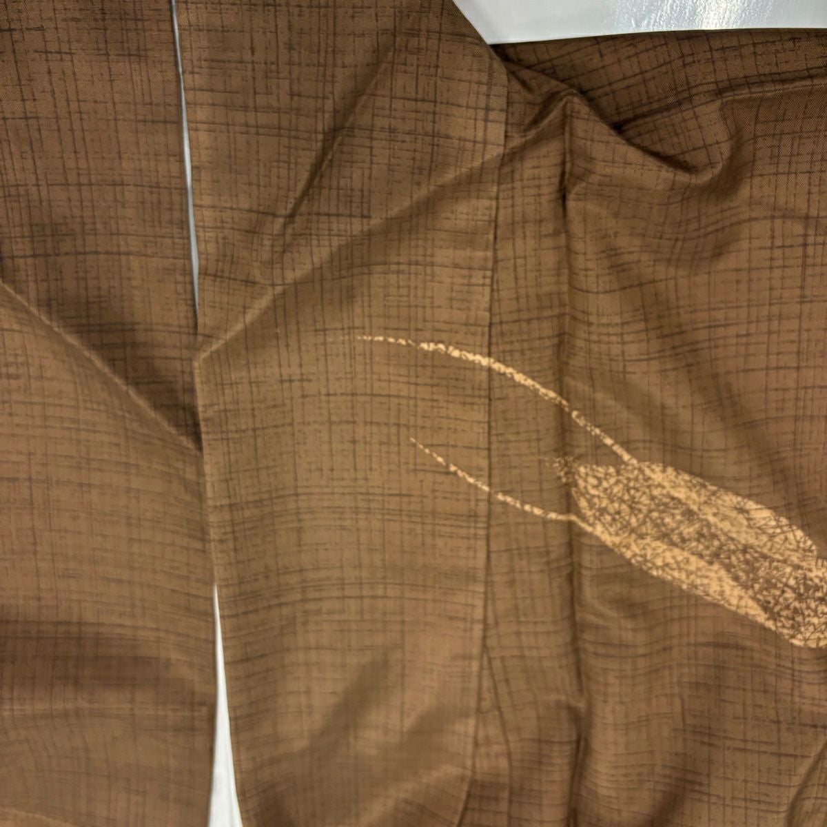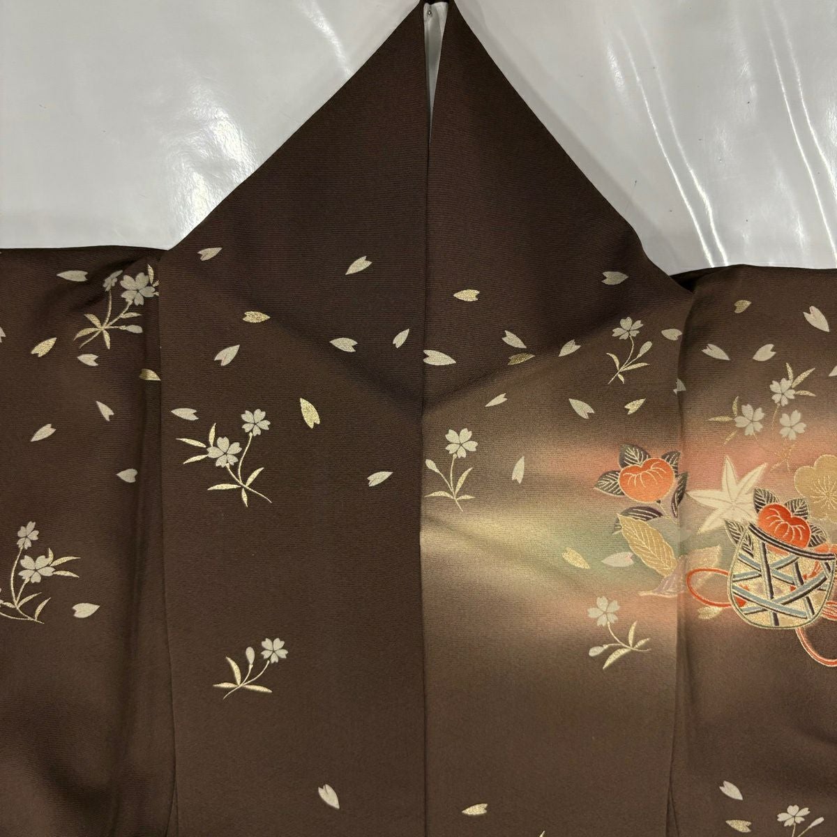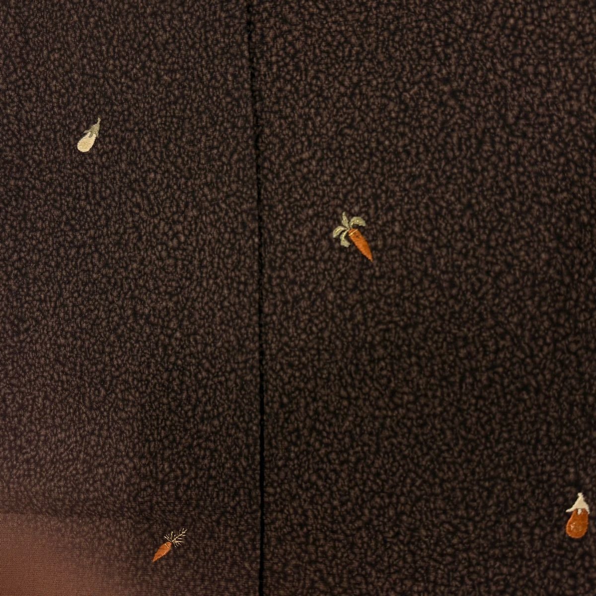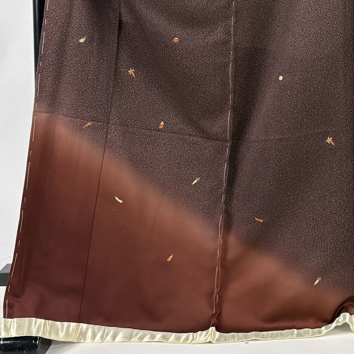 【美品】 付下げ 身丈174cm 裄丈70cm 未仕立て 仮絵羽 にんじん 野菜 刺繍 金糸 焦茶色 正絹 秀品