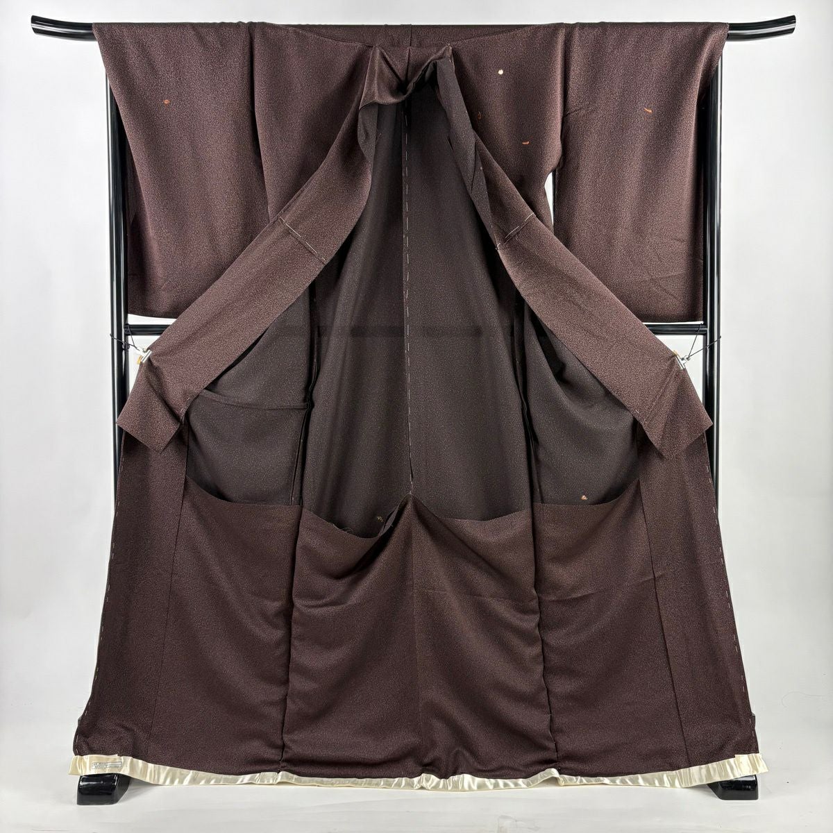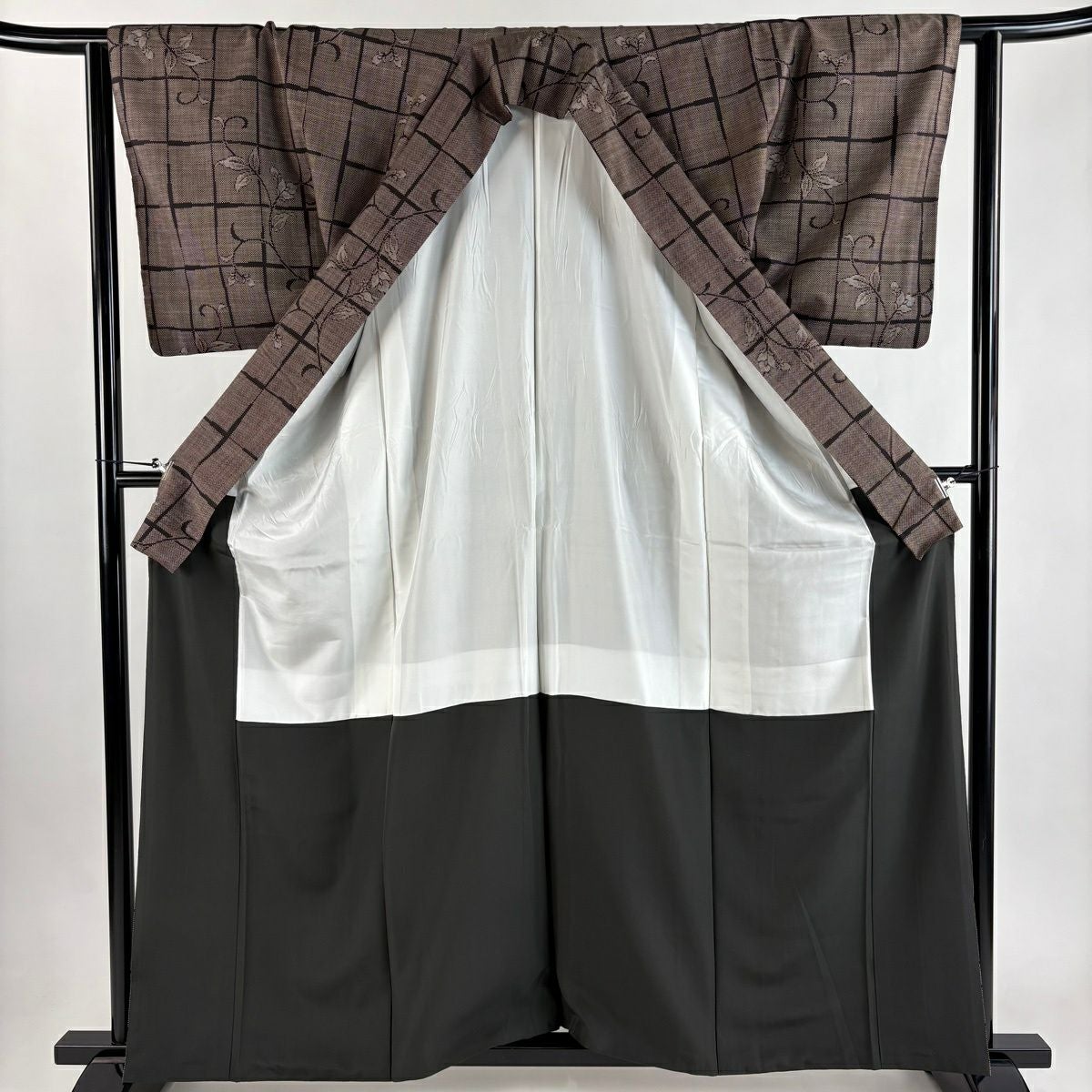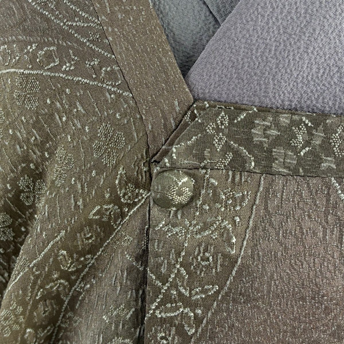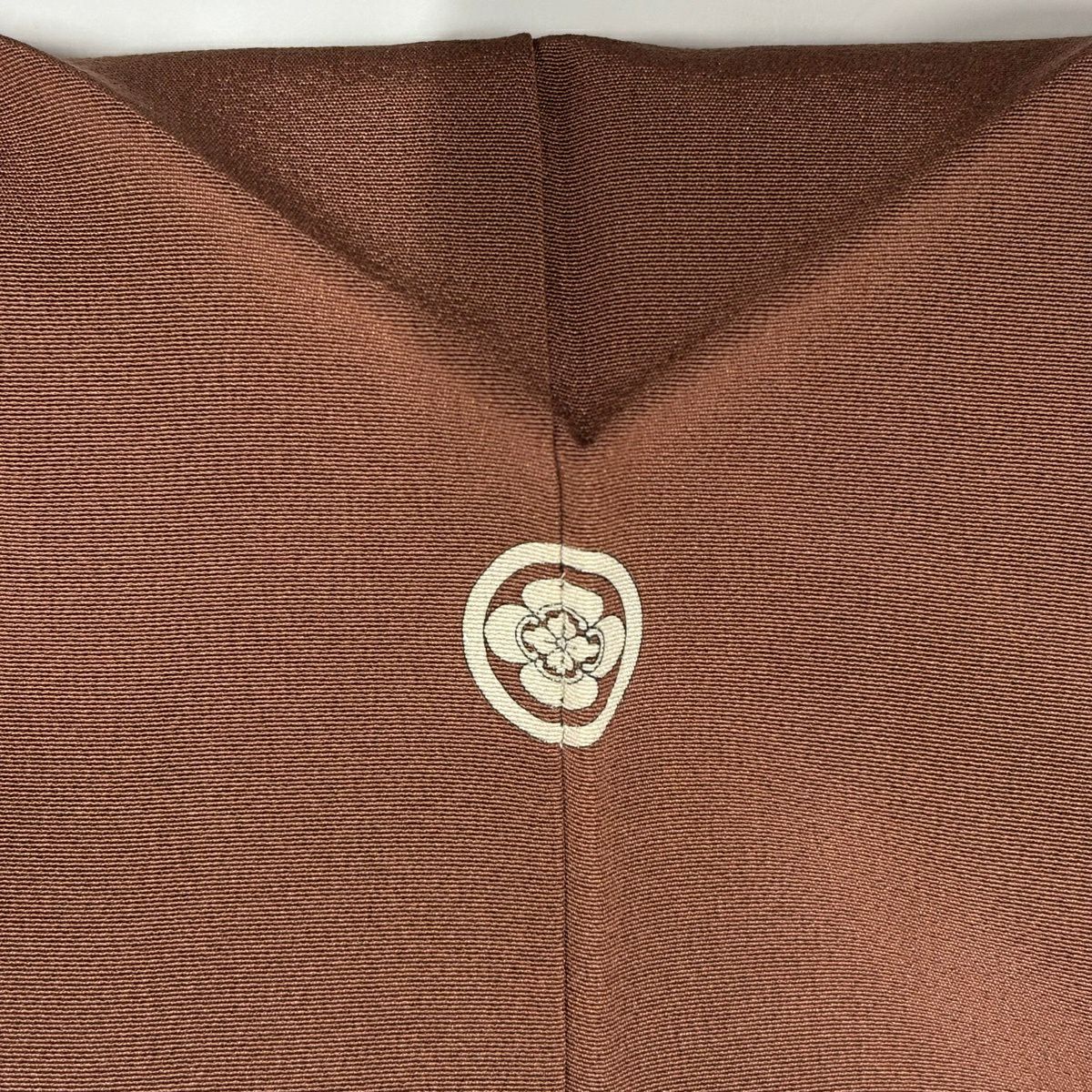 【美品】 道中着 身丈107.5cm 裄丈68cm L 和装コート 着物衿 寄せ柄 草花 縮緬 茶色 正絹 秀品