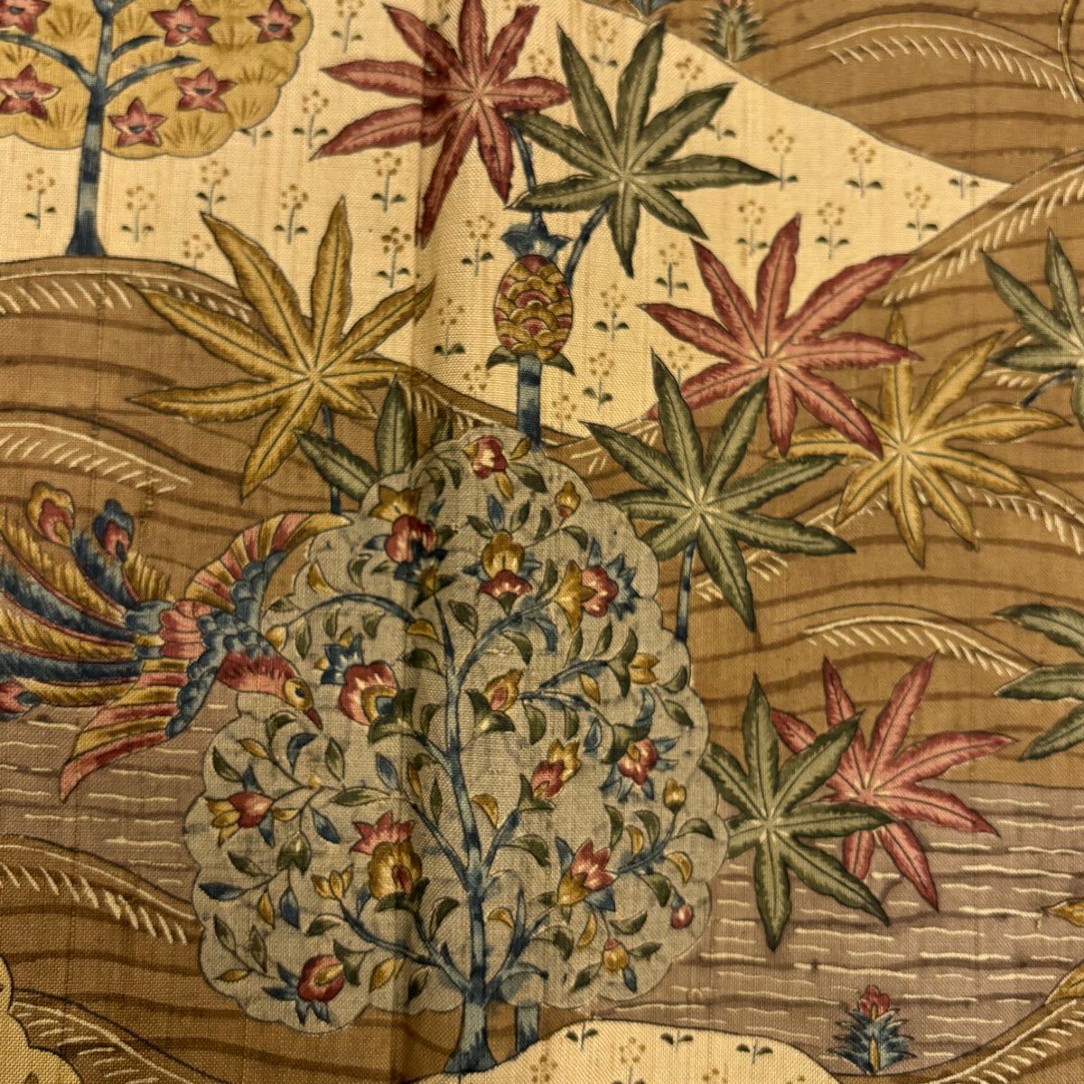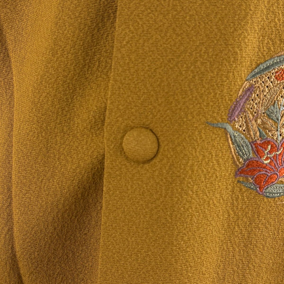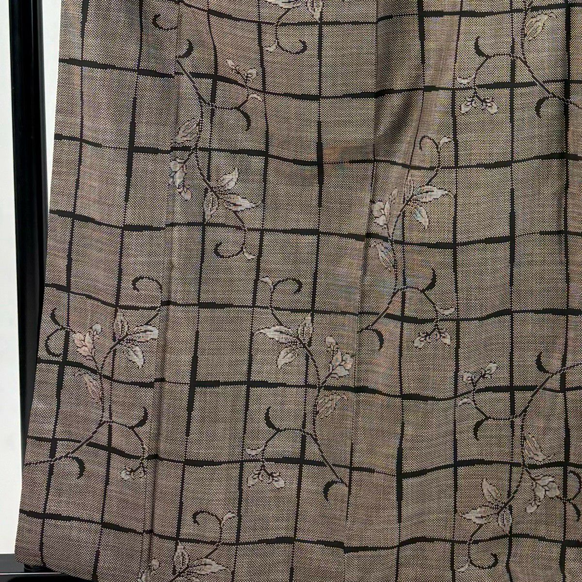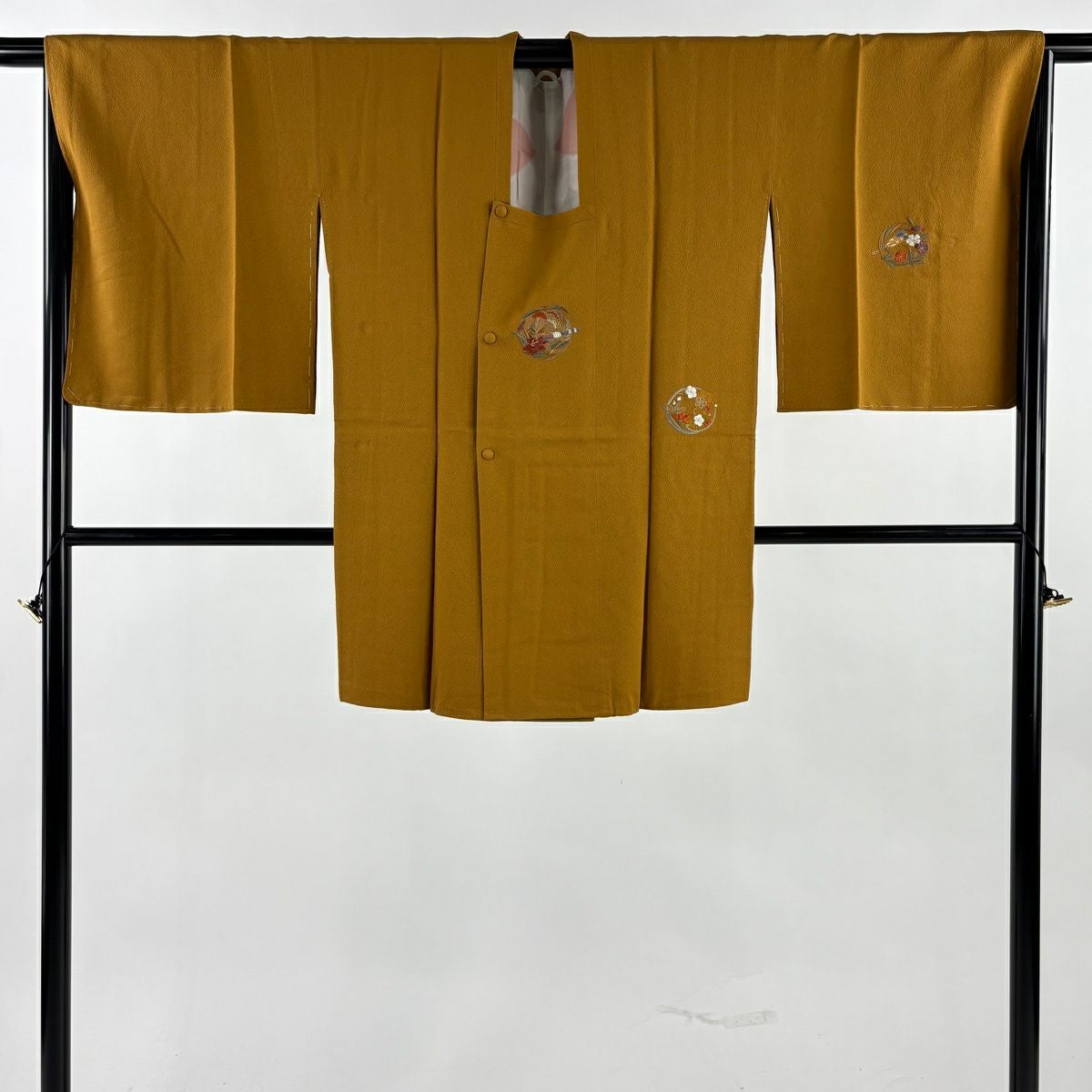 【美品】 道中着 身丈107.5cm 裄丈68cm L 和装コート 着物衿 寄せ柄 草花 縮緬 茶色 正絹 秀品