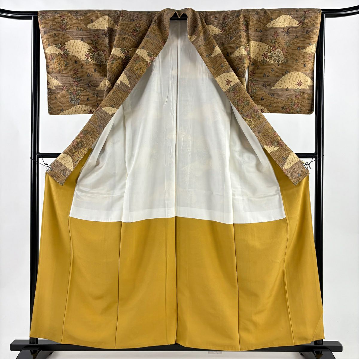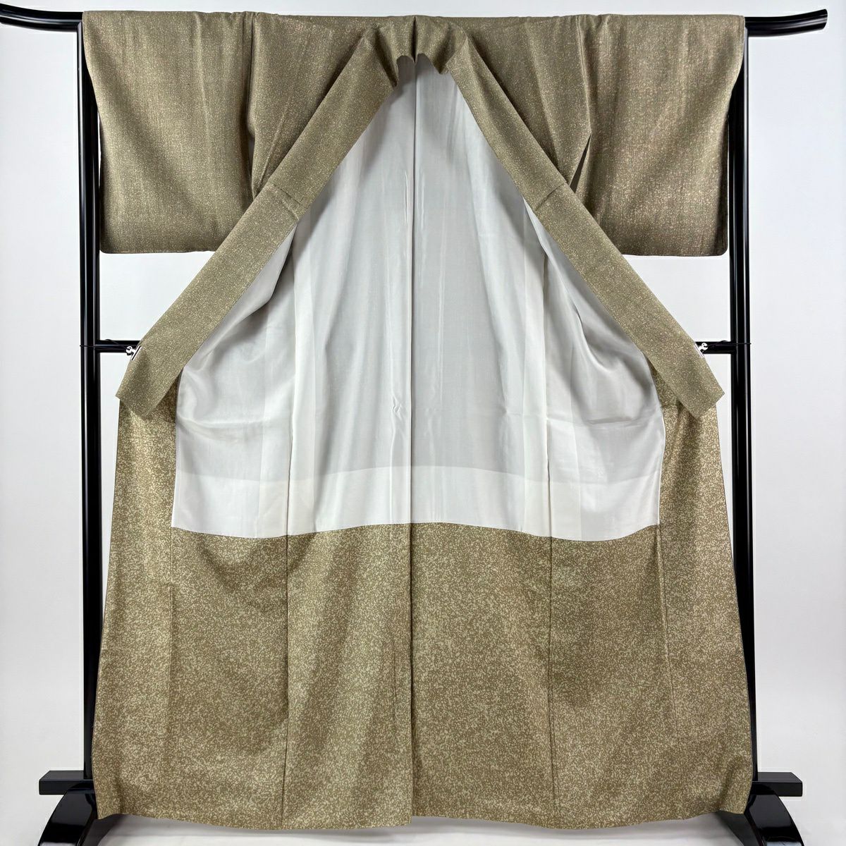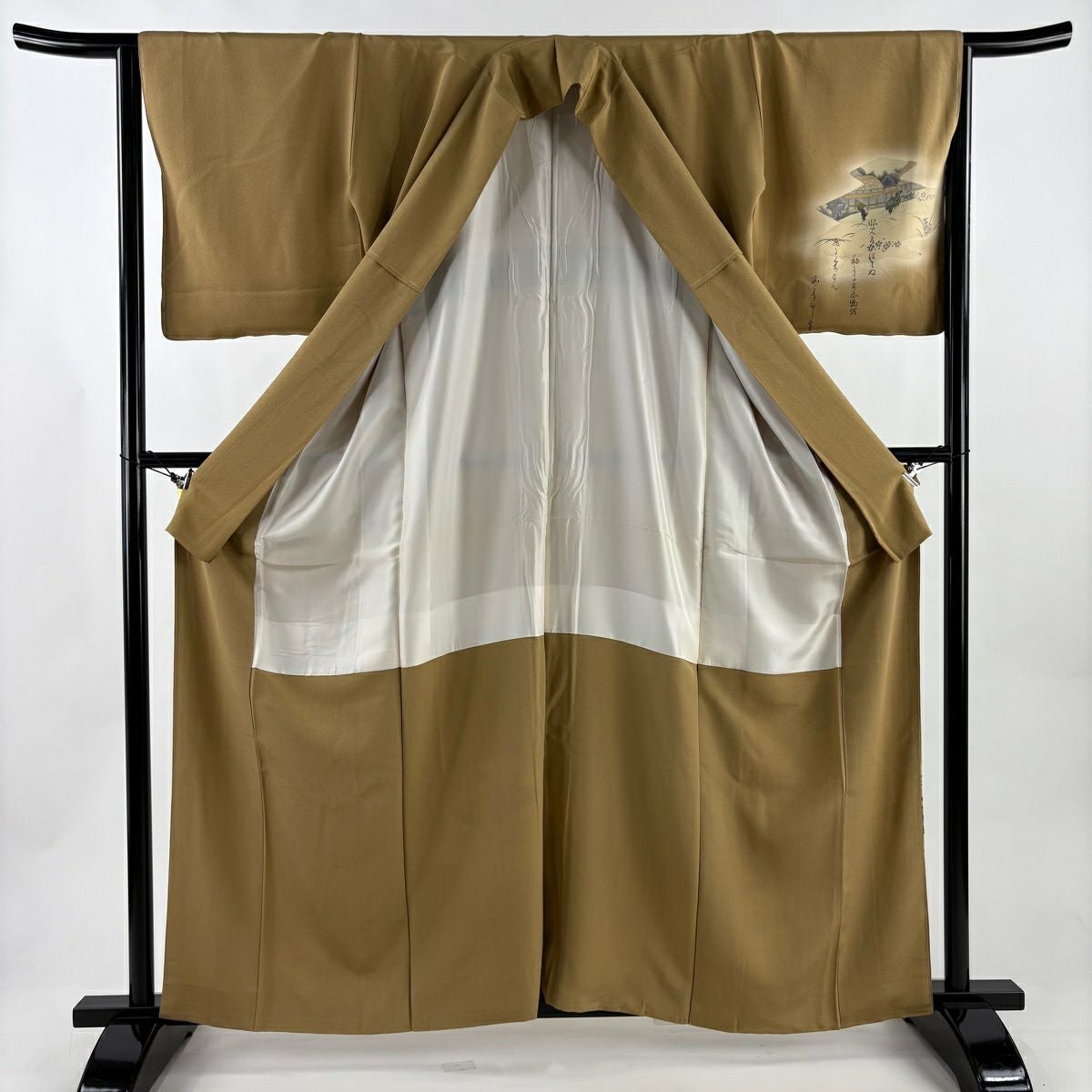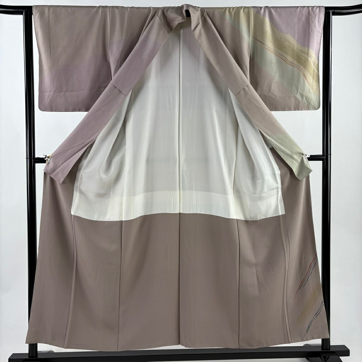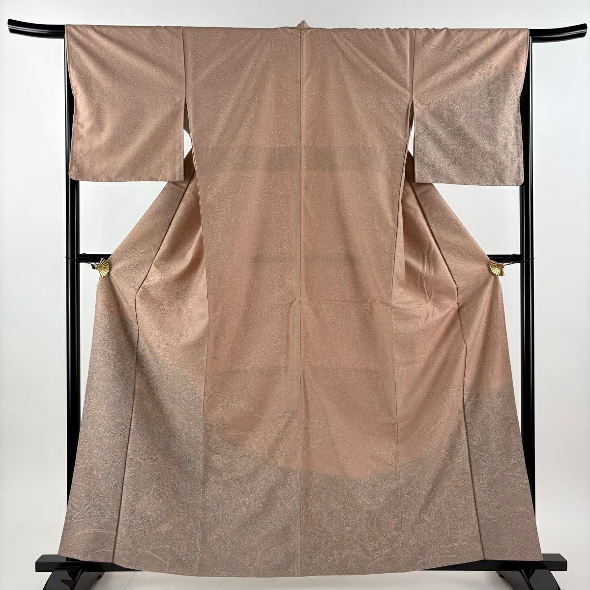 訪問着 身丈164.5cm 裄丈64cm M 袷 落款あり 草花 流水 金銀彩 ぼかし ベージュ 正絹 秀品