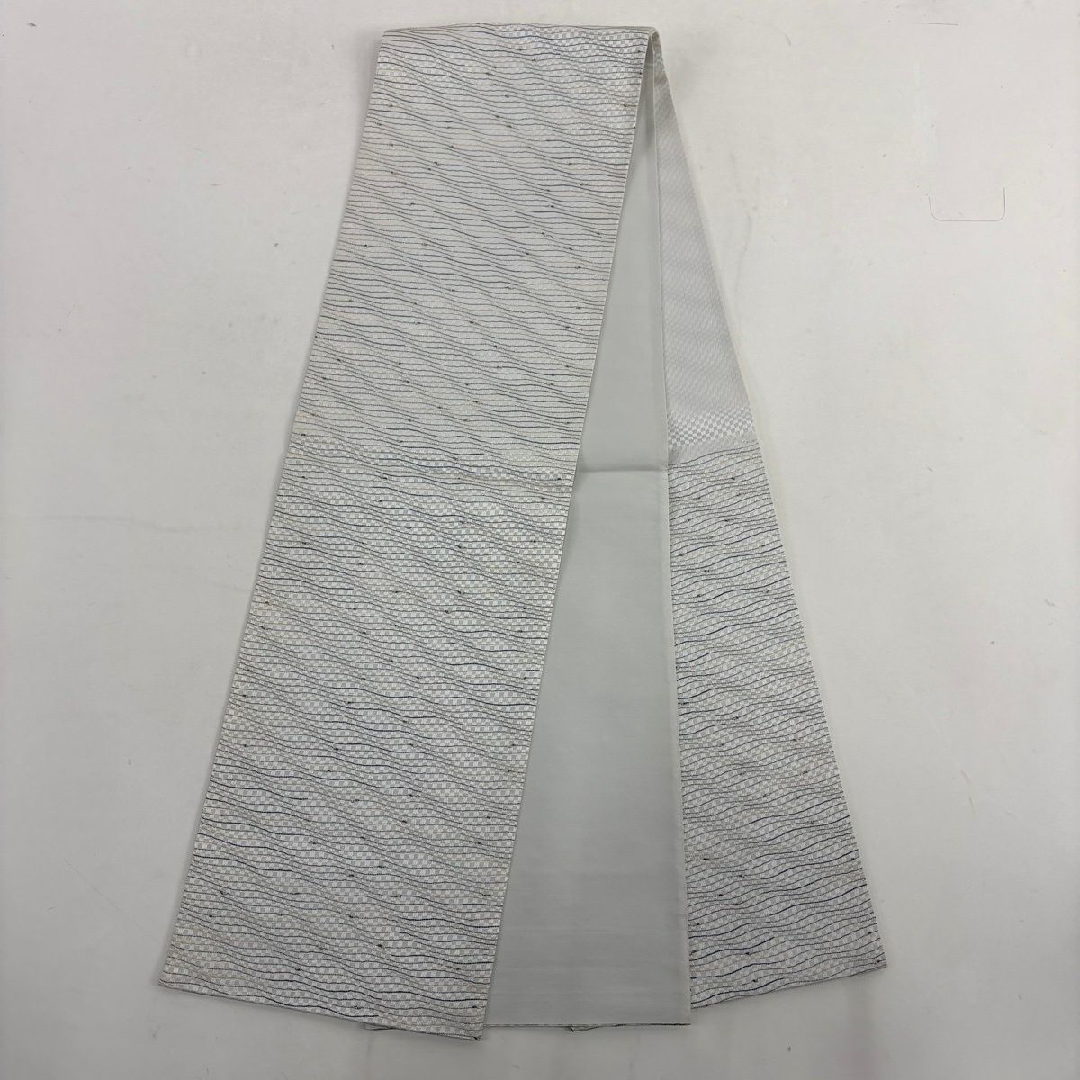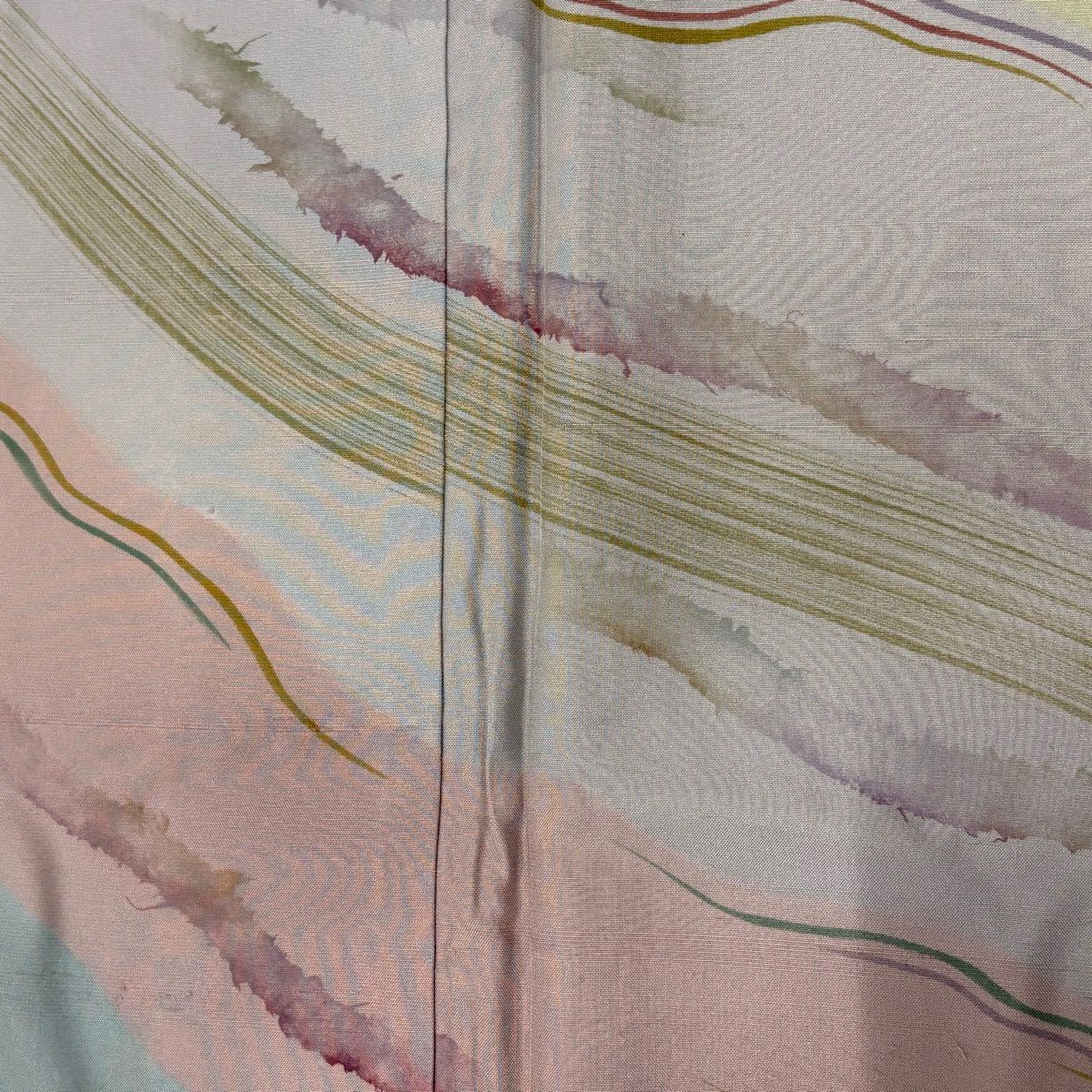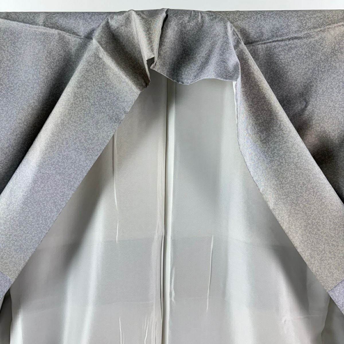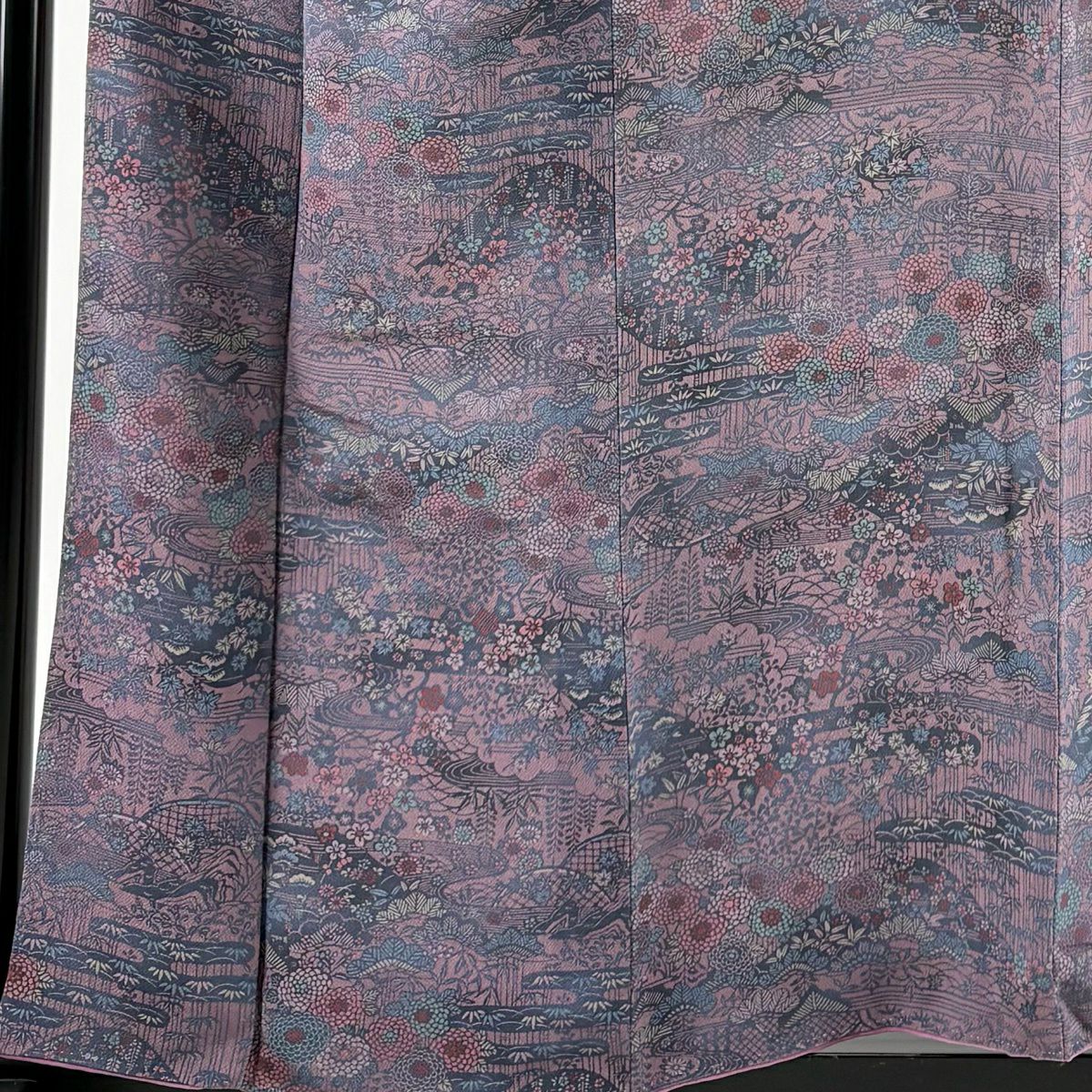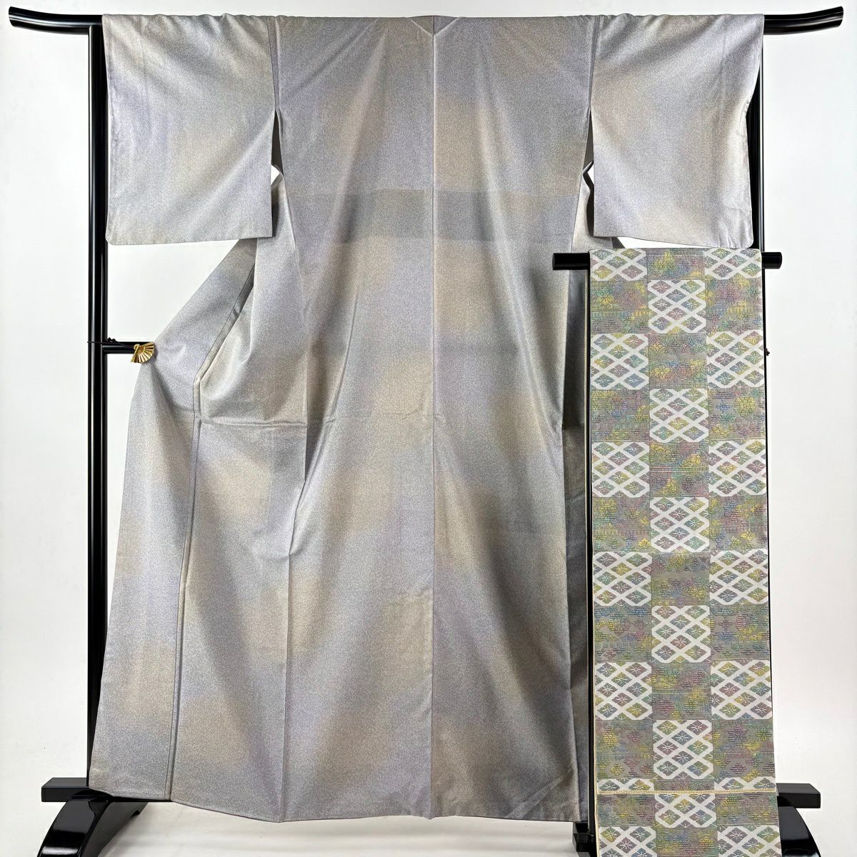 【美品】 小紋 身丈162.5cm 裄丈65cm M 袷 袋帯セット 紬地 幾何学模様 ぼかし柄 灰紫 正絹 秀品