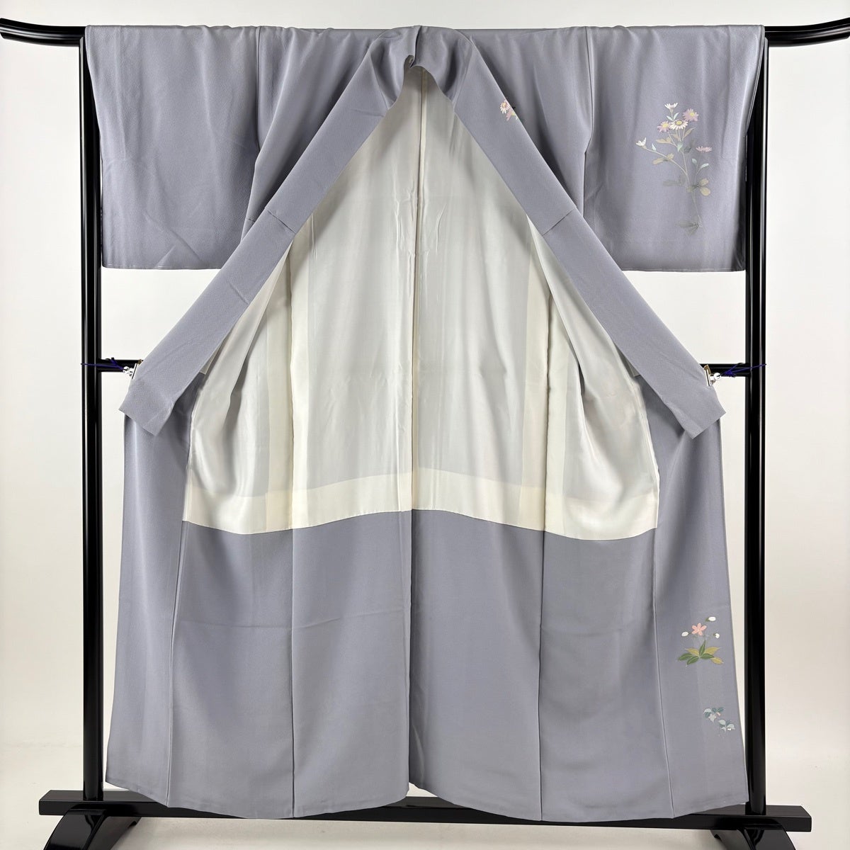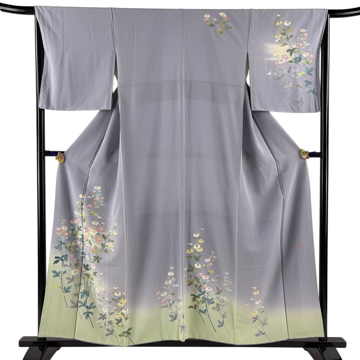 付下げ 身丈161.5cm 裄丈64cm M 袷 落款あり 草花 枝花 金彩 ぼかし 薄紫 正絹 秀品