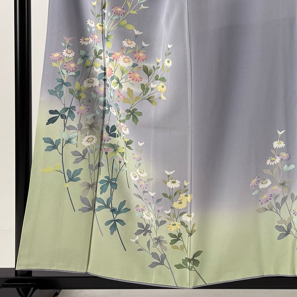 訪問着 身丈161.5cm 裄丈66cm M 袷 鈴乃屋 落款あり 草花 菊 ぼかし 薄緑 正絹 秀品