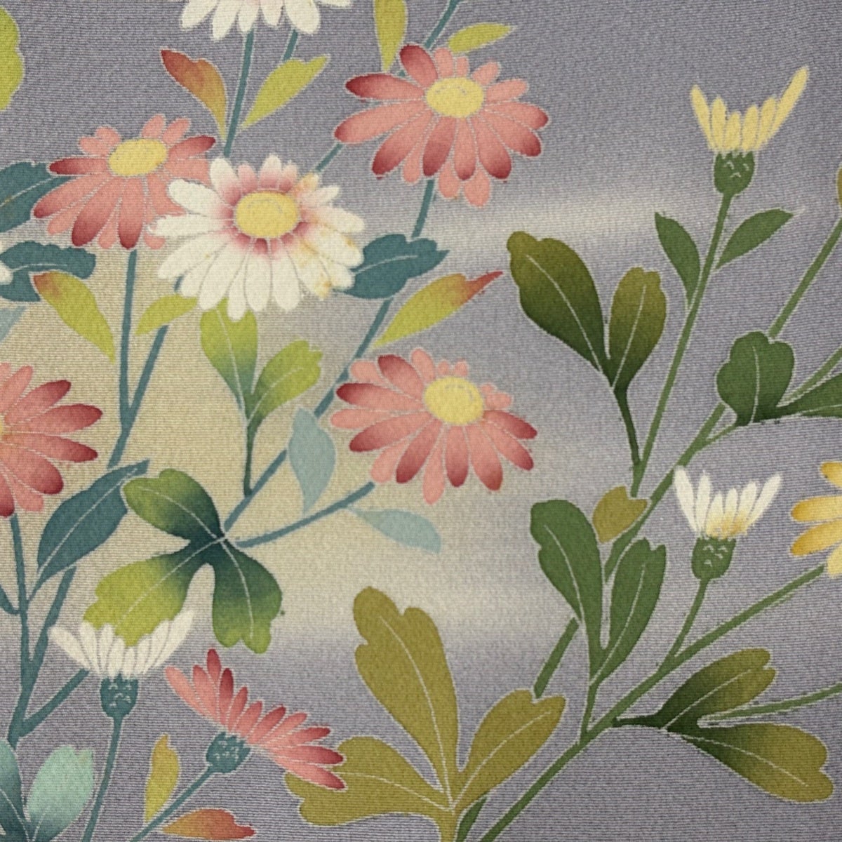 訪問着 身丈155.5cm 裄丈66cm M 袷 落款あり 菊 霞 染め分け ぼかし 灰紫 正絹 秀品