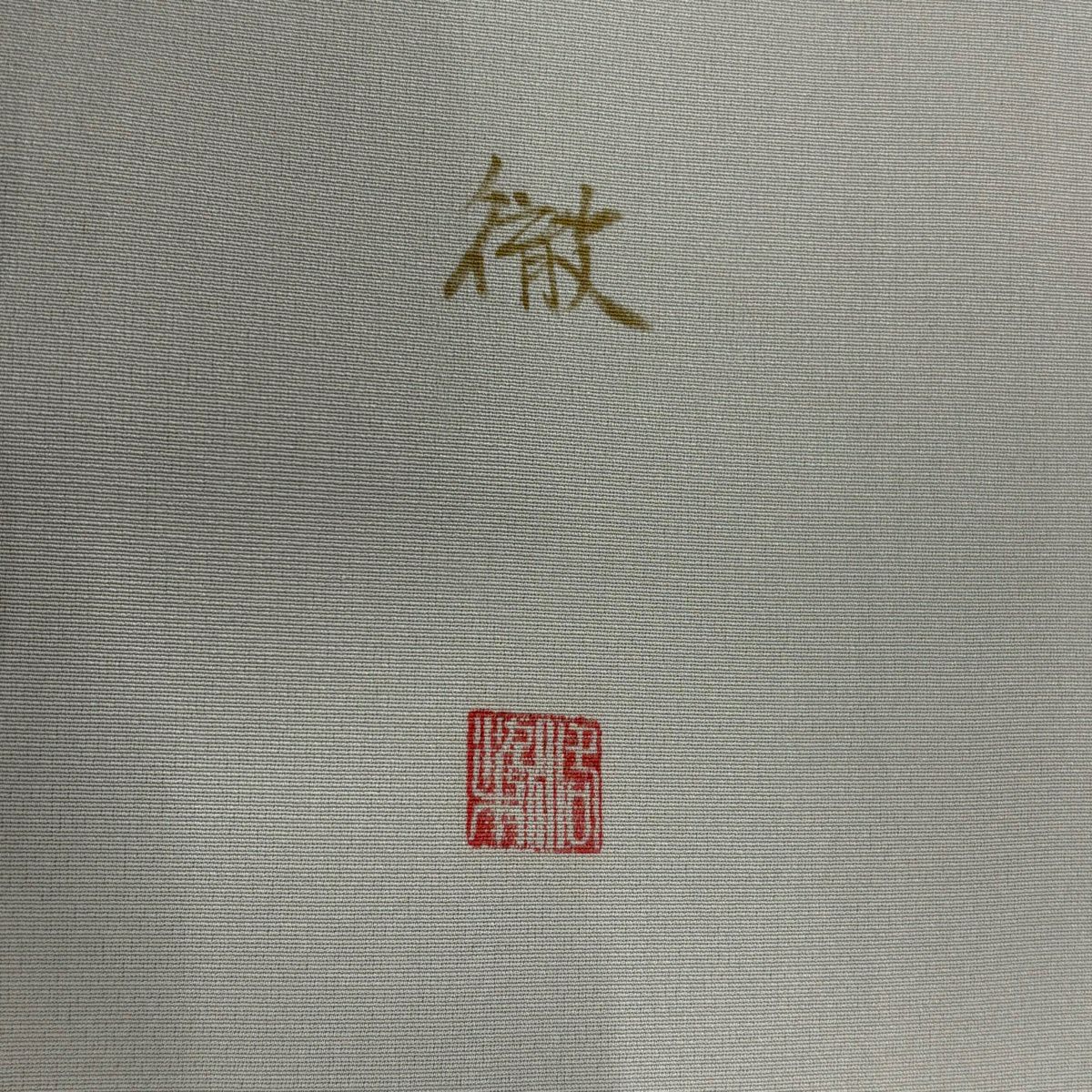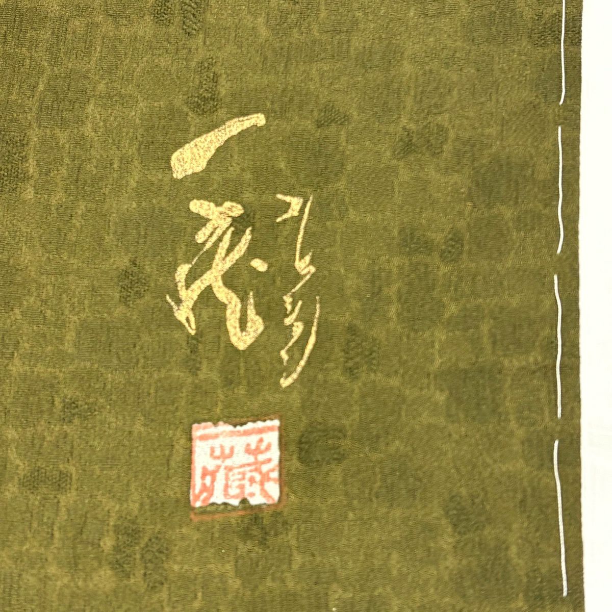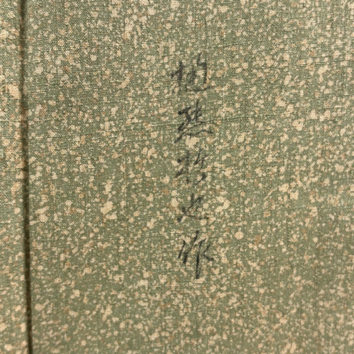 色留袖 身丈162cm 裄丈62cm S 袷 松尾光琳 落款あり 百人一種 笠松 金糸 金彩 灰緑 正絹 秀品 三つ紋