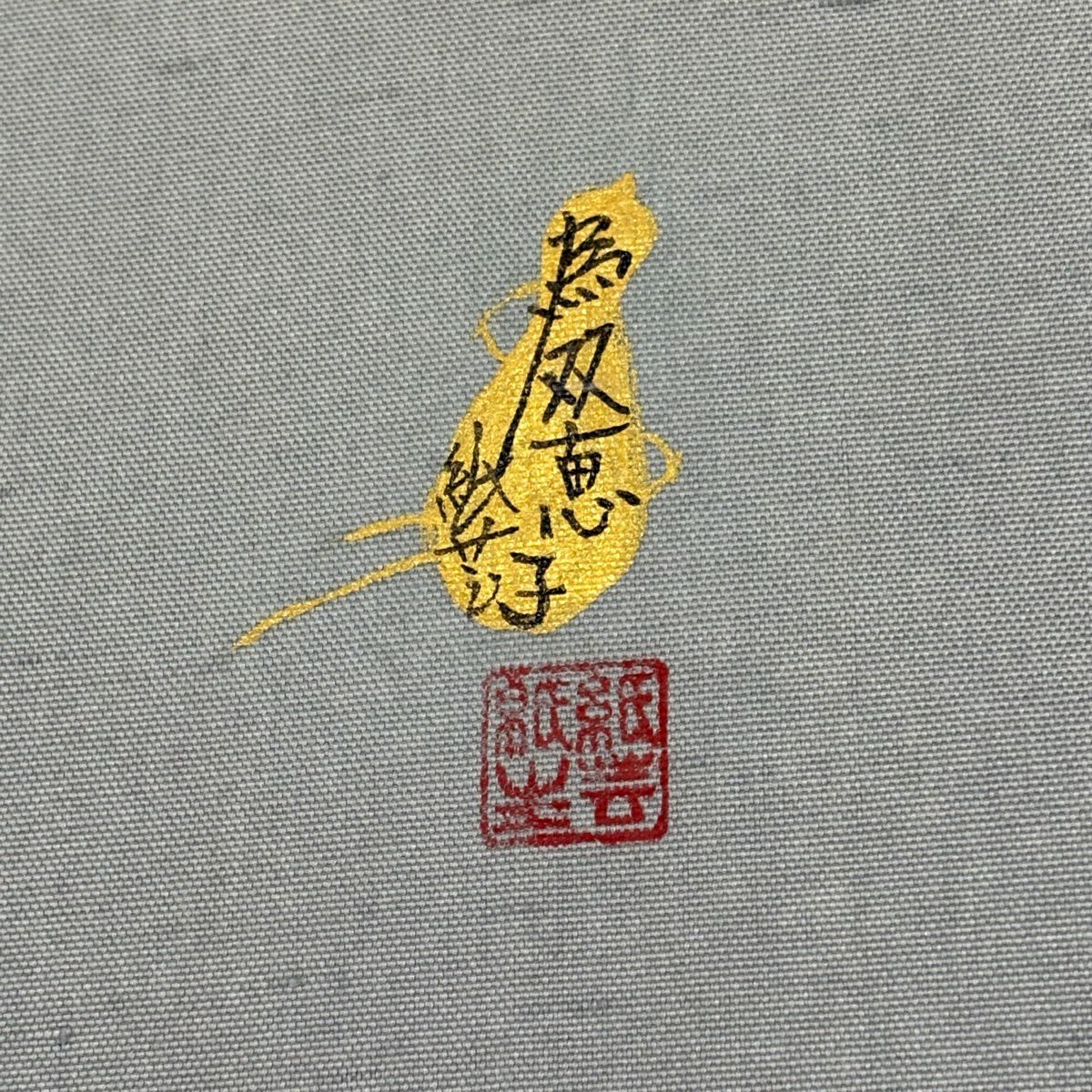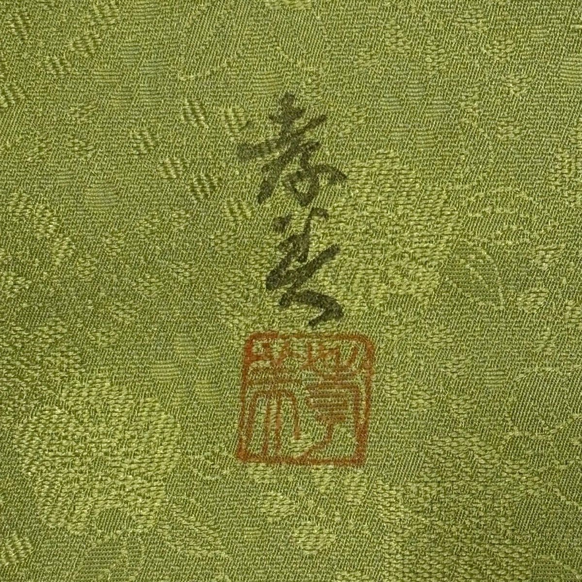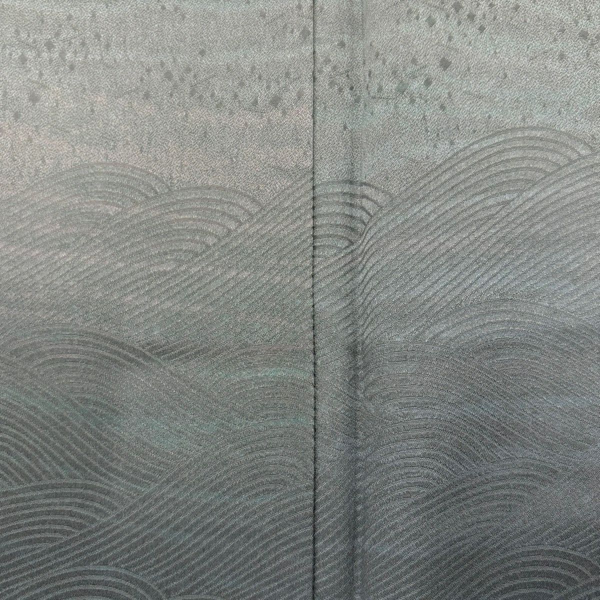色留袖 身丈162cm 裄丈62cm S 袷 松尾光琳 落款あり 百人一種 笠松 金糸 金彩 灰緑 正絹 秀品 三つ紋
