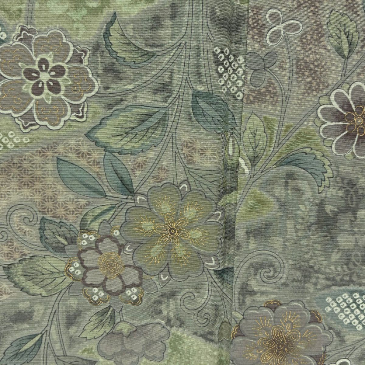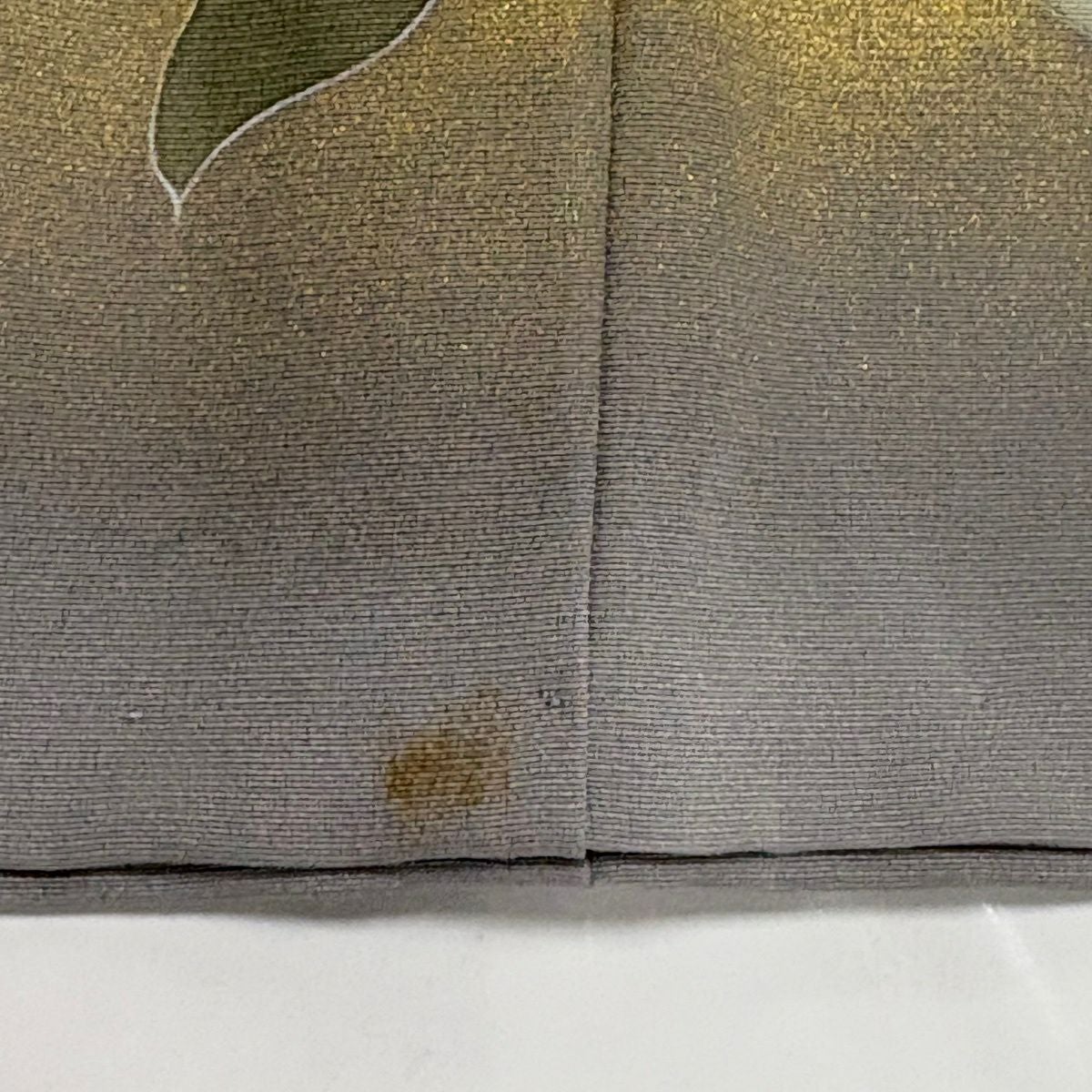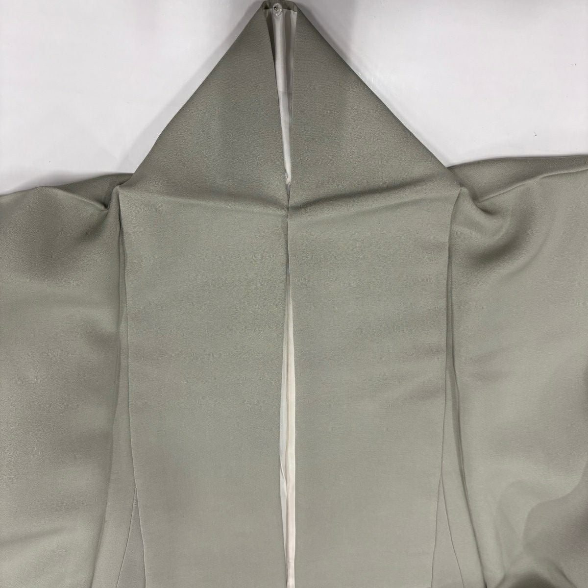 色留袖 身丈152cm 裄丈64cm M 袷 瑞聚苑 落款あり 建物 草花 箔 金銀糸 灰緑 正絹 秀品 一つ紋