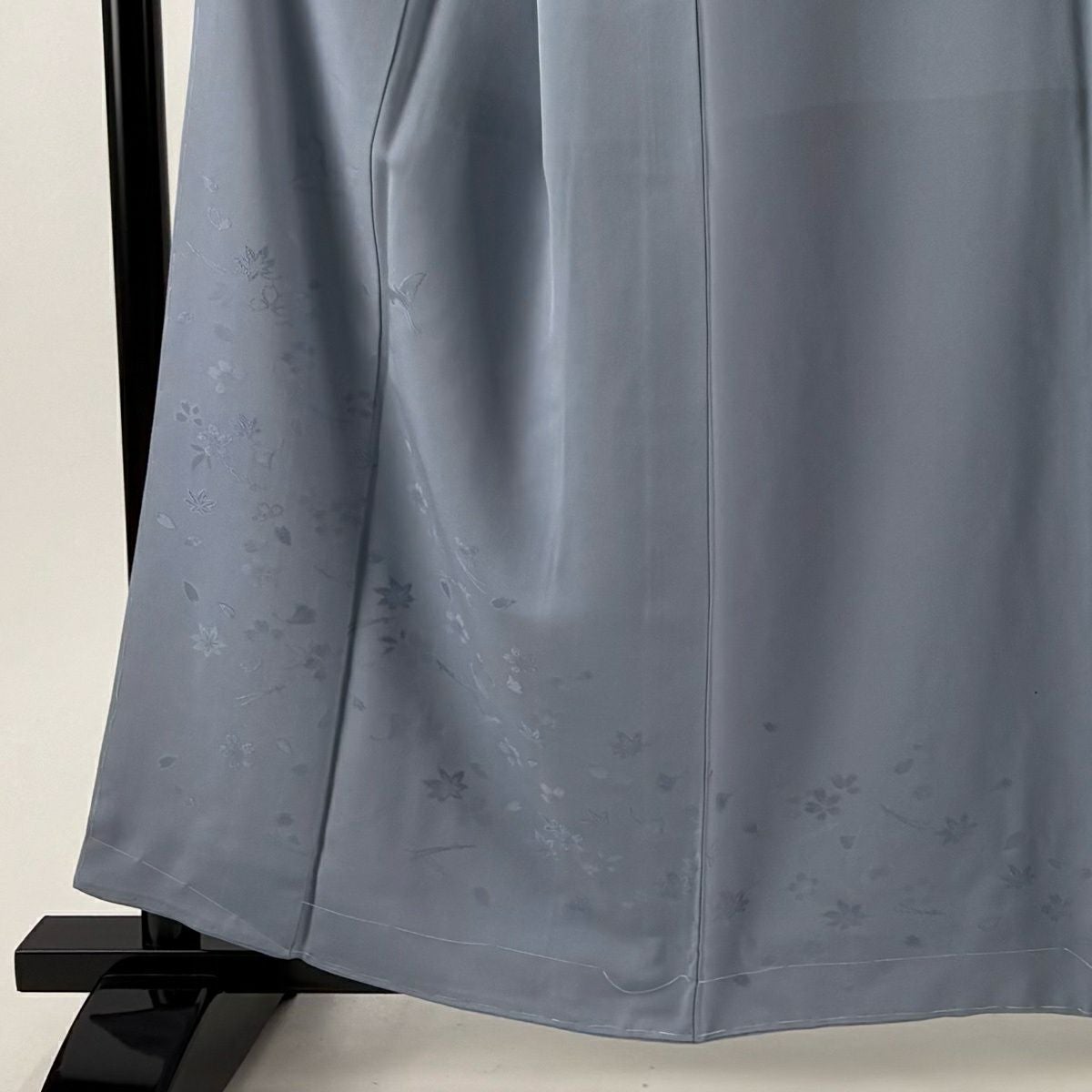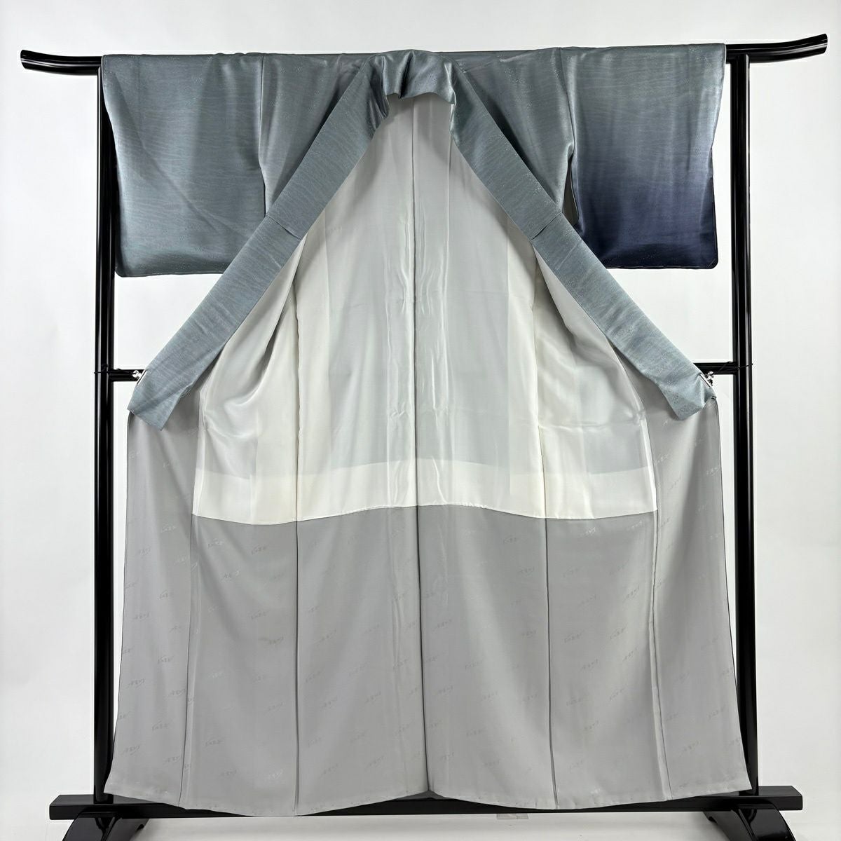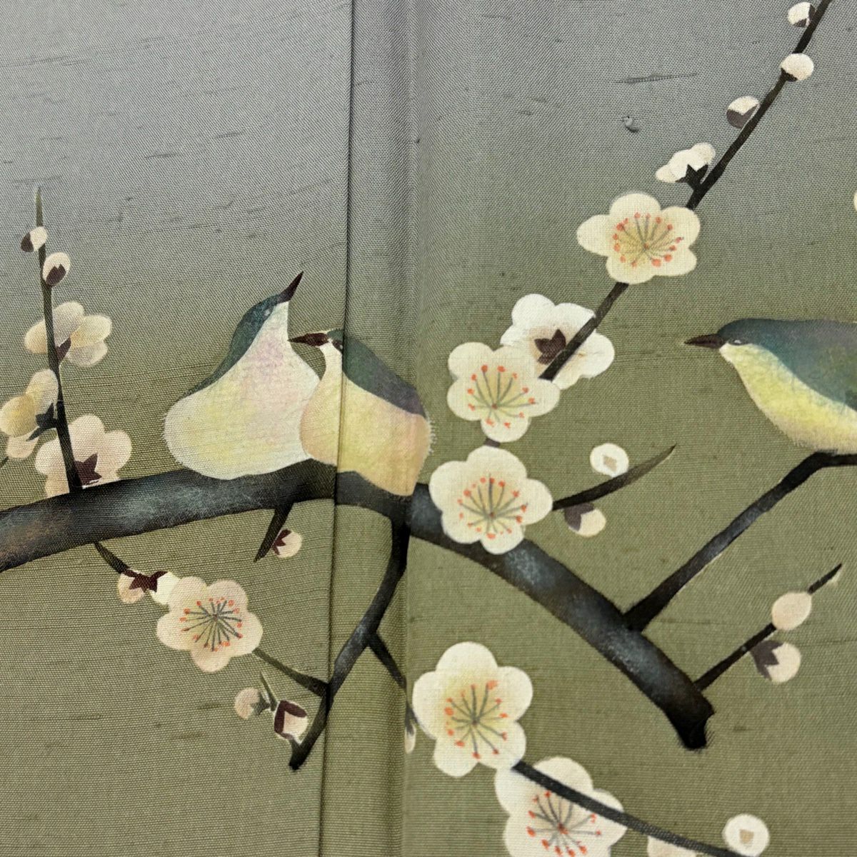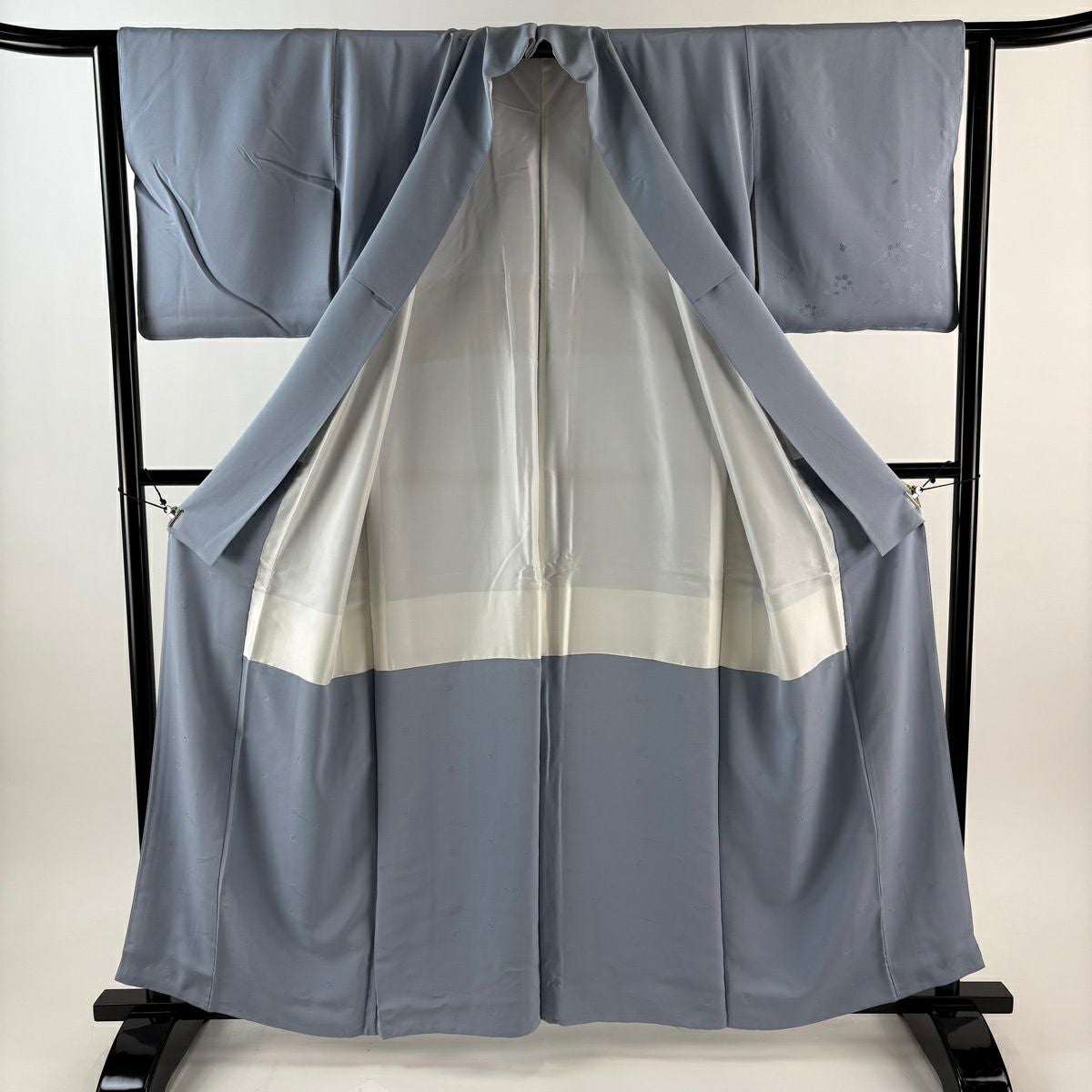 【美品】 付下げ 身丈160.5cm 裄丈62.5cm S 袷 紬地 落款あり 枝梅 鳥 ぼかし 青灰色 正絹 秀品
