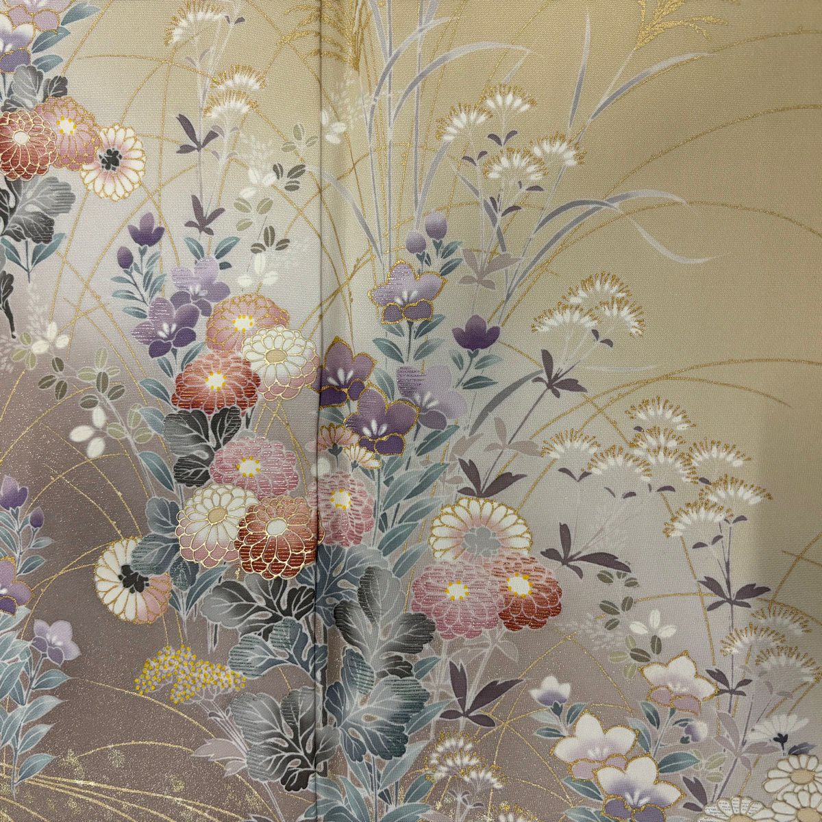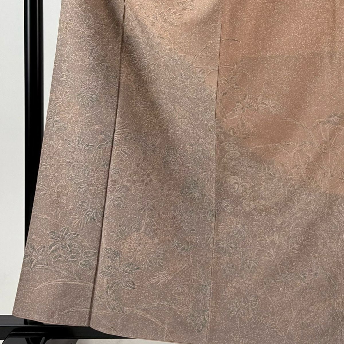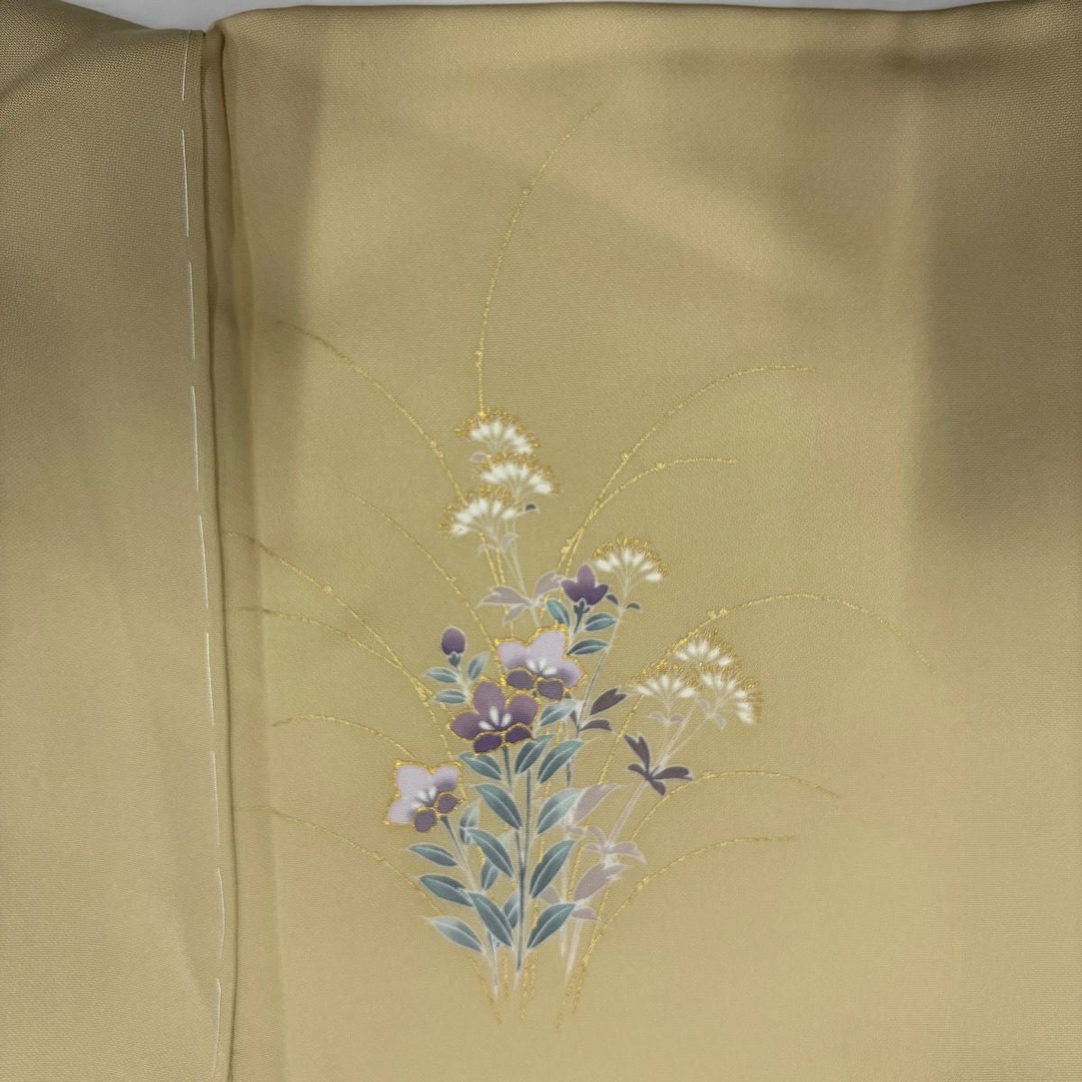 【美品】 付下げ 身丈157.5cm 裄丈62.5cm S 袷 秋草 流水 金彩 染め分け ベージュ 正絹 秀品