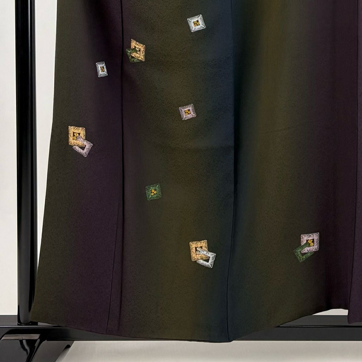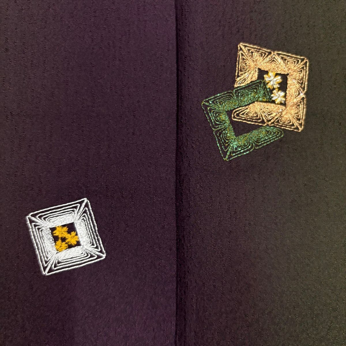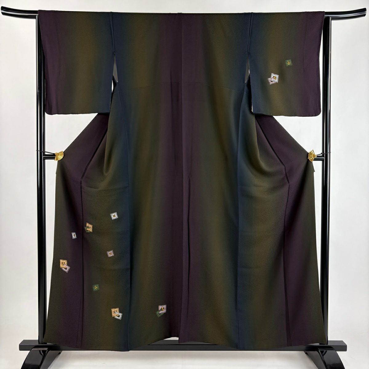 【美品】 付下げ 身丈159cm 裄丈64.5cm M 袷 幾何学模様 小花 金銀糸 縦ぼかし 濃紫 正絹 秀品