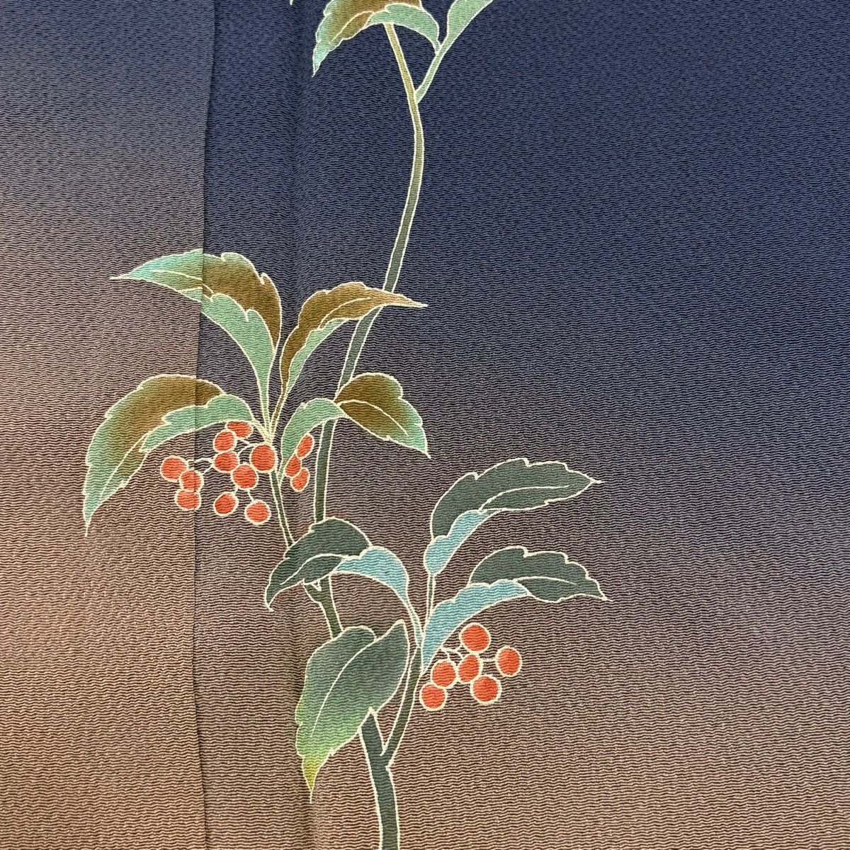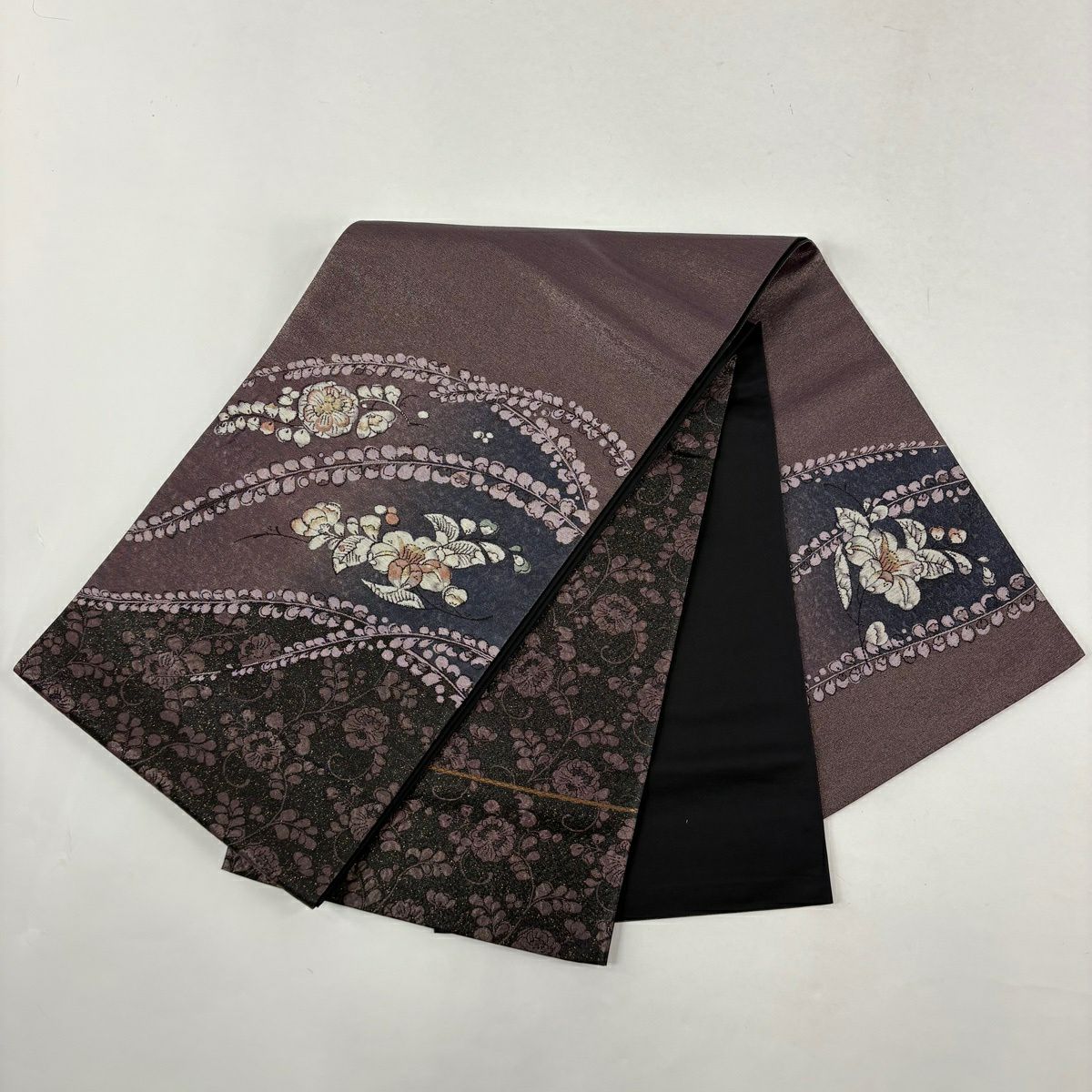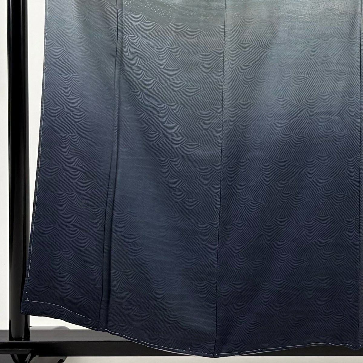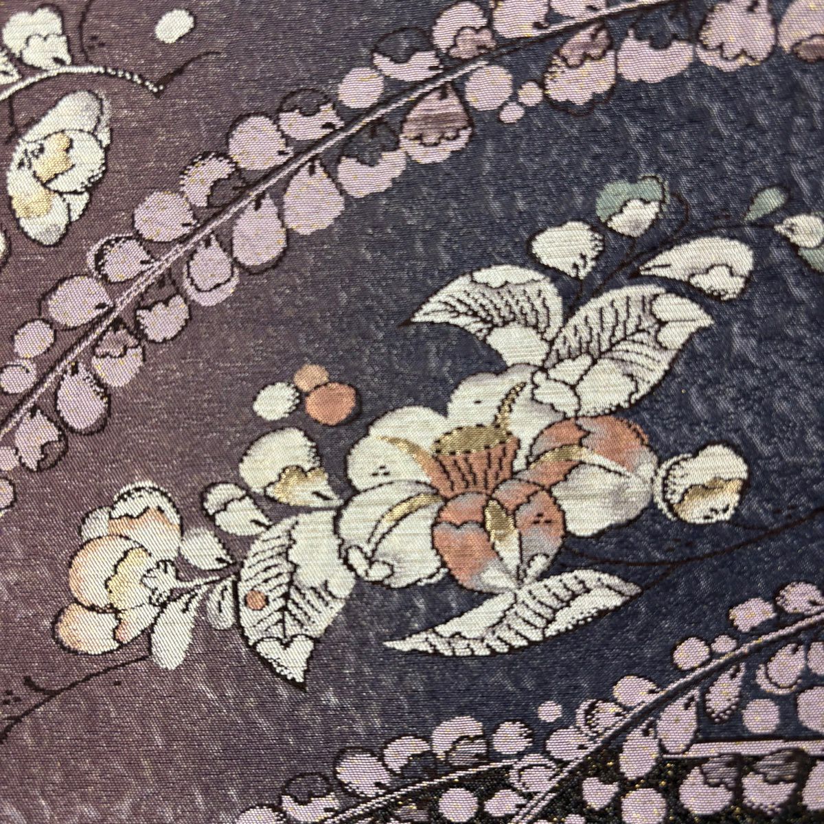 【美品】 付下げ 身丈159cm 裄丈64.5cm M 袷 幾何学模様 小花 金銀糸 縦ぼかし 濃紫 正絹 秀品