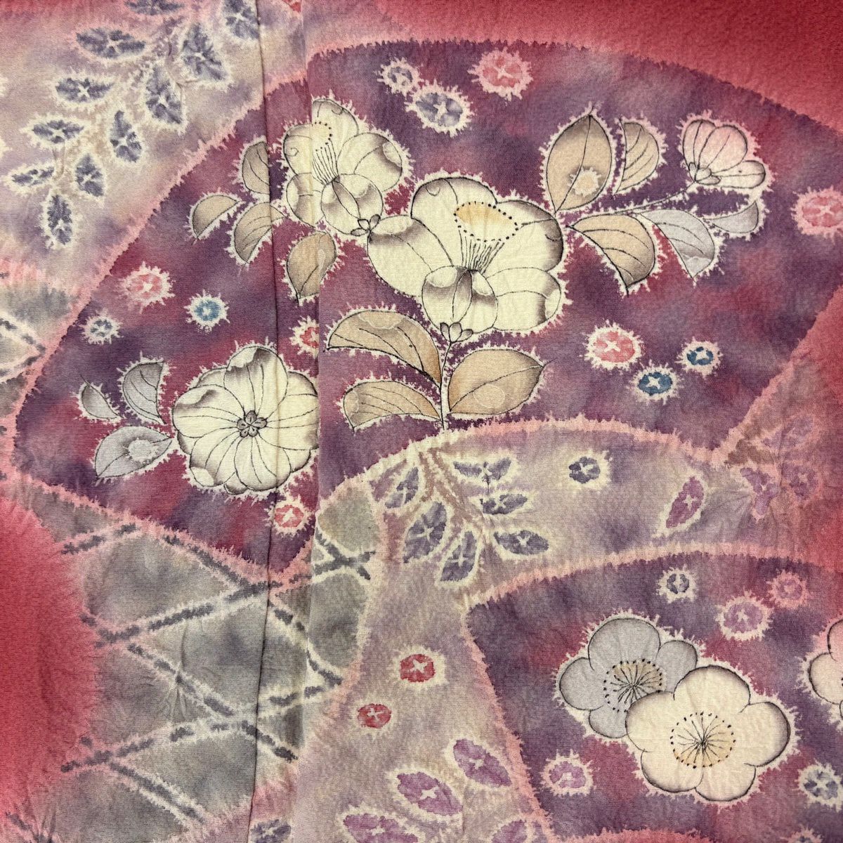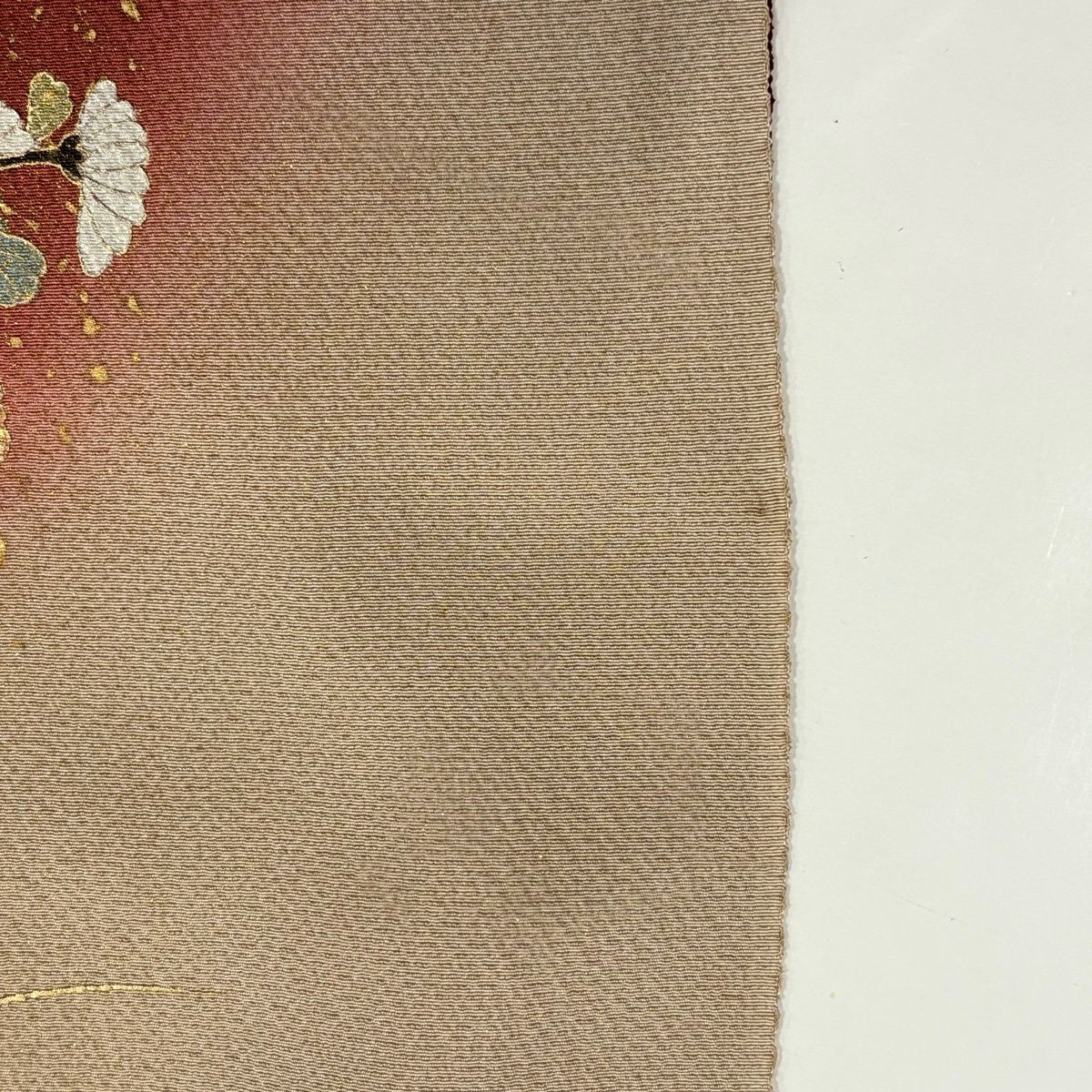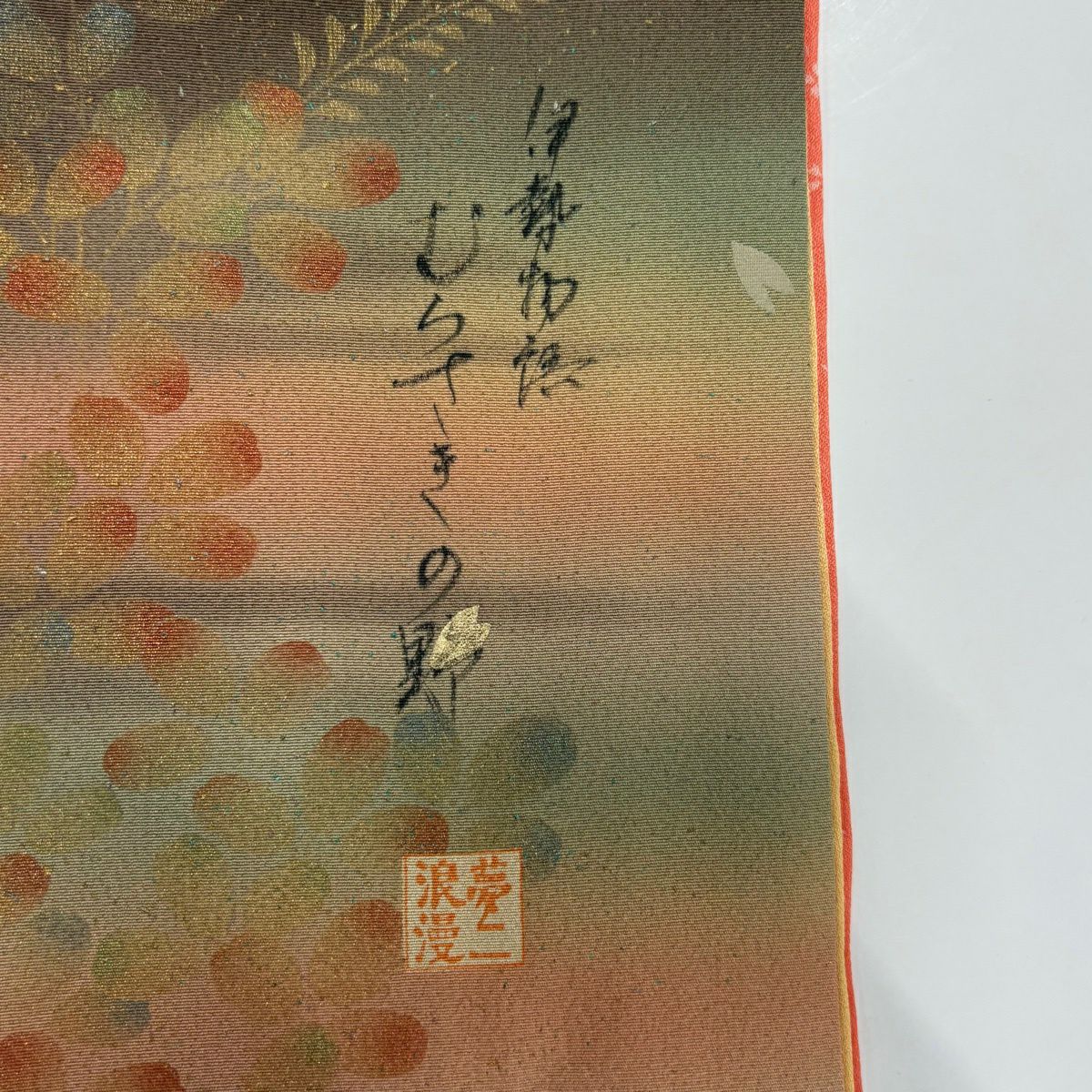 訪問着 身丈171cm 裄丈67.5cm 未仕立て 仮絵羽 落款あり 菊 萩 金彩 ぼかし えんじ色 正絹 秀品