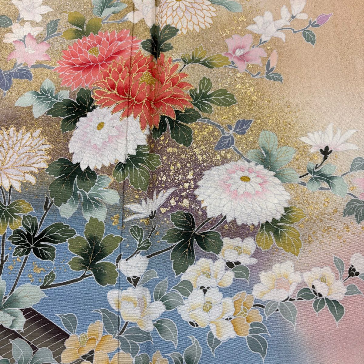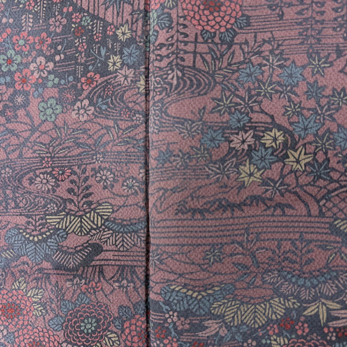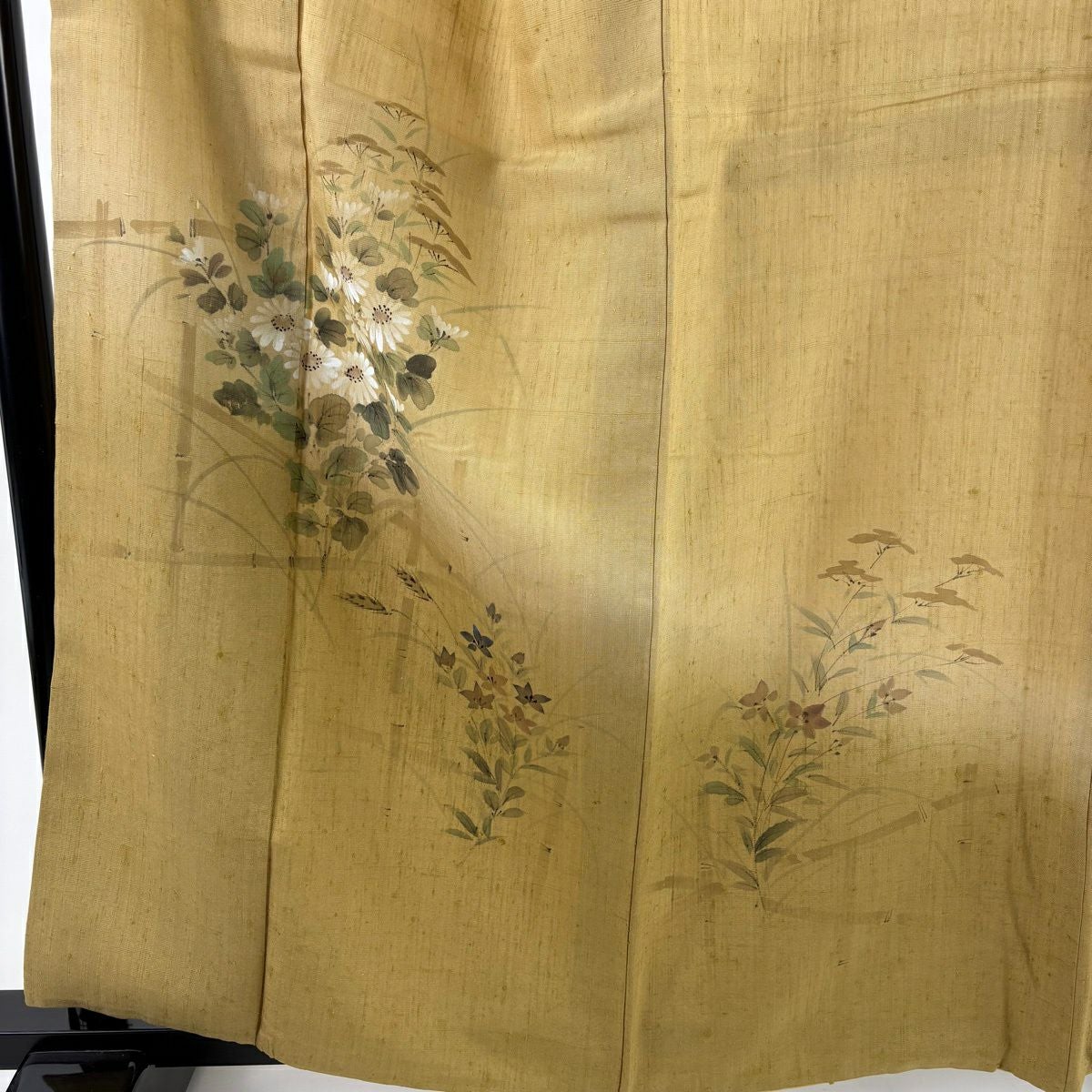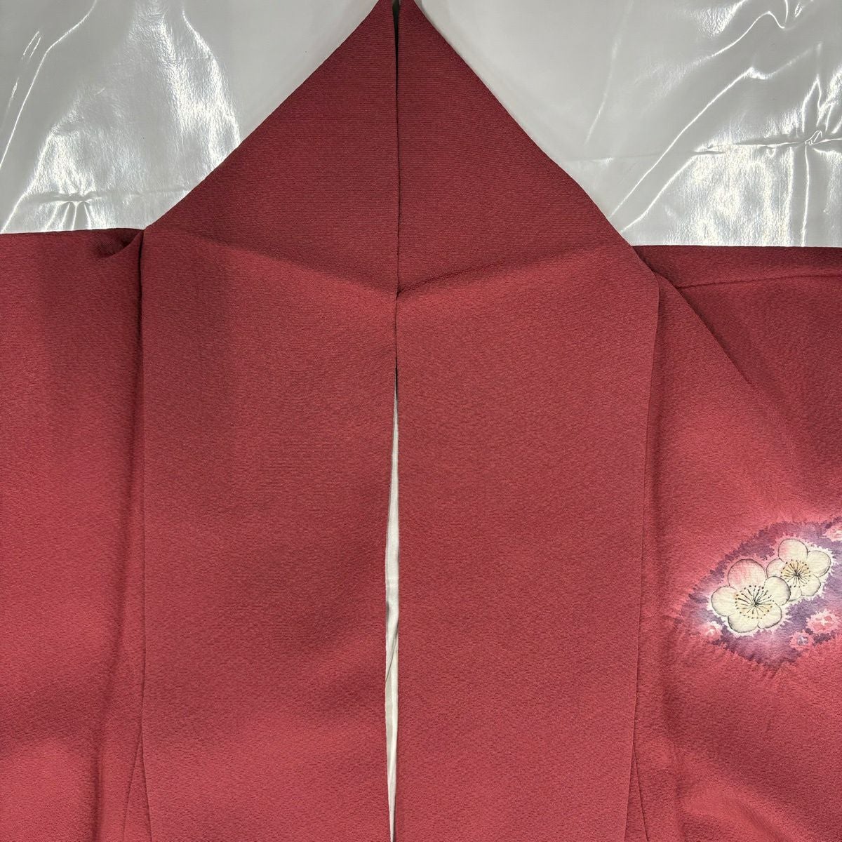 訪問着 身丈171cm 裄丈67.5cm 未仕立て 仮絵羽 落款あり 菊 萩 金彩 ぼかし えんじ色 正絹 秀品