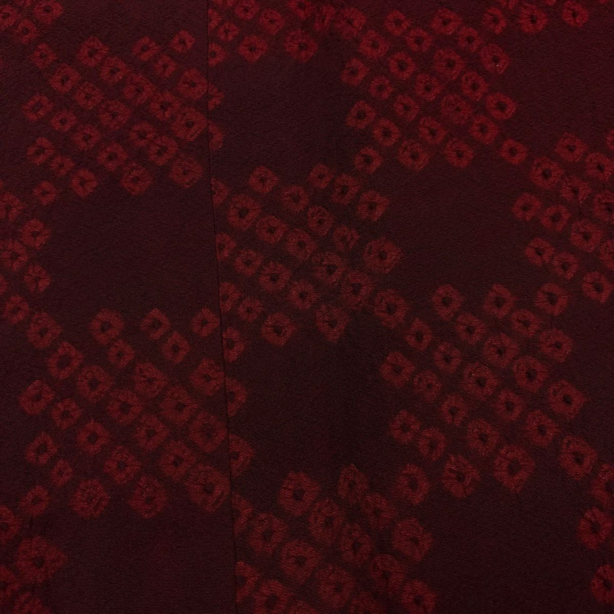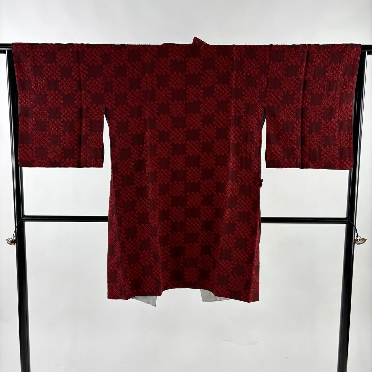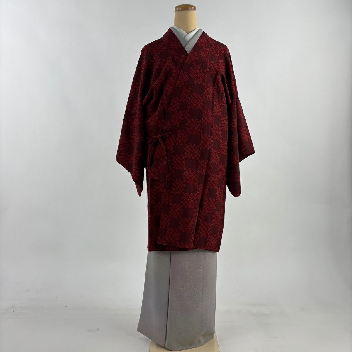 【美品】 道中着 身丈96.5cm 裄丈64cm M 和装コート 着物衿 市松模様 亀甲絣 えんじ色 正絹 秀品