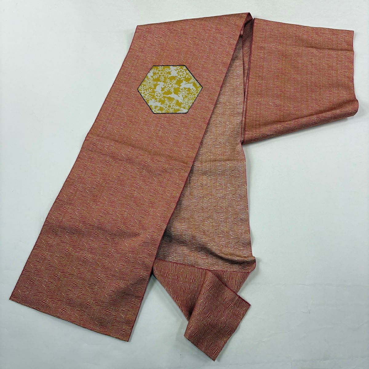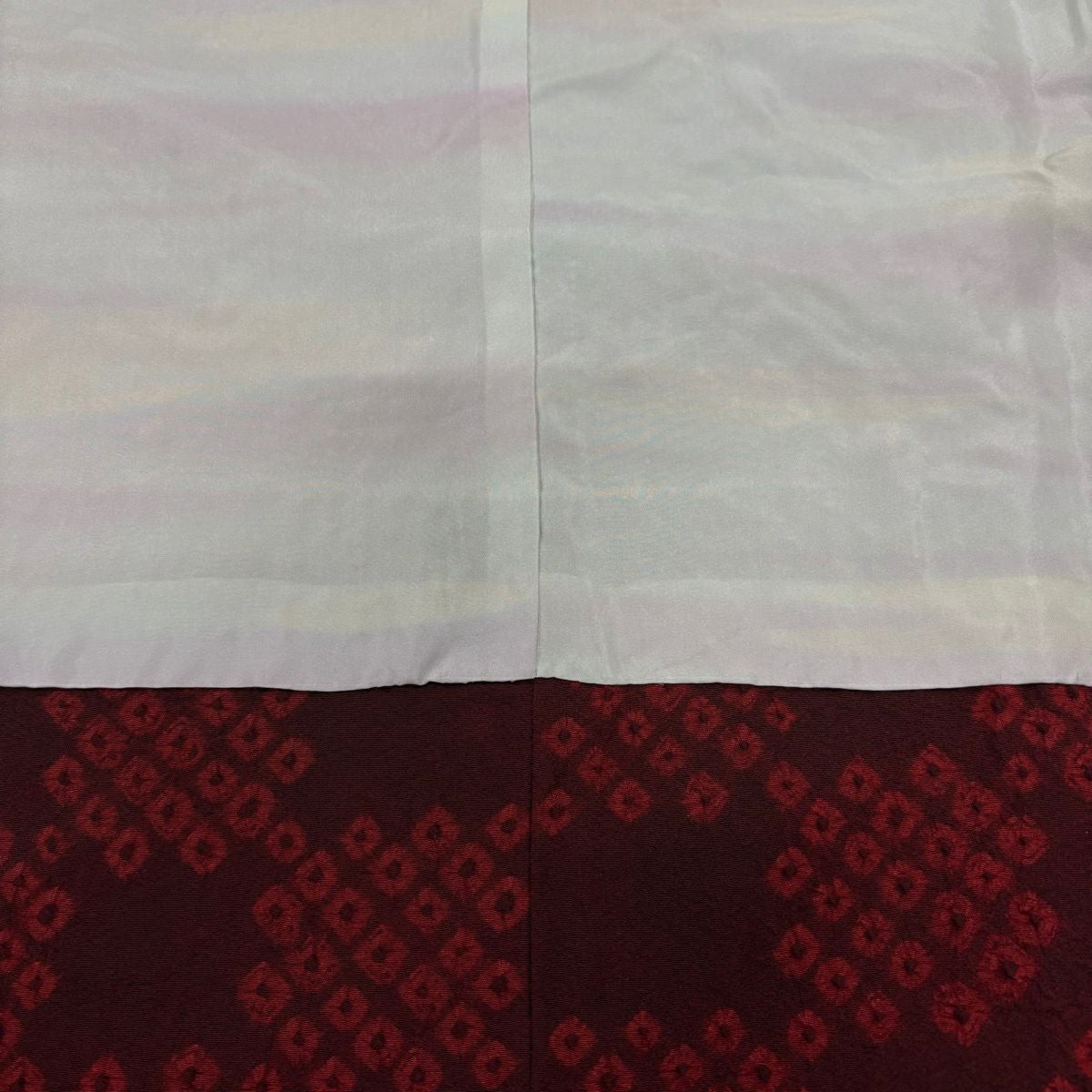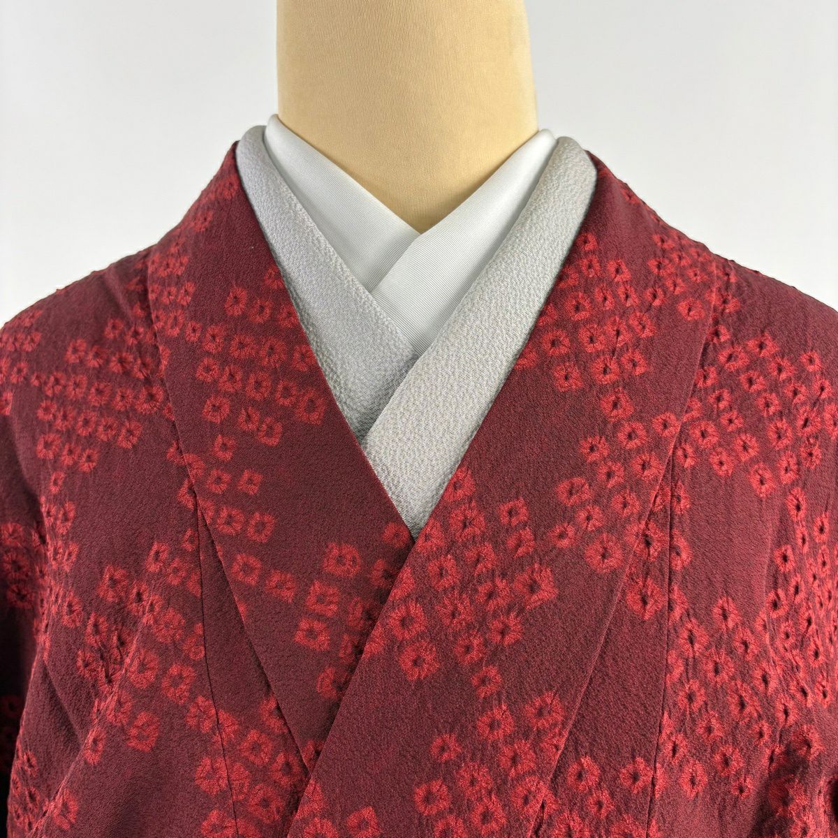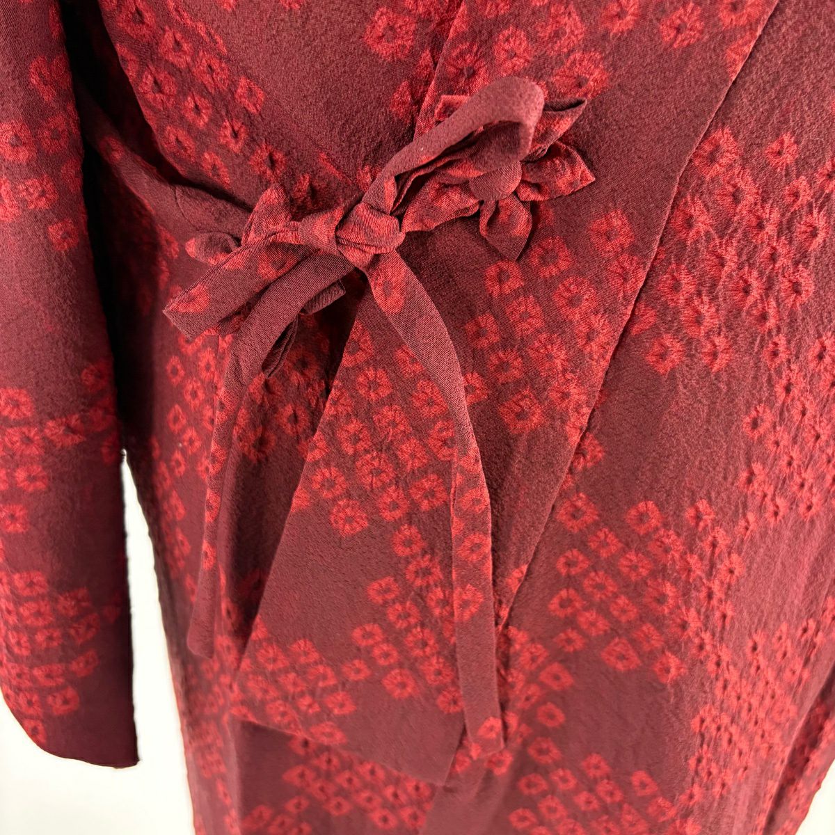 【美品】 道中着 身丈96.5cm 裄丈64cm M 和装コート 着物衿 市松模様 亀甲絣 えんじ色 正絹 秀品