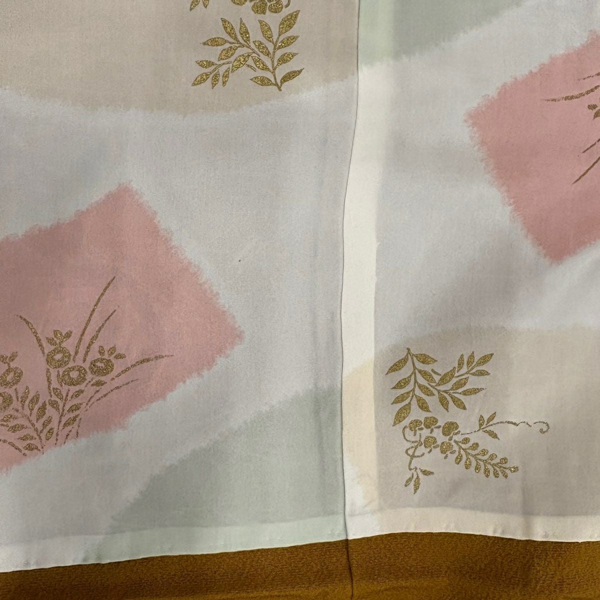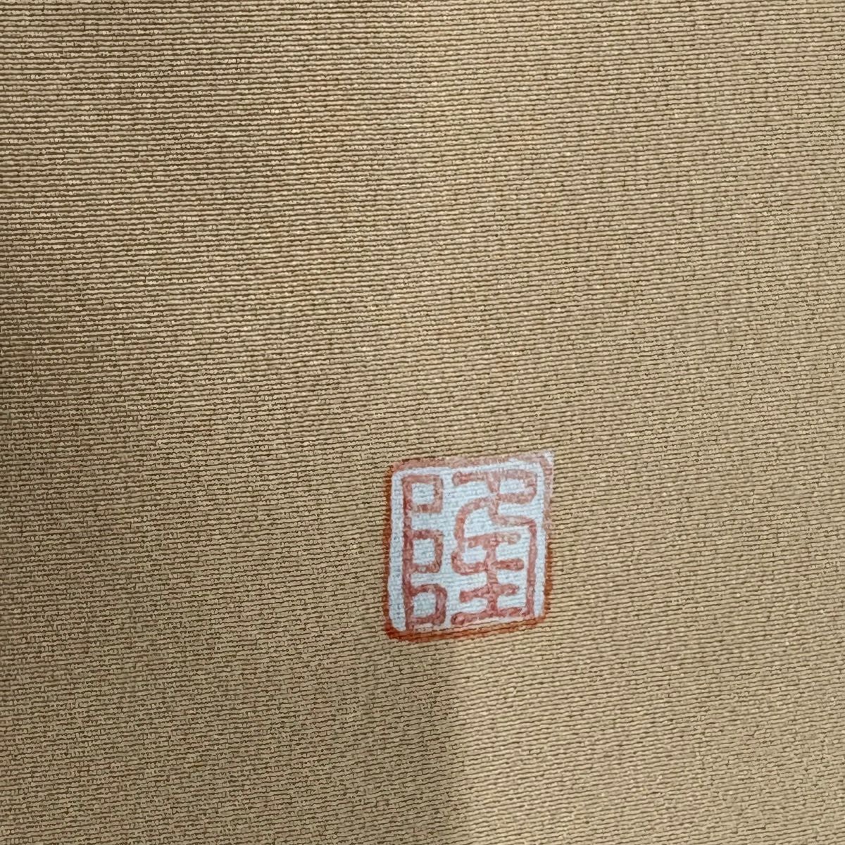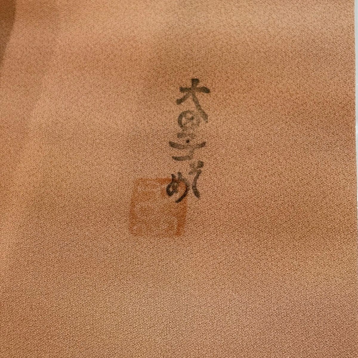 色留袖 身丈161cm 裄丈65cm M 袷 落款あり 花舟 鴛鴦 染め分け ぼかし 薄茶色 正絹 秀品 一つ紋