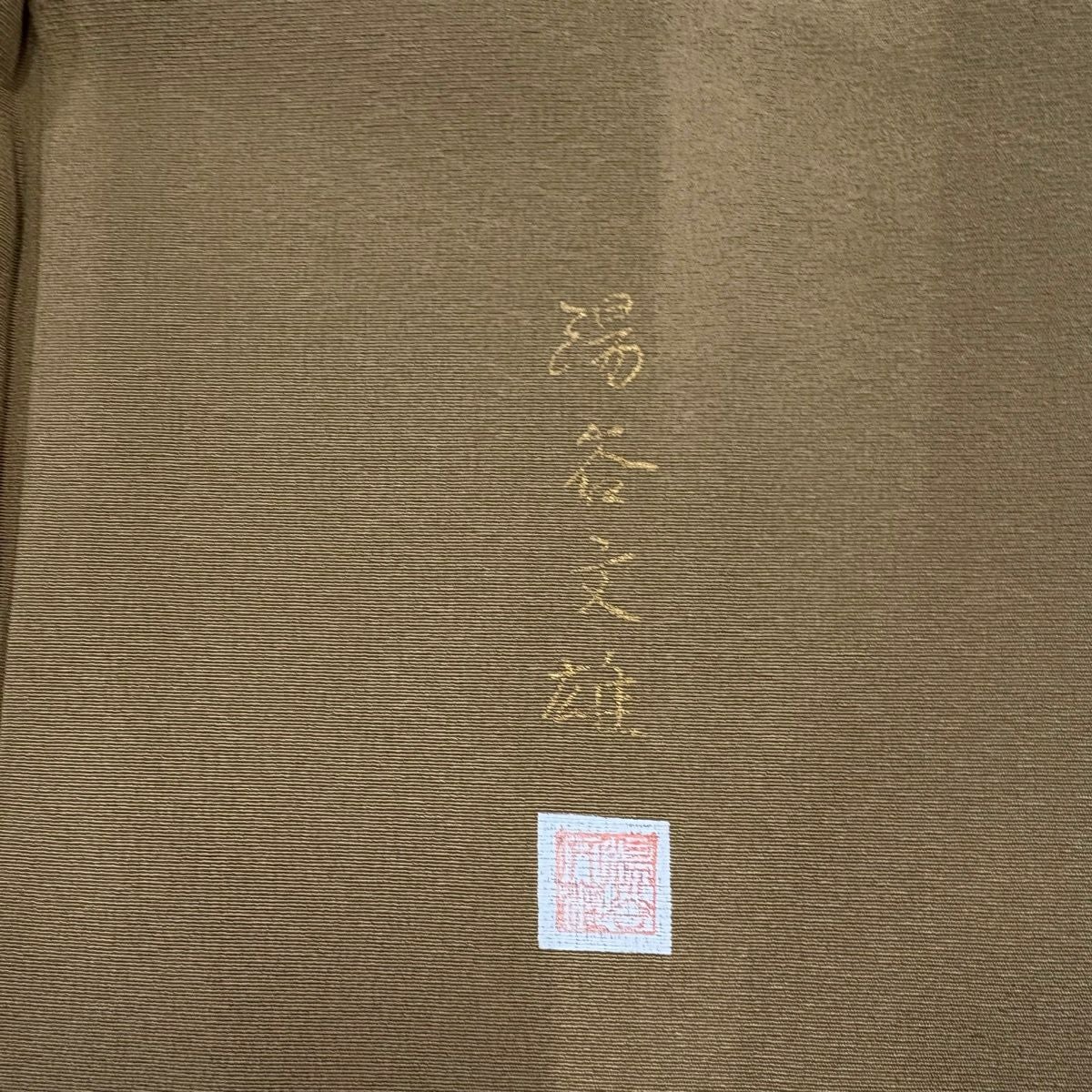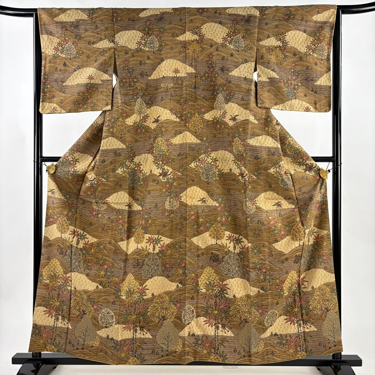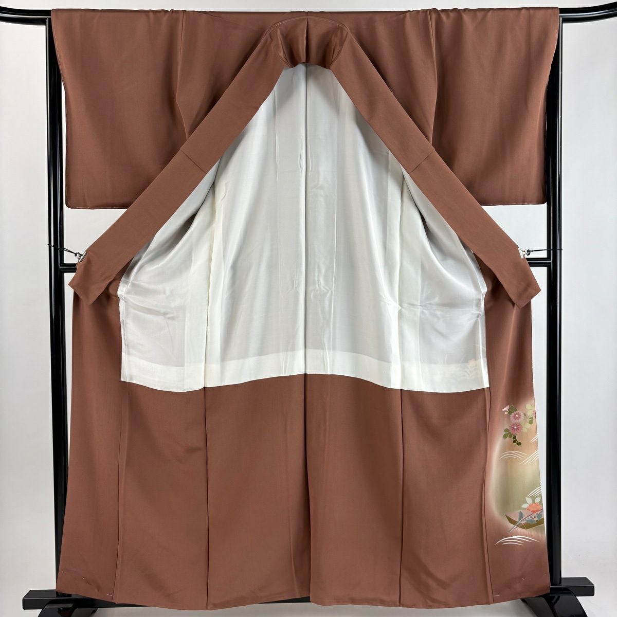 【美品】 訪問着 身丈161cm 裄丈65.5cm M 袷 小糸敏 紬地 落款あり 草花 鳥 薄小豆 正絹 秀品