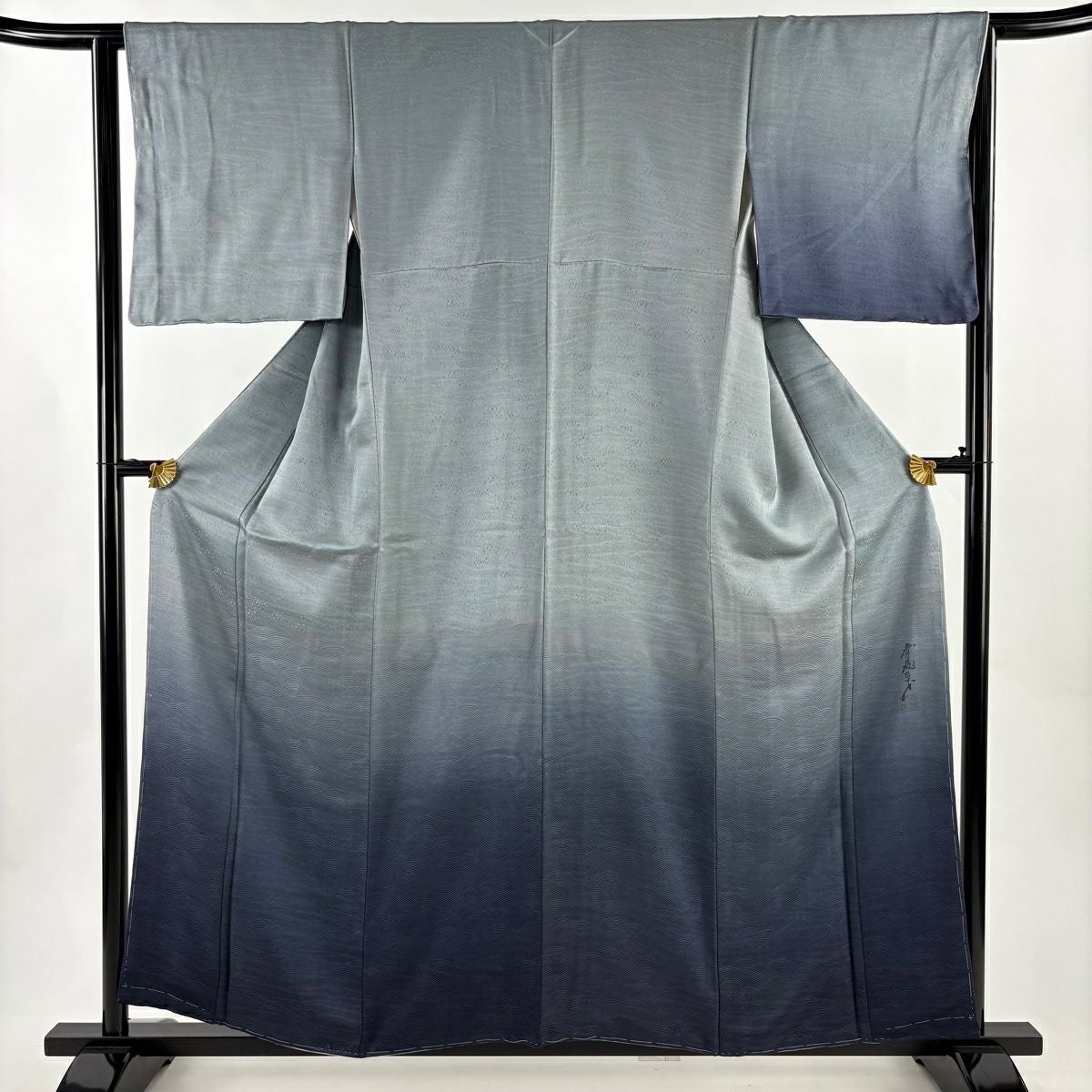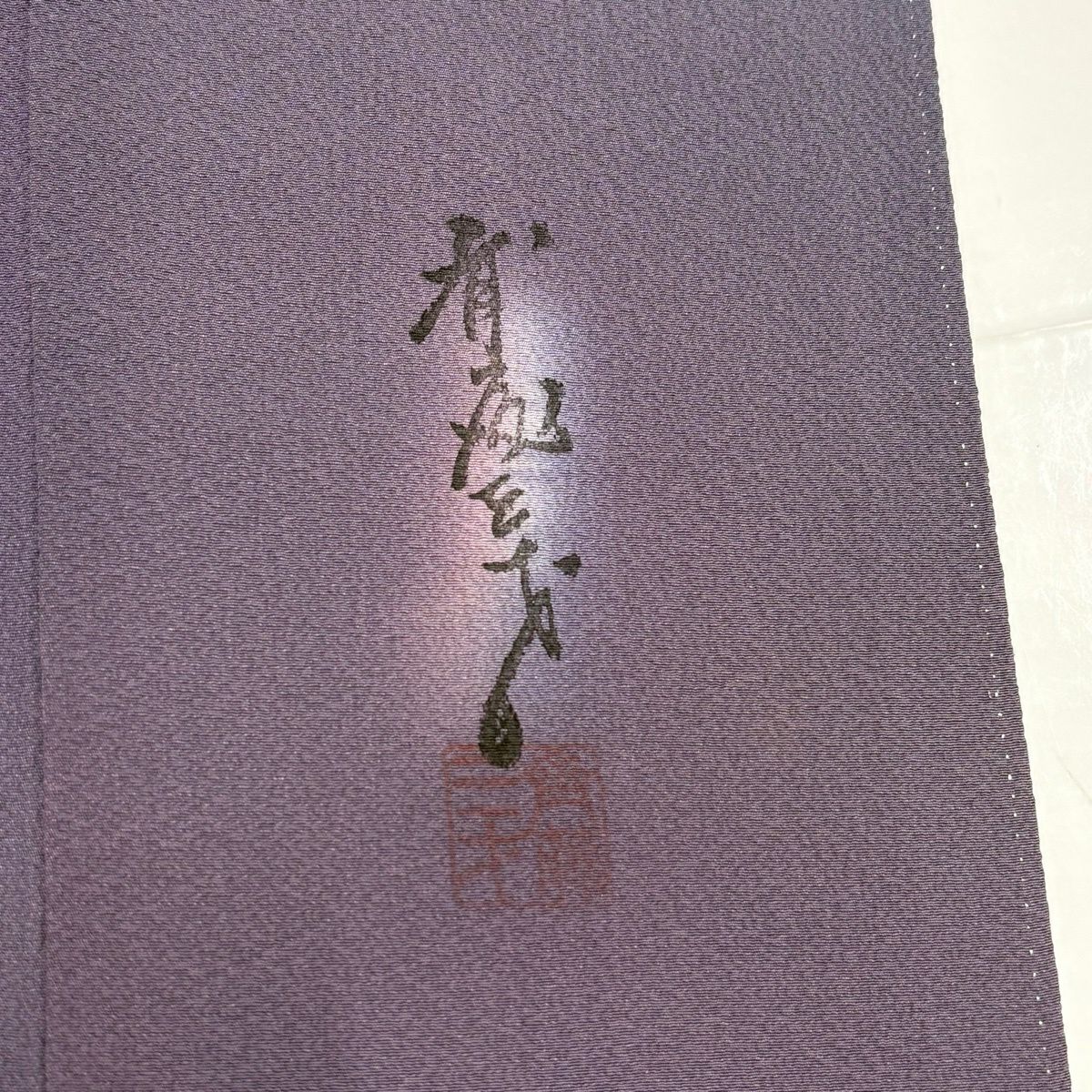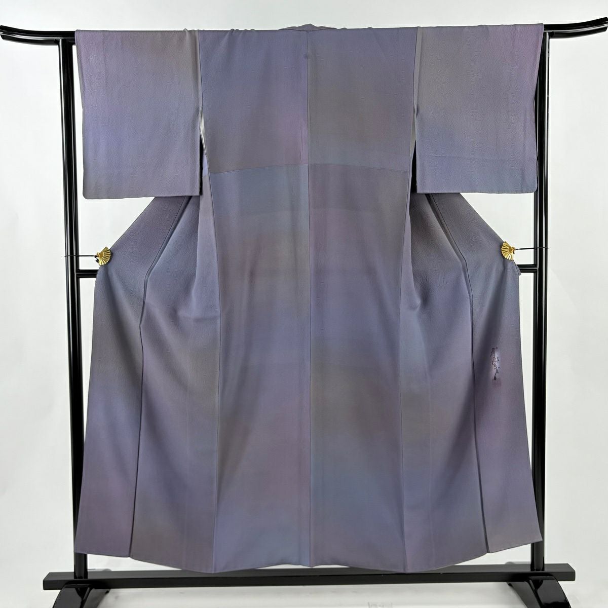 【美品】 小紋 身丈153.5cm 裄丈64cm M 袷 斉藤三才 落款あり ぼかし柄 灰紫 正絹 秀品 一つ紋