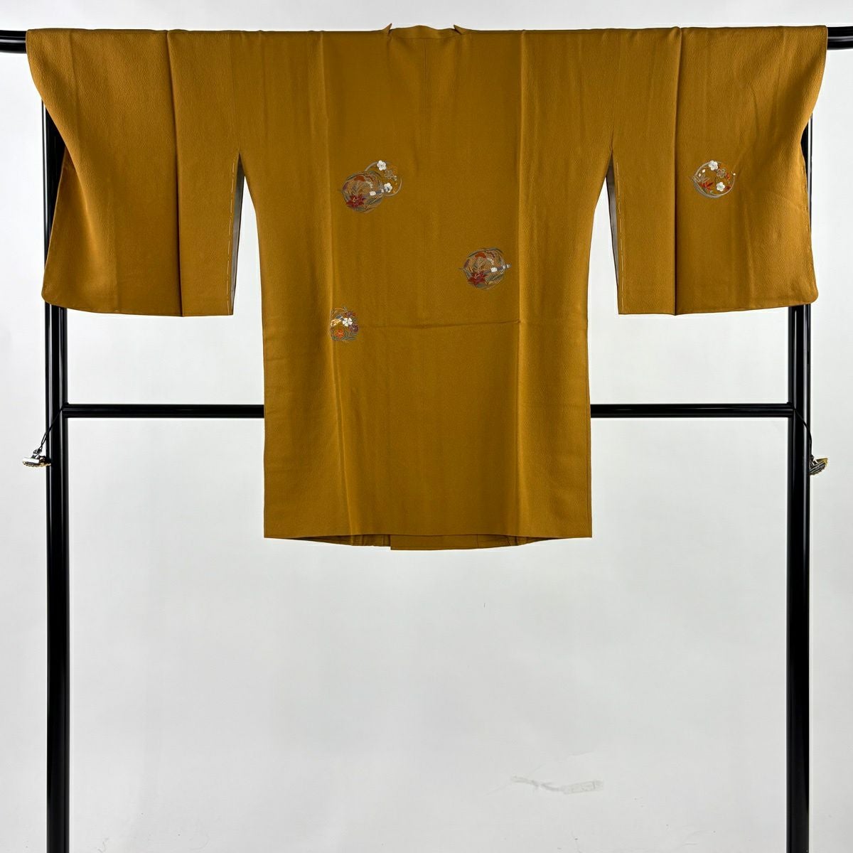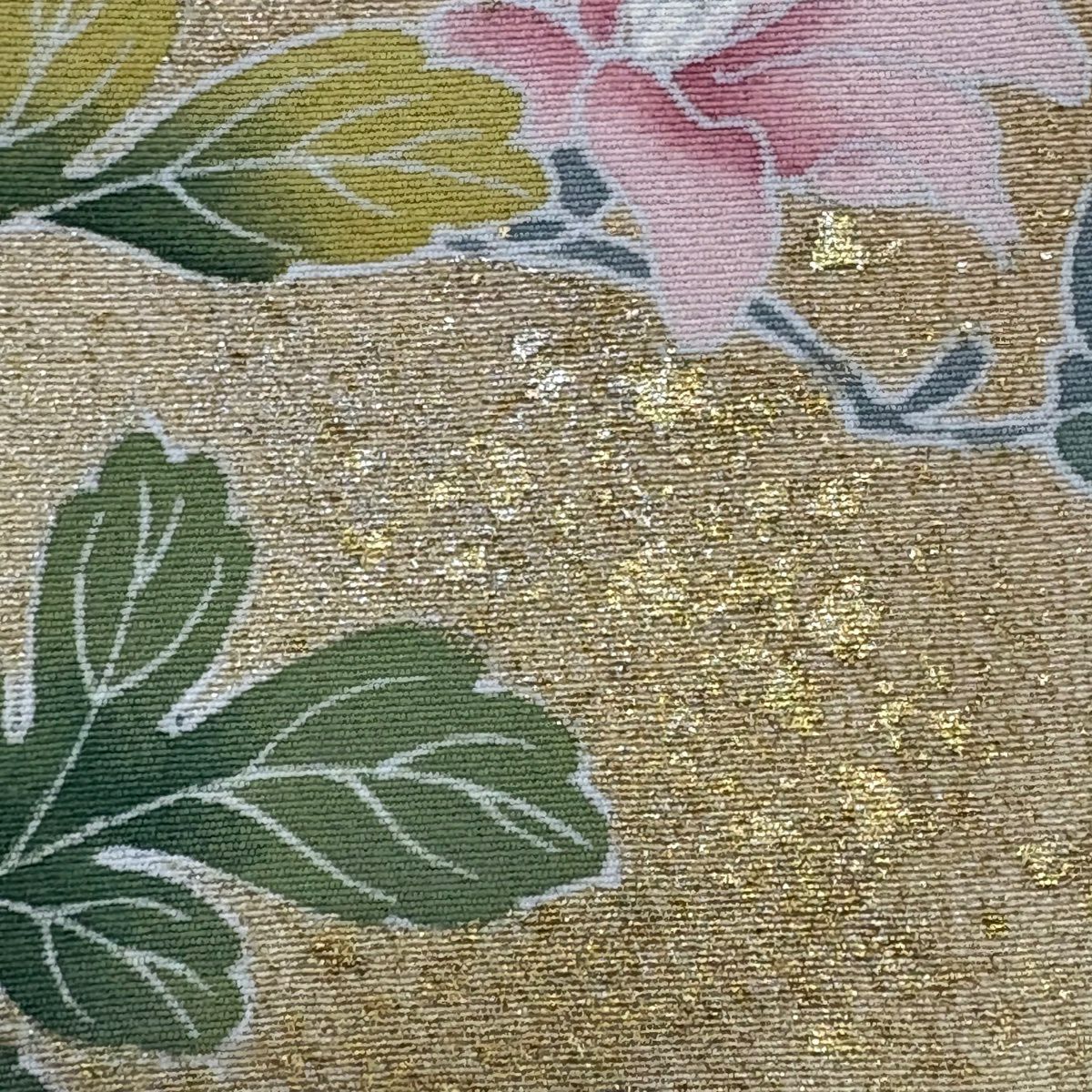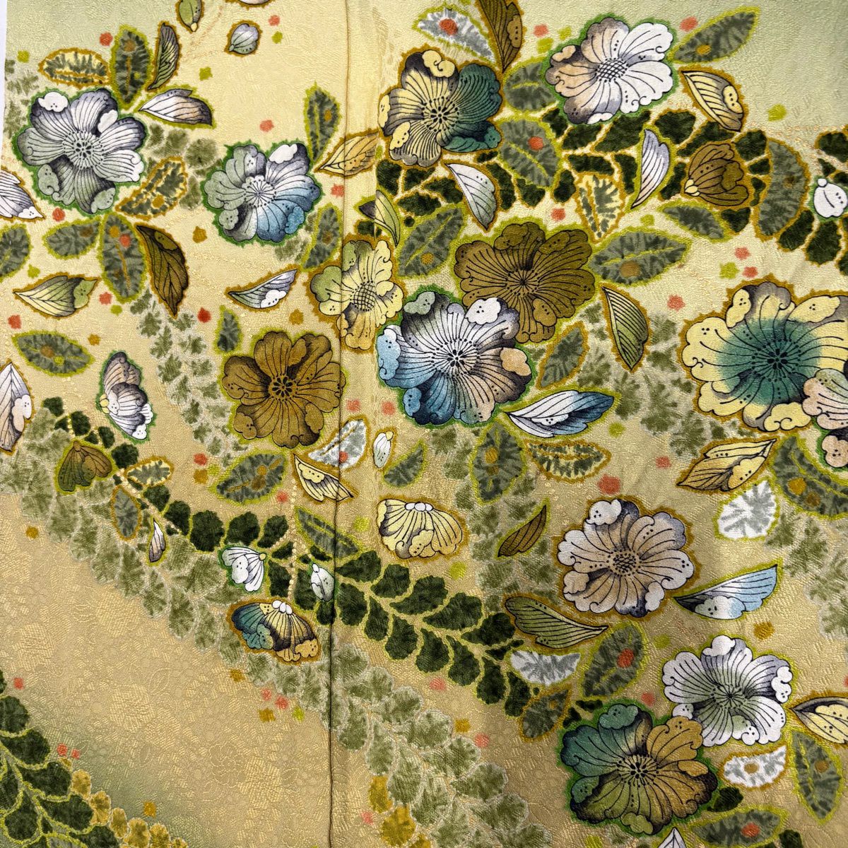 【美品】 振袖 身丈160.5cm 裄丈66cm M 袷 袋帯フルセット 鼓 牡丹 金糸 金彩 山吹色 正絹 秀品