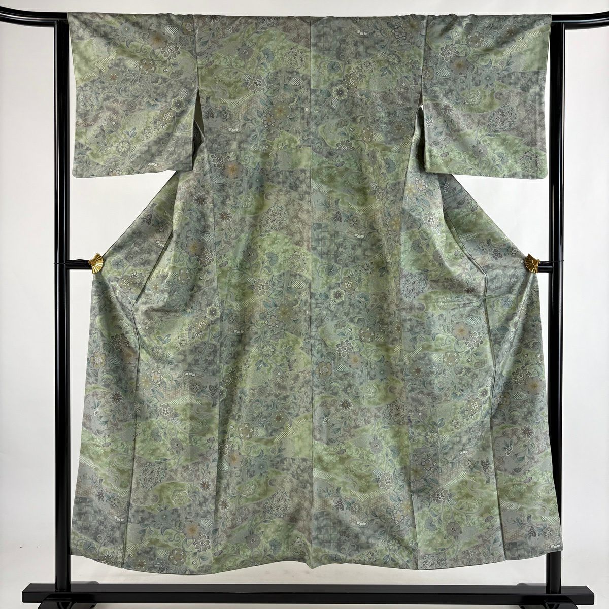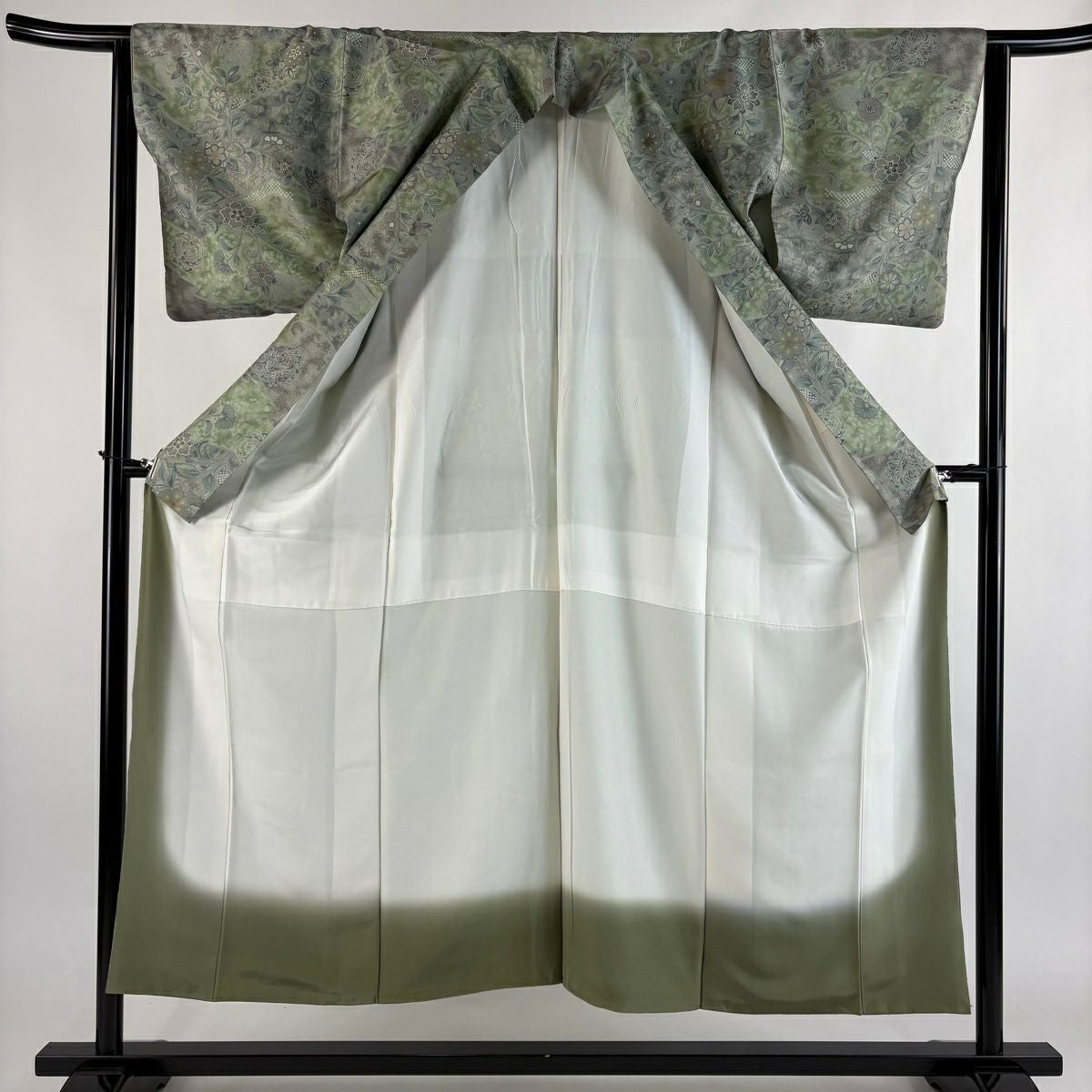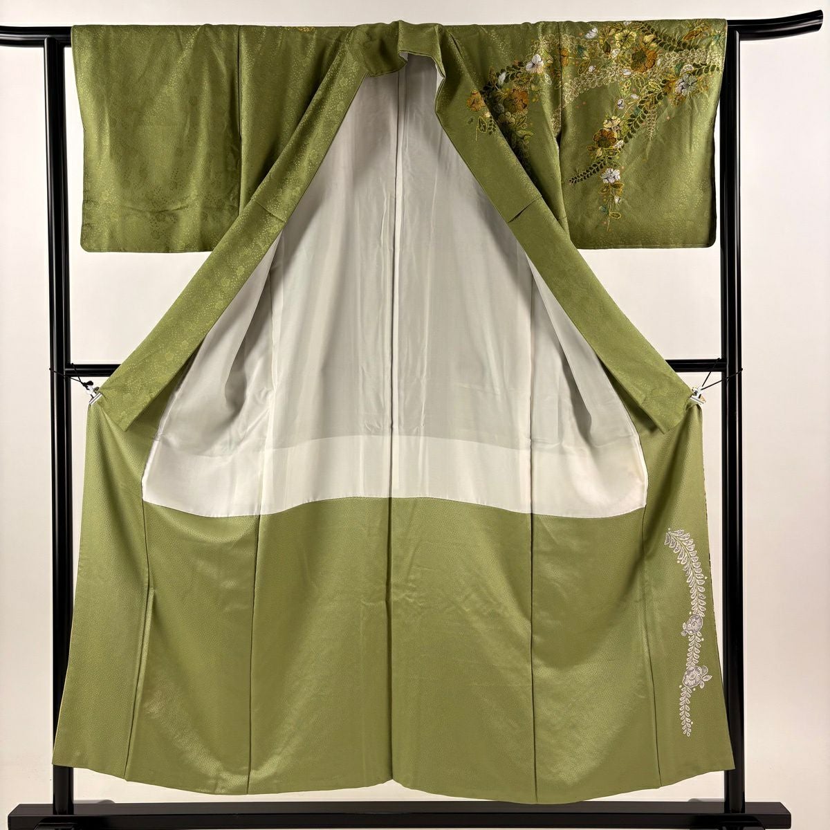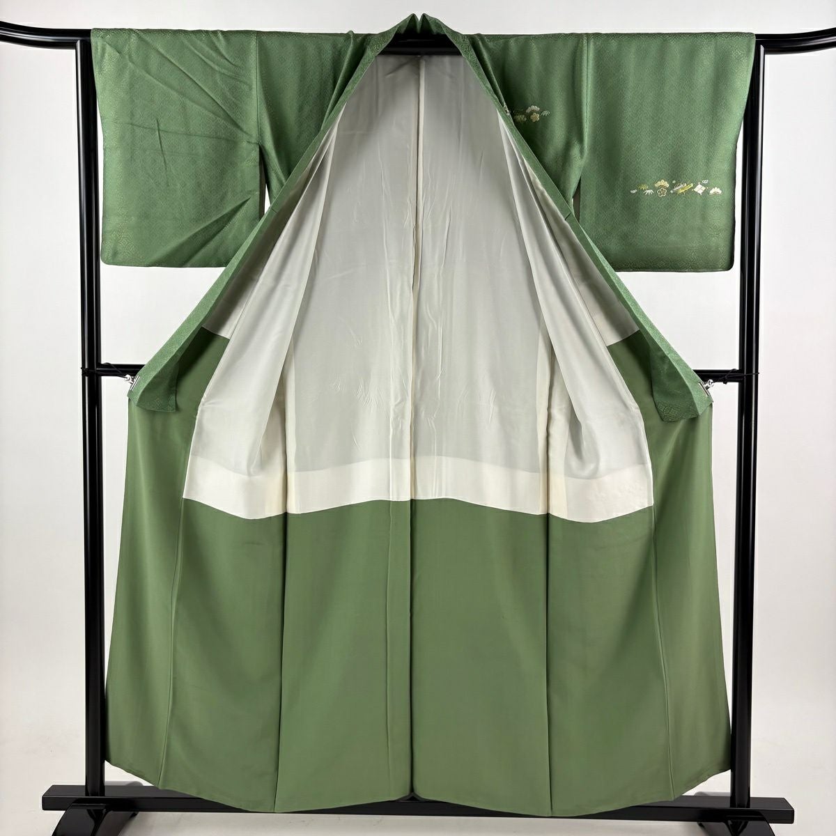 【美品】 訪問着 身丈152cm 裄丈63.5cm S 袷 落款あり 辻が花柄 金彩 絞り よもぎ色 正絹 秀品