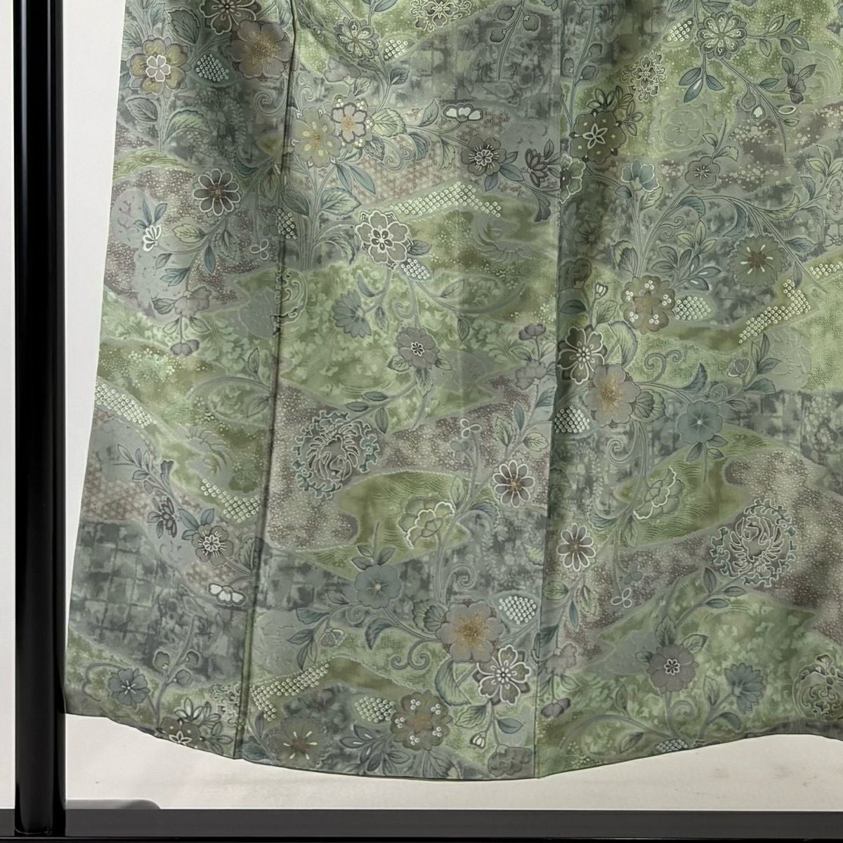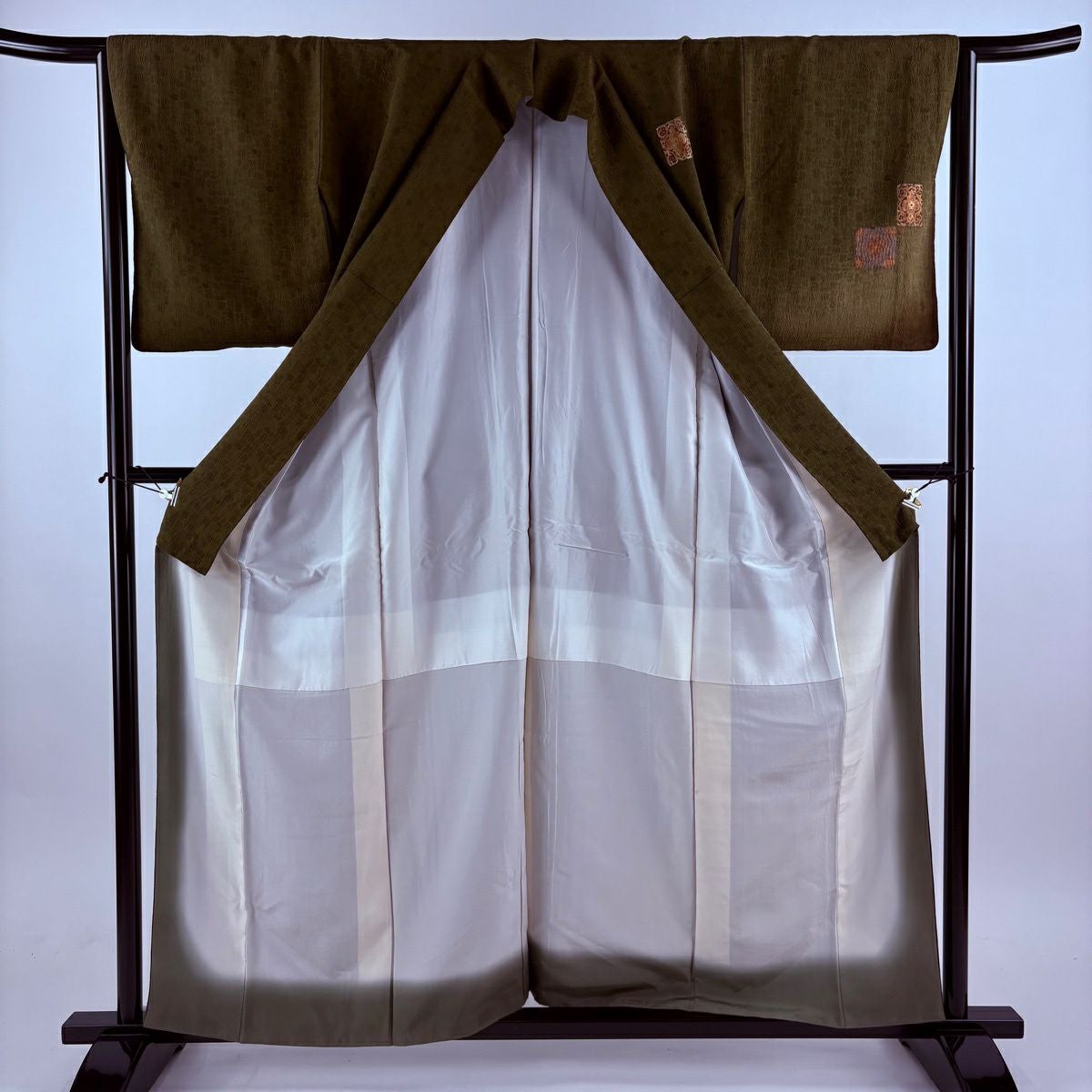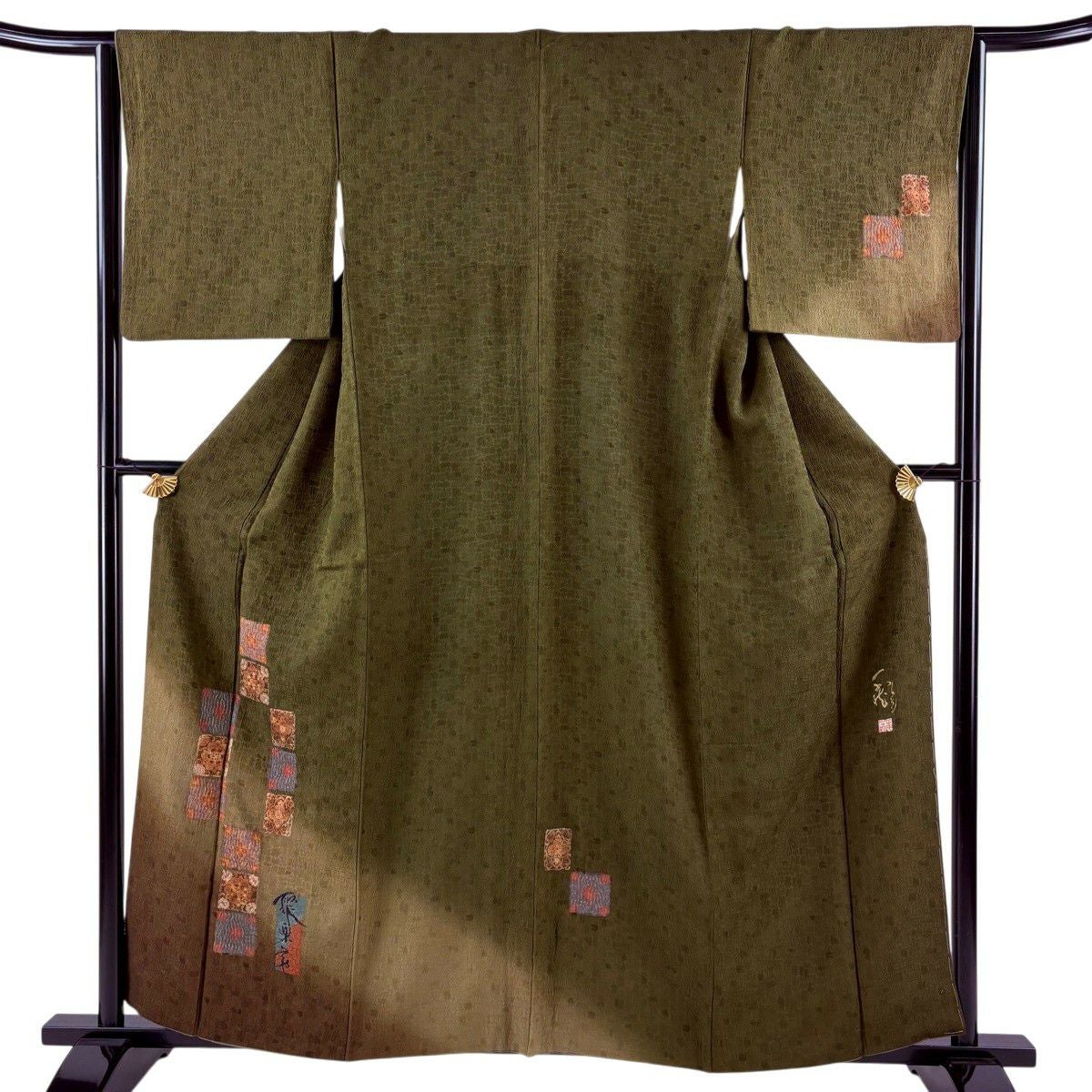 【美品】 訪問着 身丈152cm 裄丈63.5cm S 袷 落款あり 辻が花柄 金彩 絞り よもぎ色 正絹 秀品