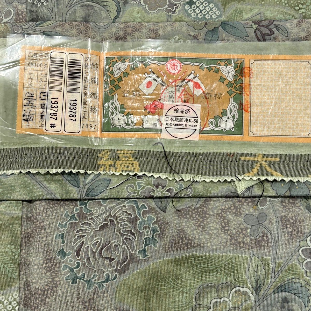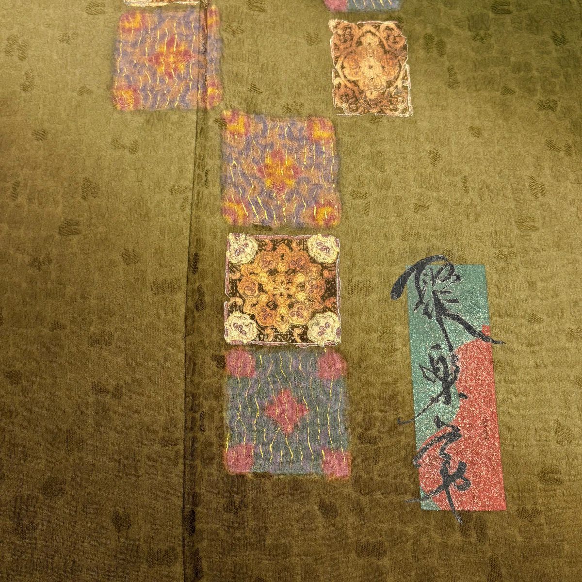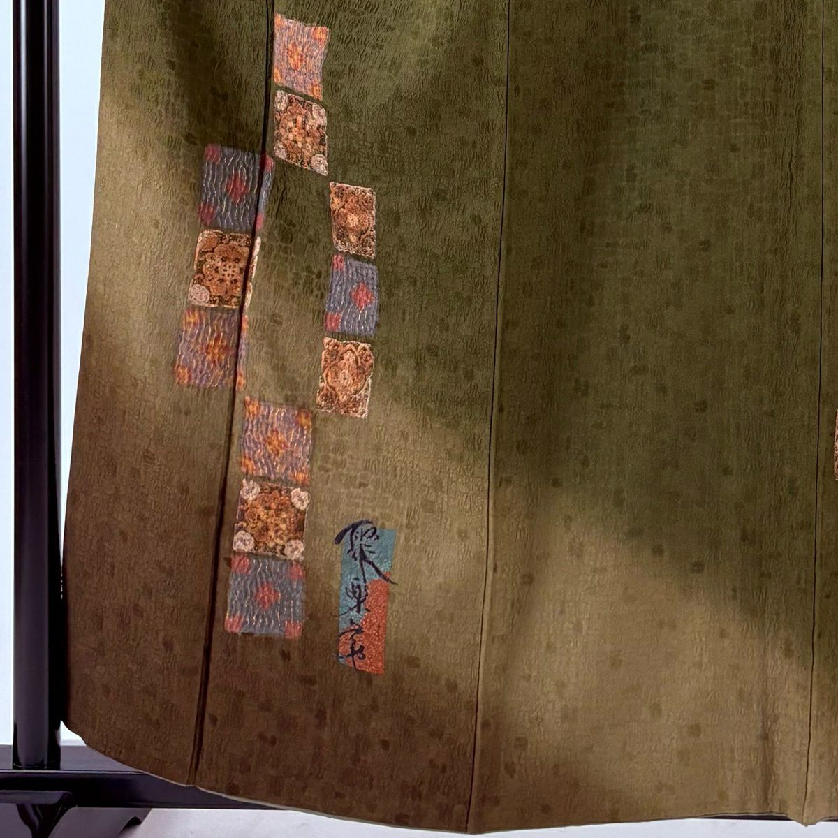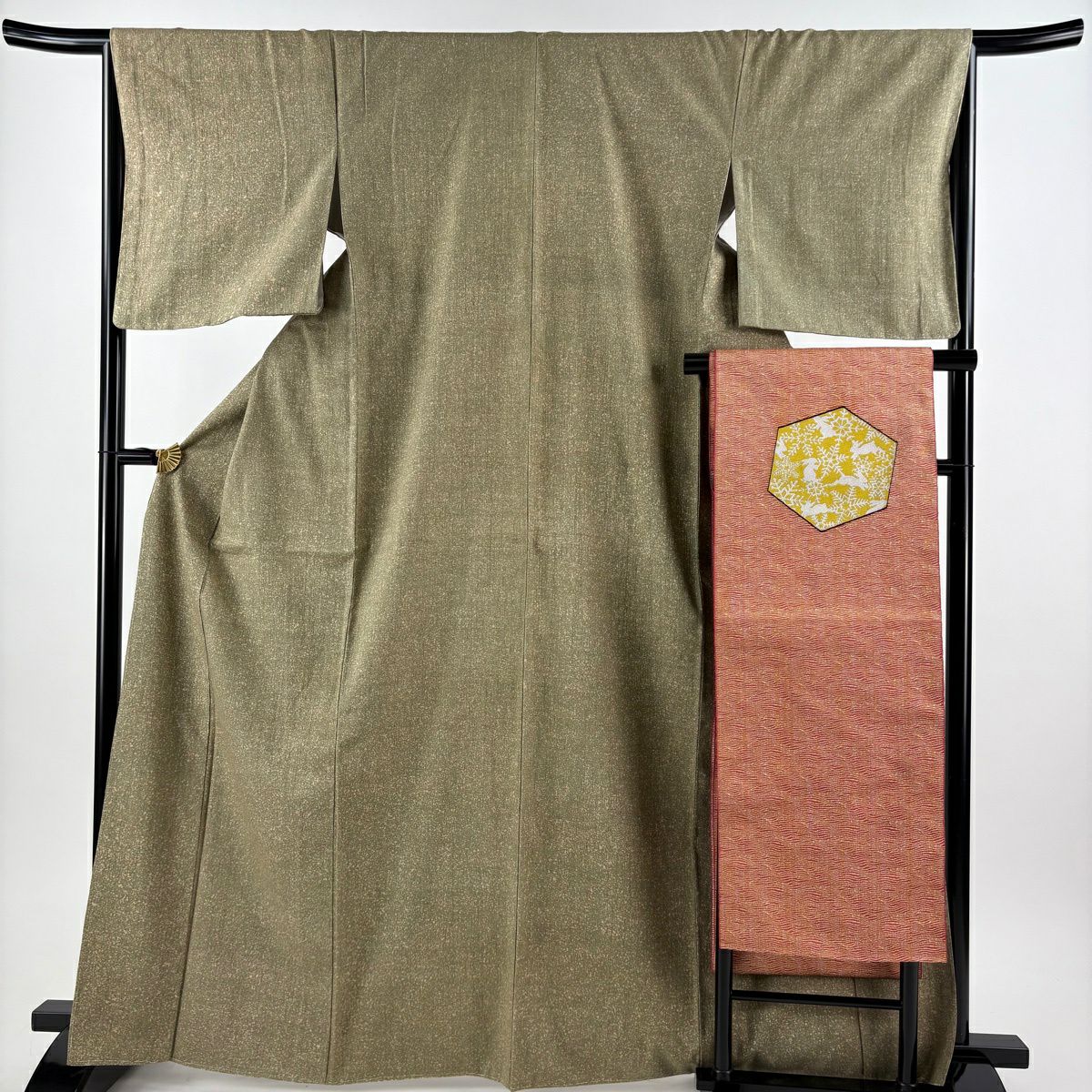 【美品】 訪問着 身丈152cm 裄丈63.5cm S 袷 落款あり 辻が花柄 金彩 絞り よもぎ色 正絹 秀品