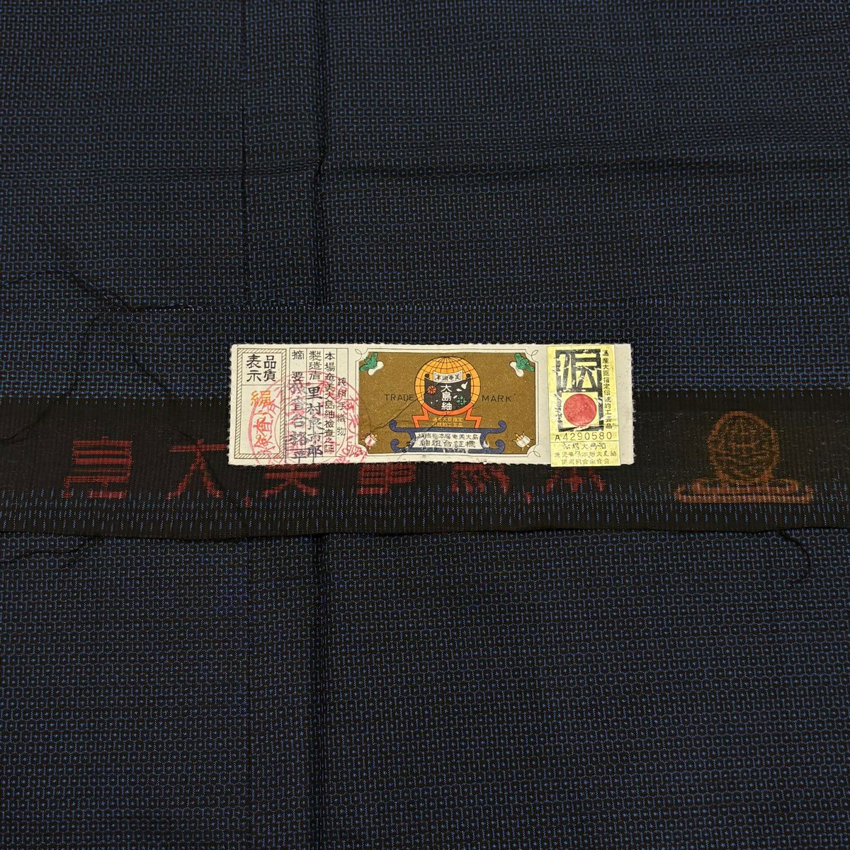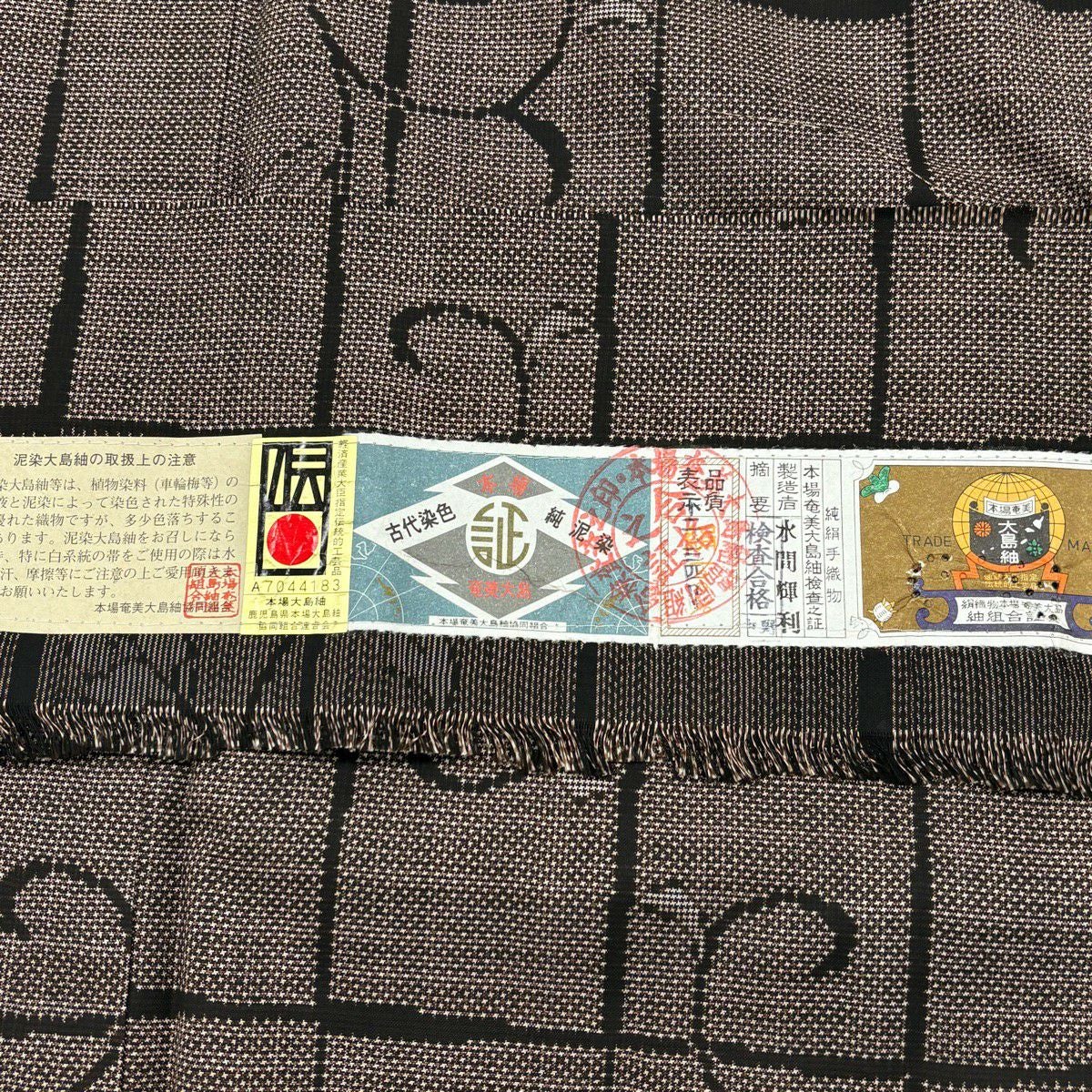 【美品】 大島紬 身丈156cm 裄丈61.5cm S 袷 証紙あり 幾何学模様 菱 純泥染 焦茶色 正絹 秀品