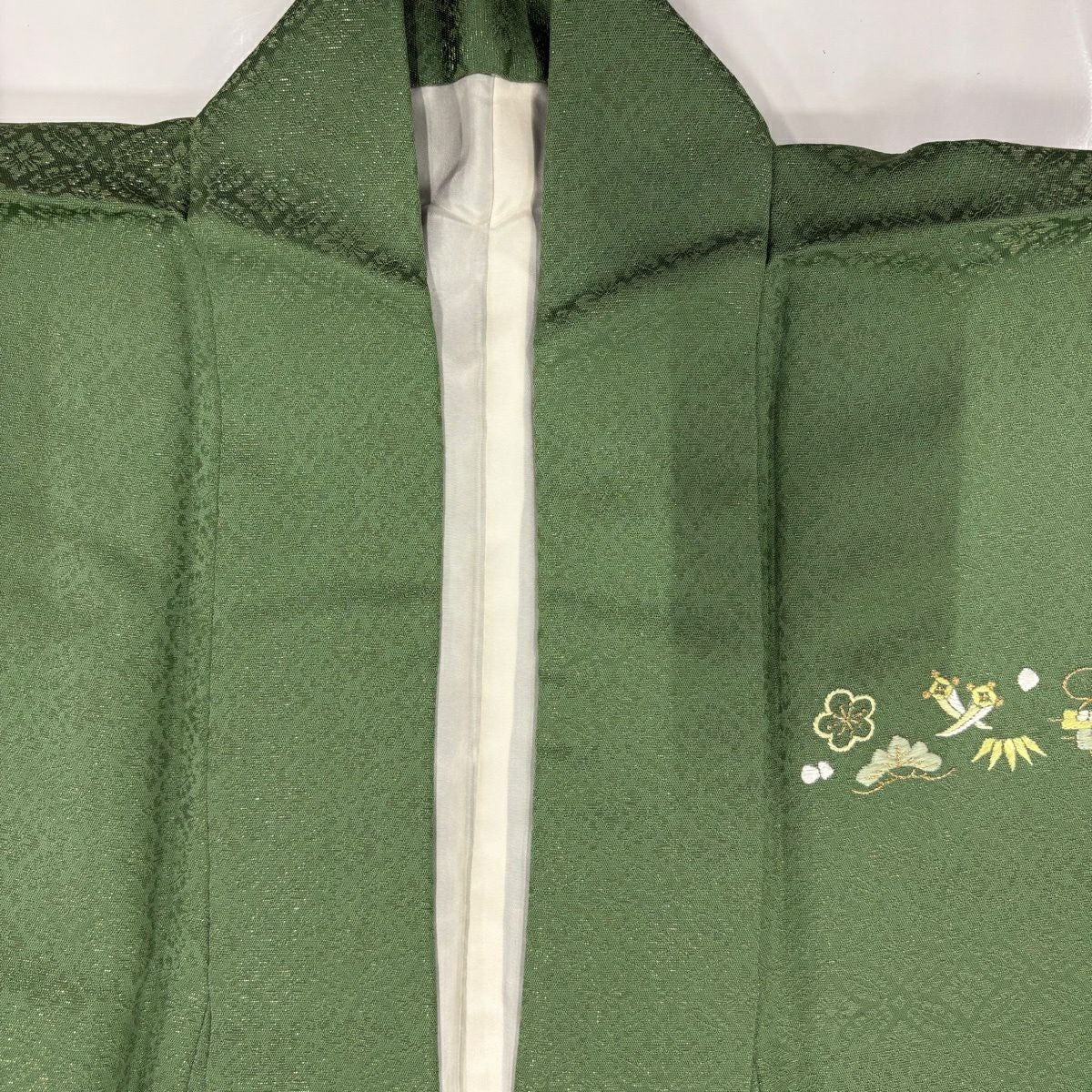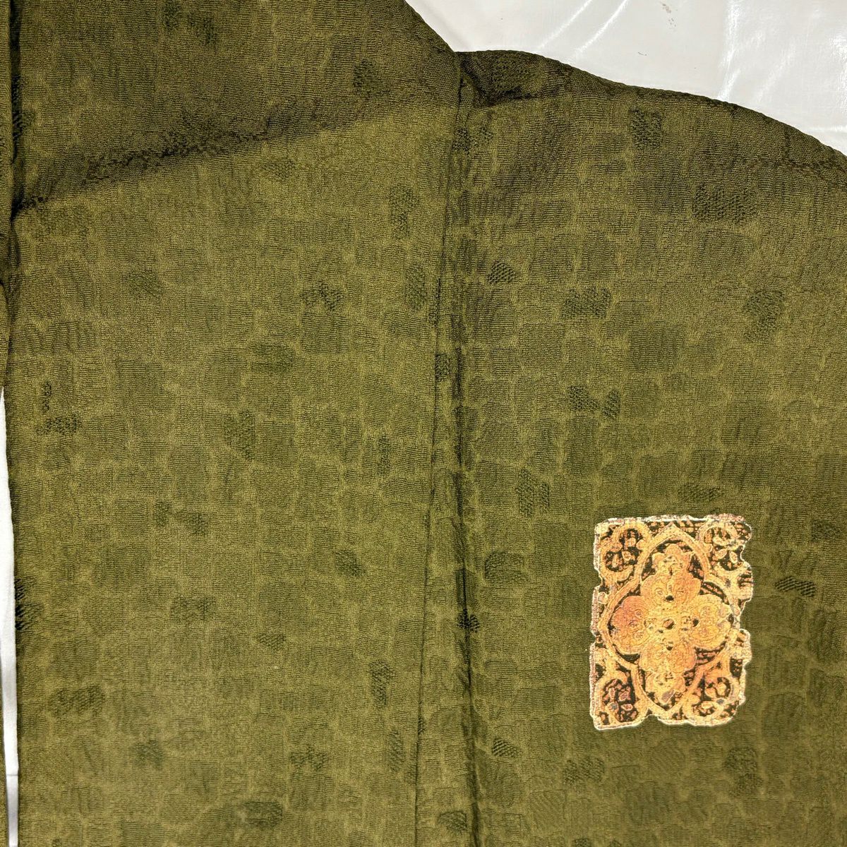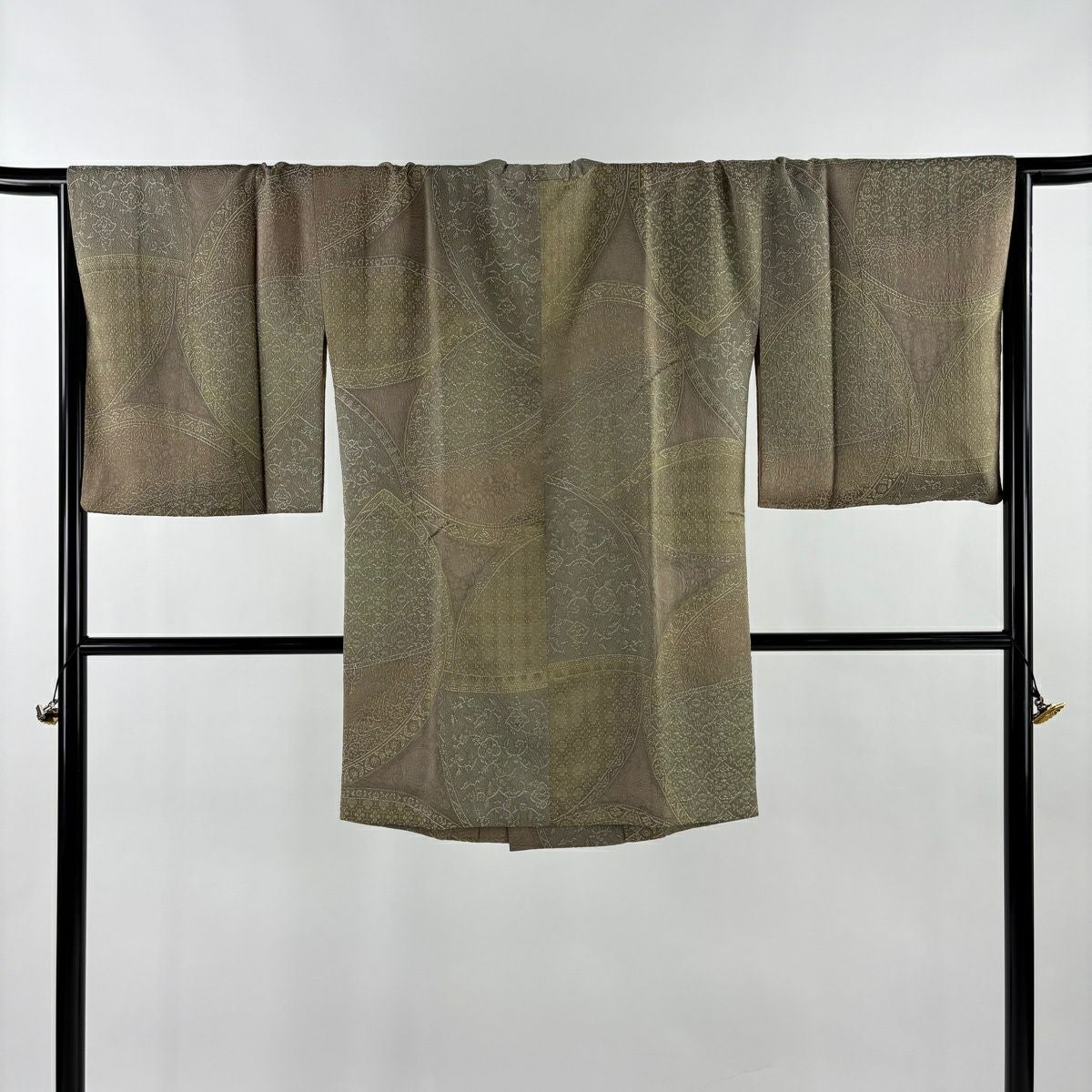 【美品】 道中着 身丈106.5cm 裄丈63cm S 和装コート 着物衿 花丸文 変わり市松 薄緑 正絹 秀品