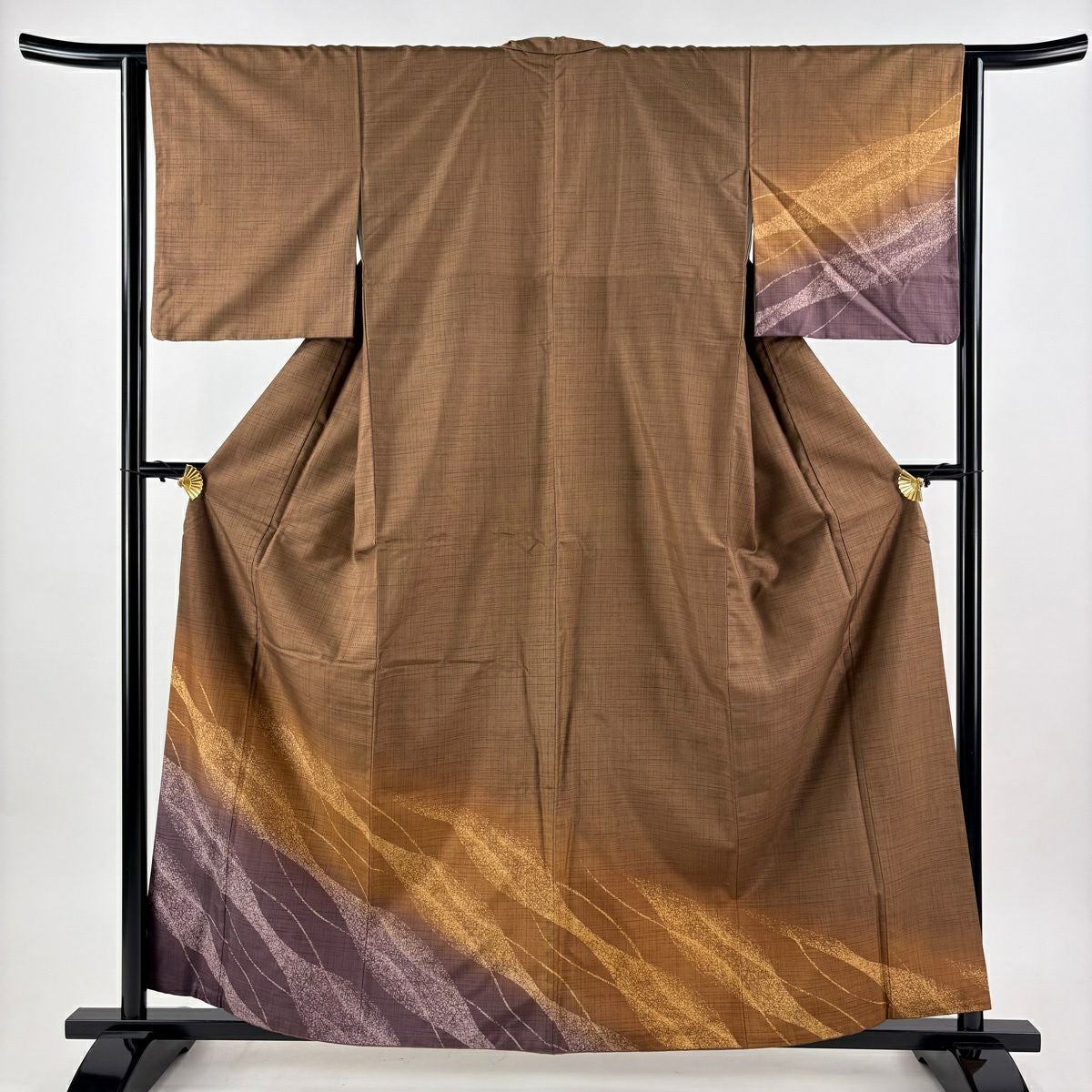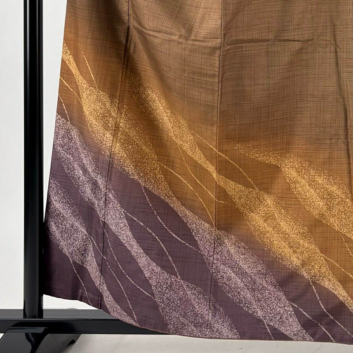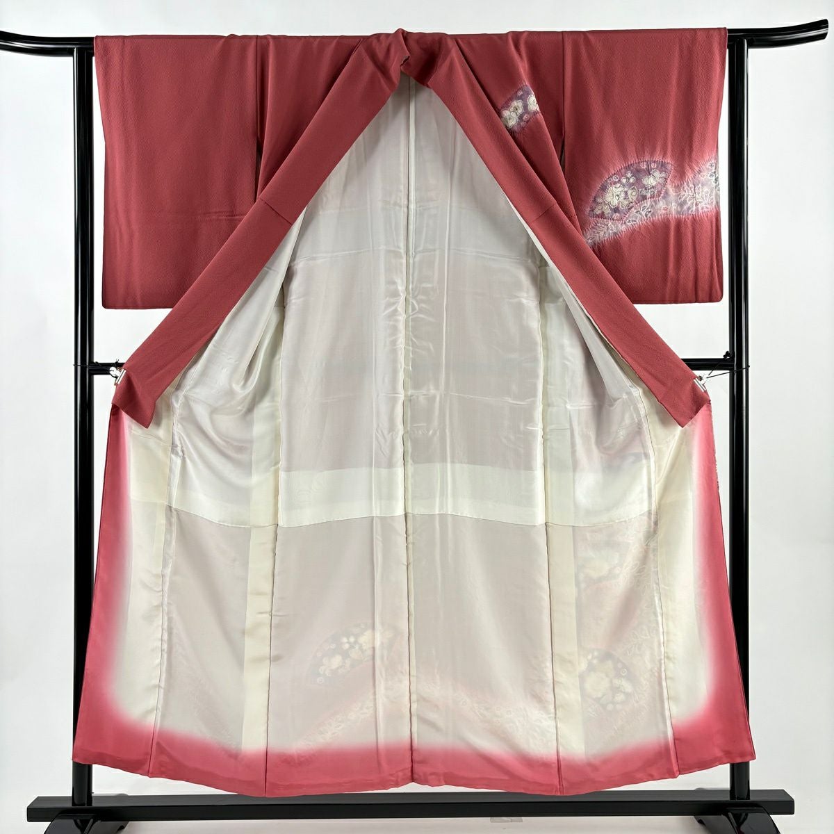 【美品】 訪問着 身丈155cm 裄丈62cm S 袷 紬地 落款あり 幾何学模様 染め分け 薄小豆 正絹 秀品