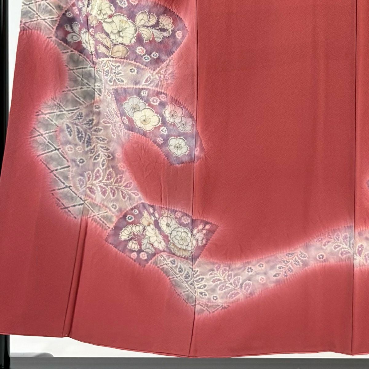 【美品】 振袖 身丈164.5cm 裄丈66cm M 袷 落款あり 蝶 松竹梅 染め分け ぼかし 赤 正絹 秀品