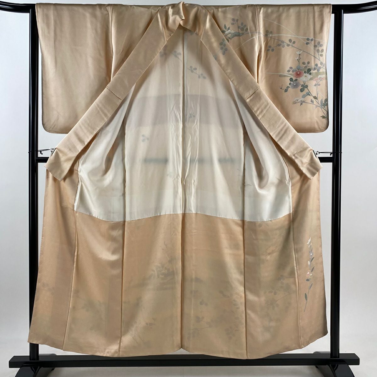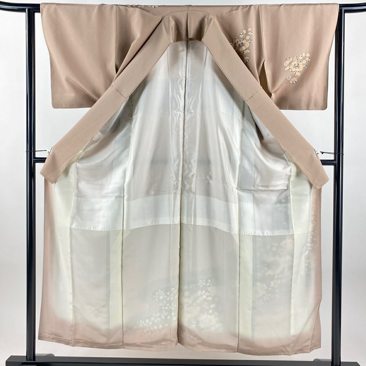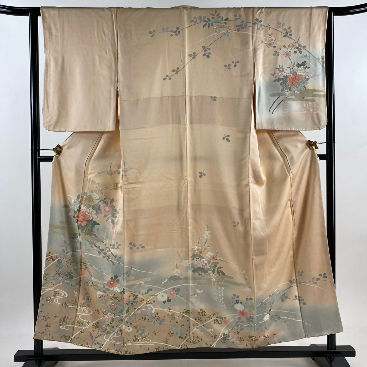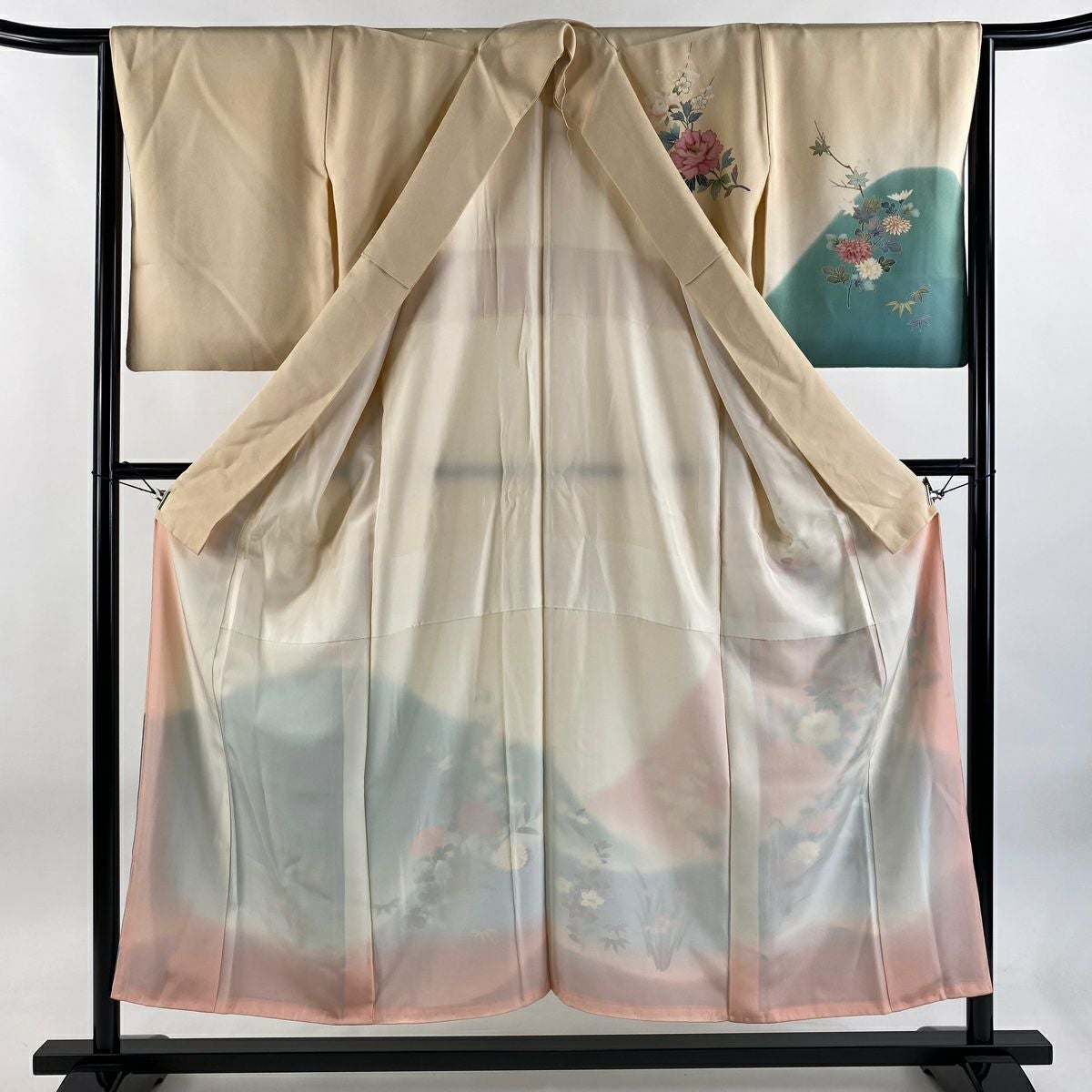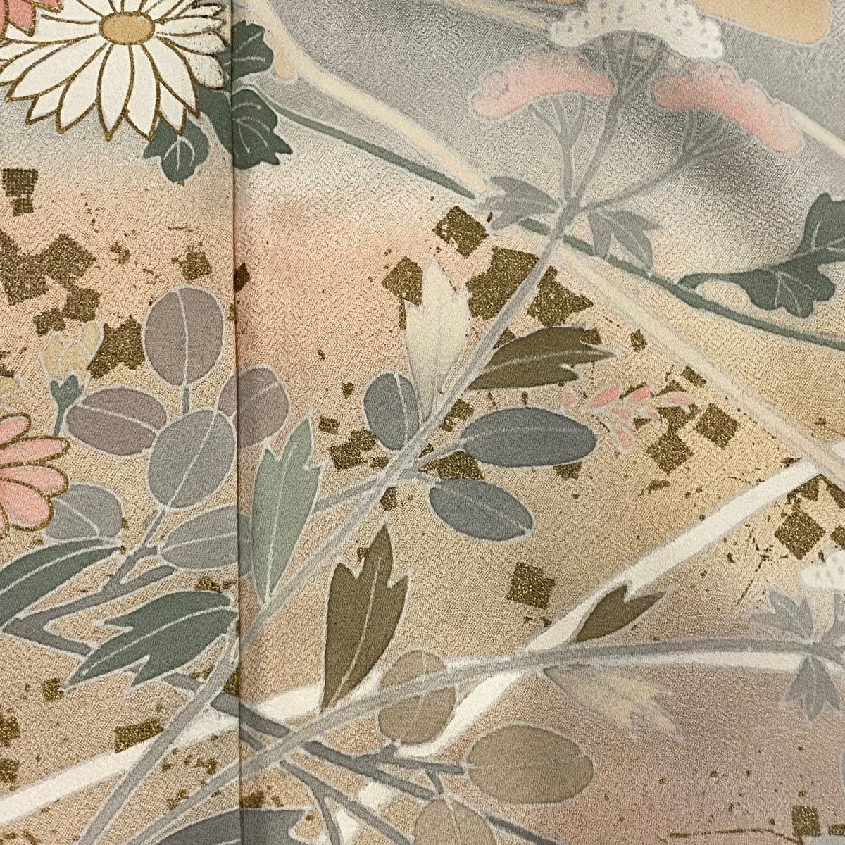 訪問着 身丈165.5cm 裄丈69cm L 袷 落款あり 菊 枝梅 染め分け ぼかし ベージュ 正絹 秀品
