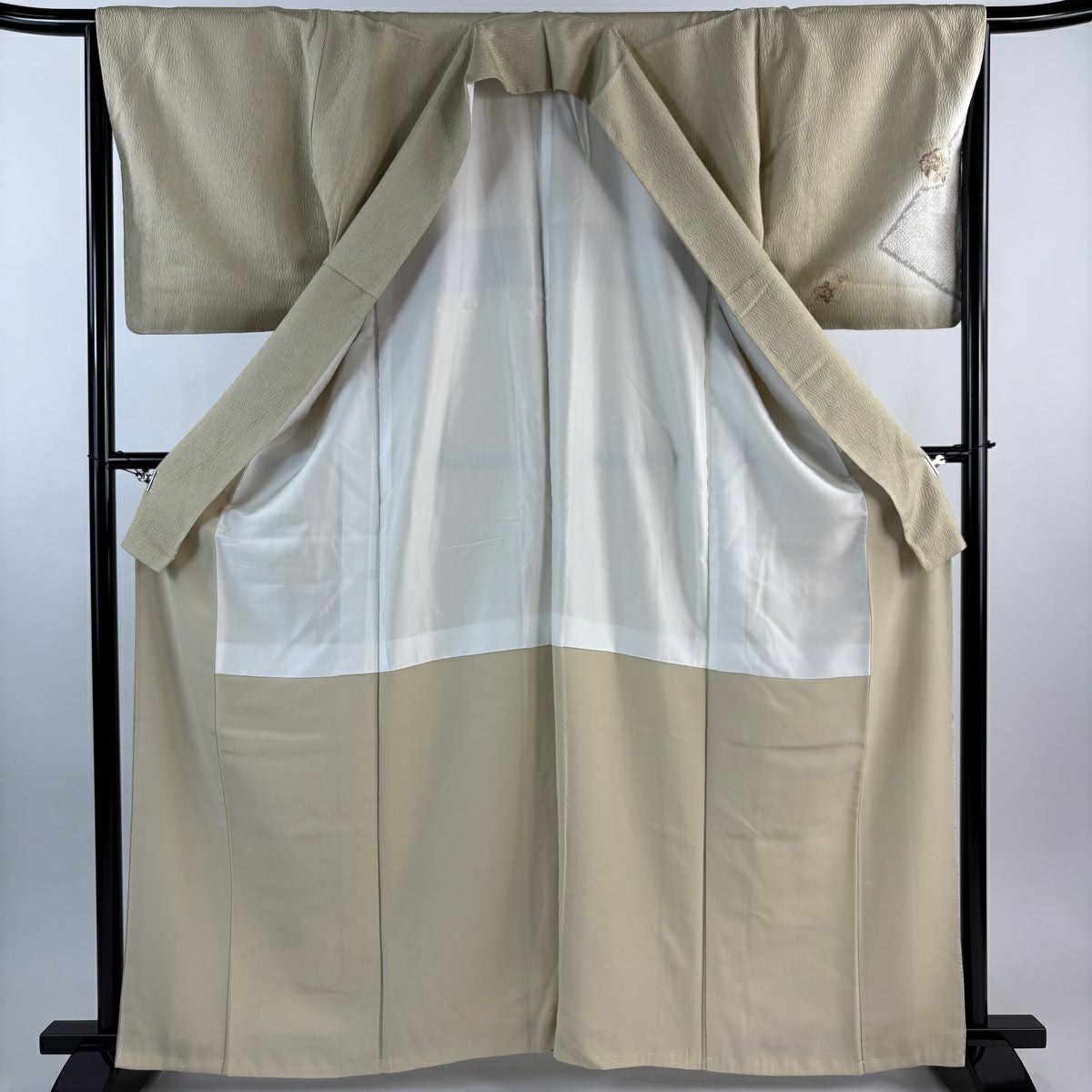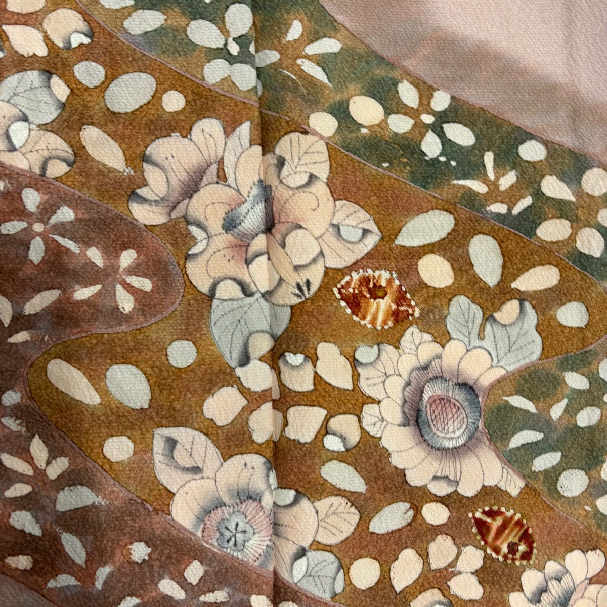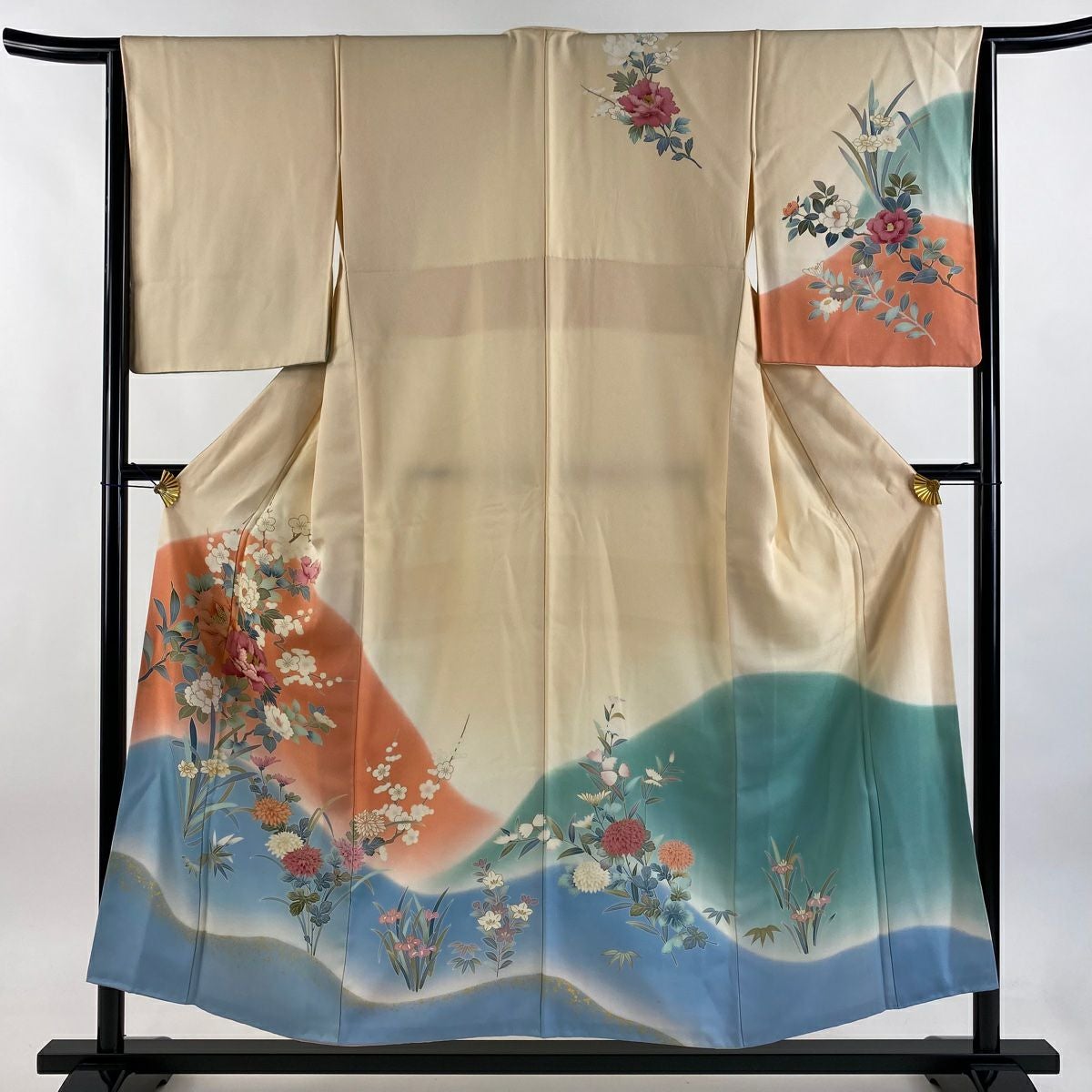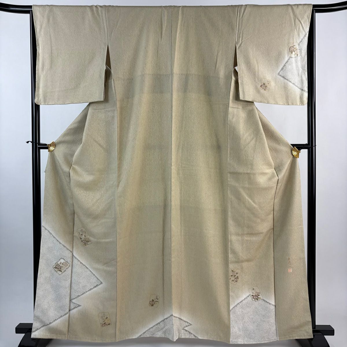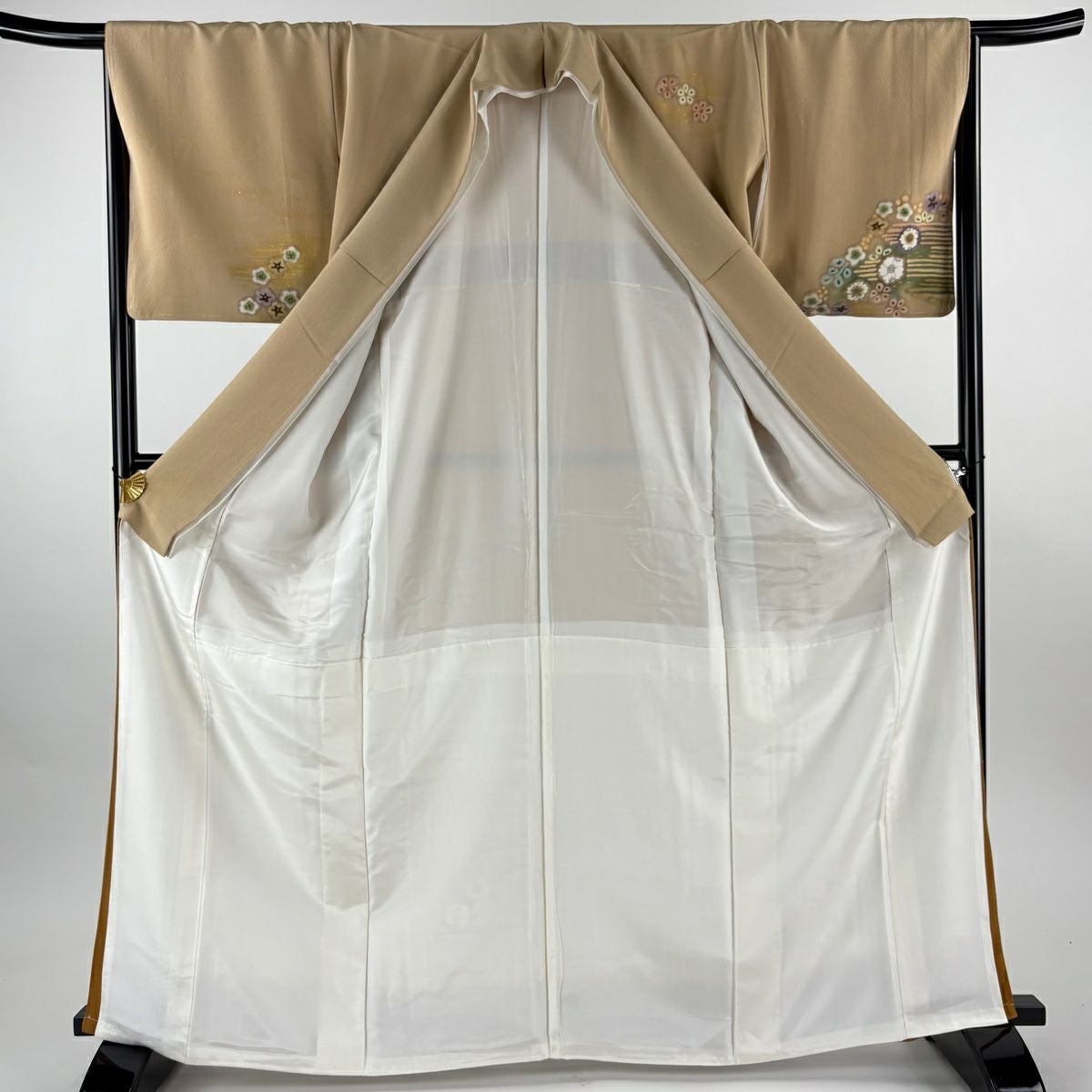 訪問着 身丈165.5cm 裄丈69cm L 袷 落款あり 菊 枝梅 染め分け ぼかし ベージュ 正絹 秀品
