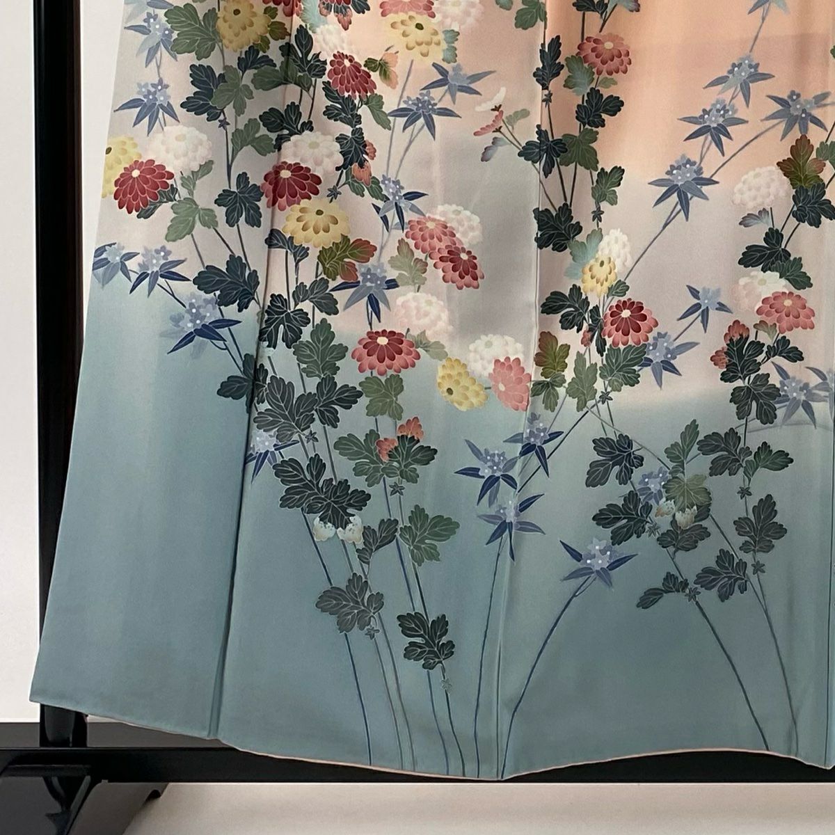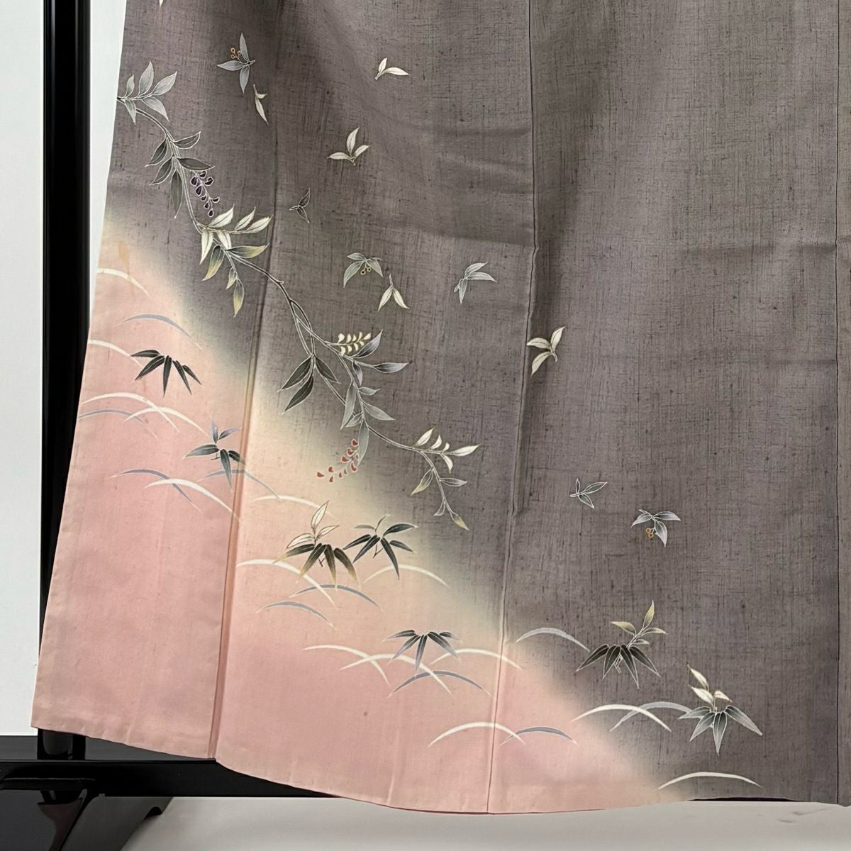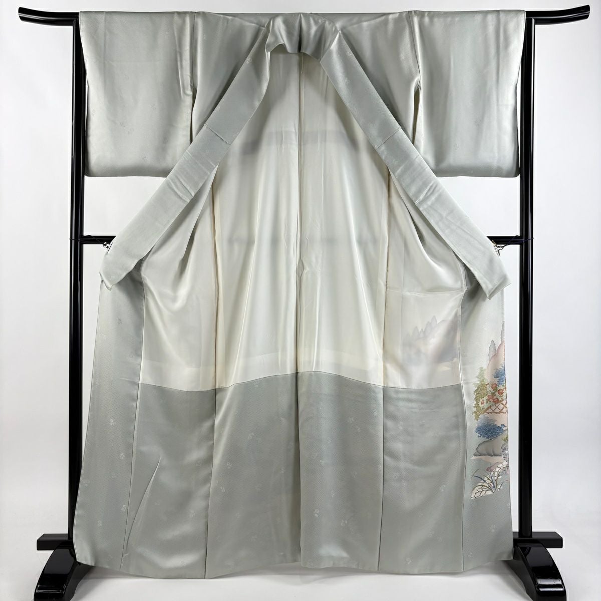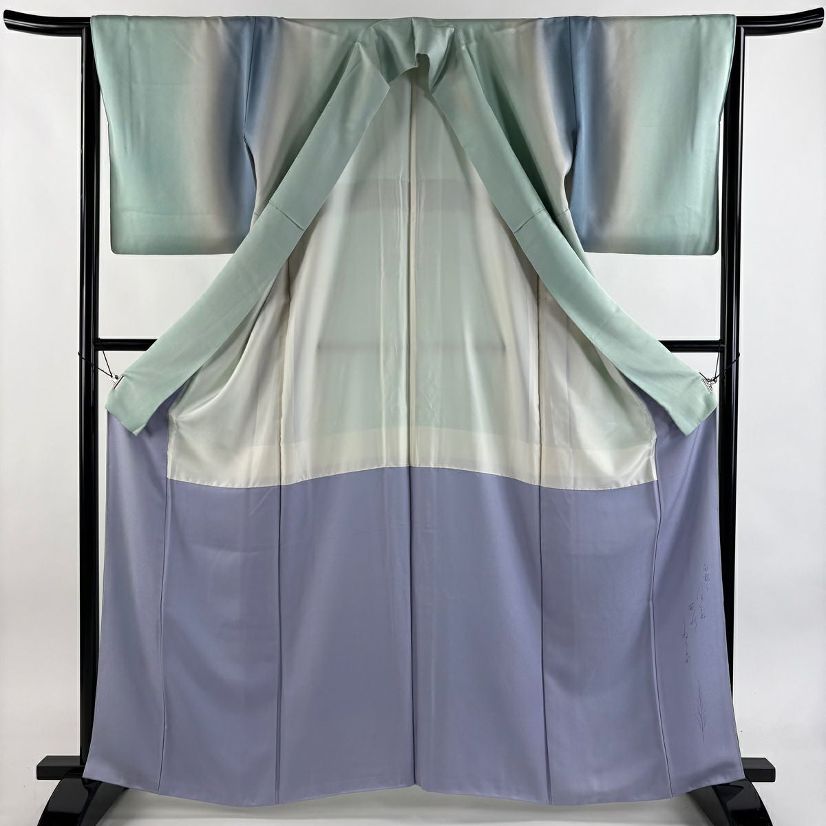 【在庫一掃】 付下げ 身丈157.5cm 裄丈64cm M 袷 草花 流水 染め分け ぼかし 青灰色 正絹 秀品