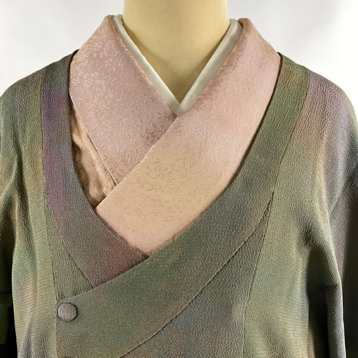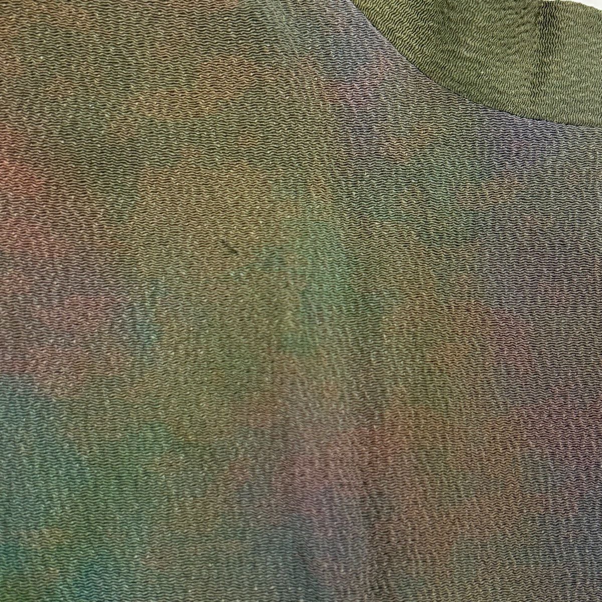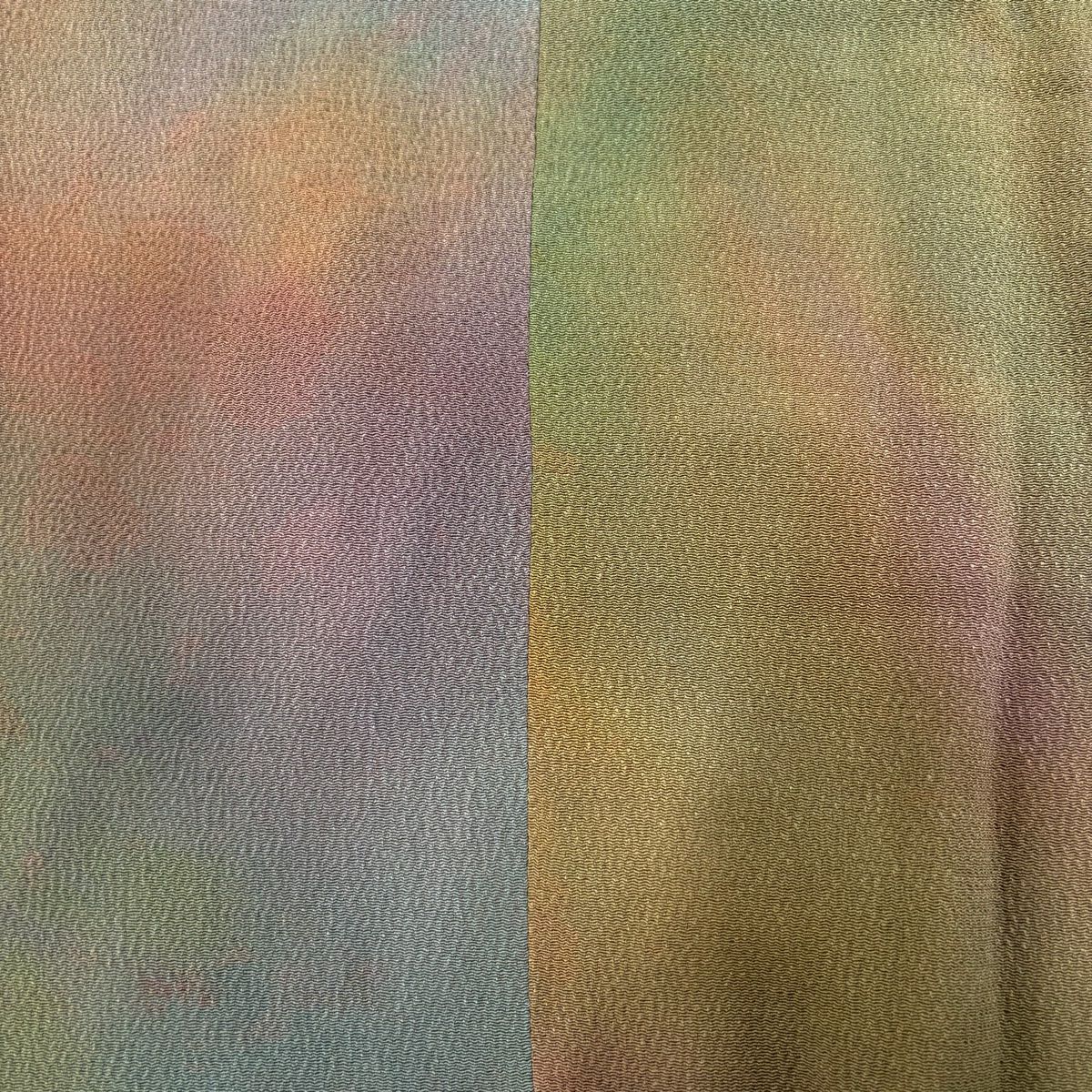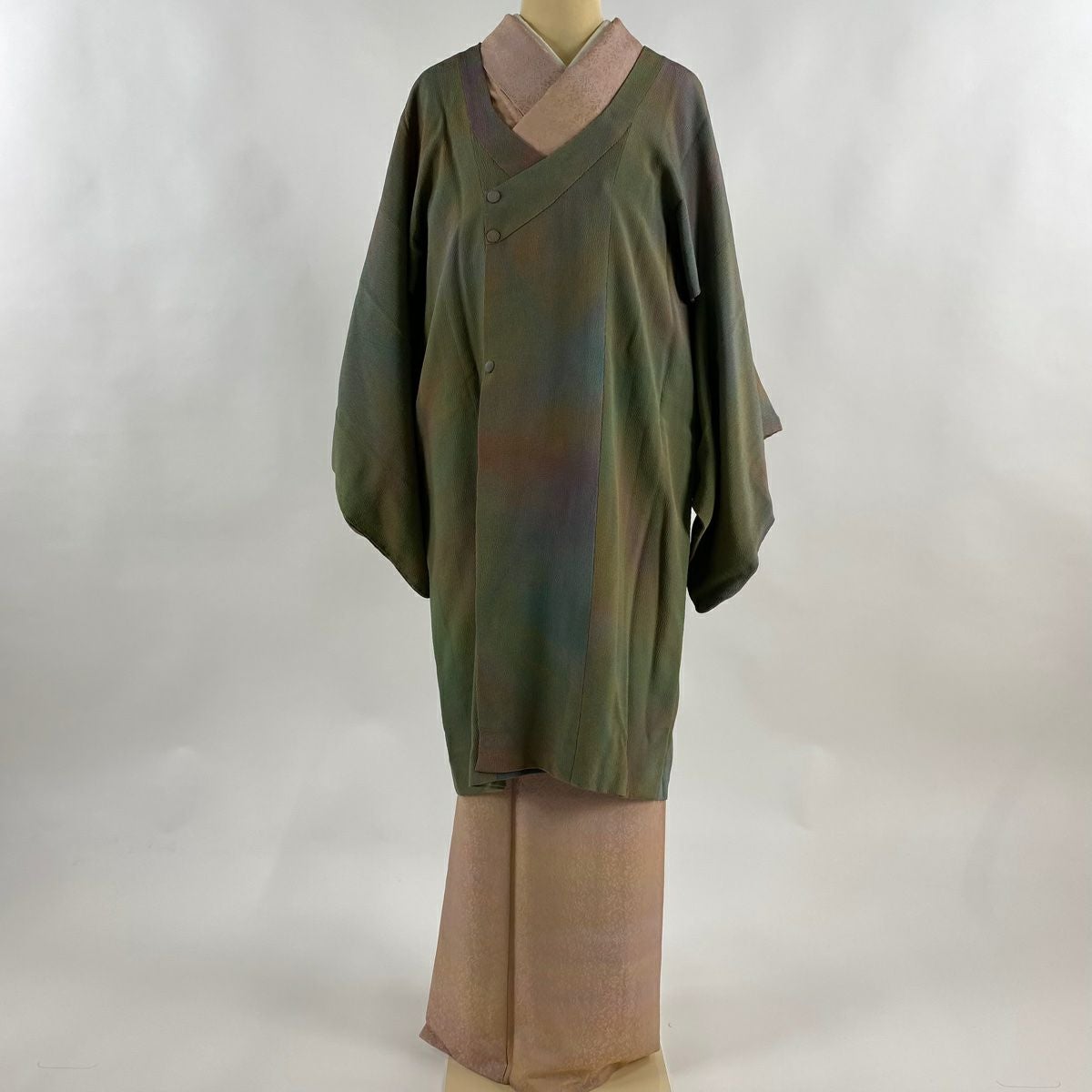 【在庫一掃】 道行 身丈100cm 裄丈63cm S 和装コート 千代田衿 ぼかし ちりめん 茶緑色 正絹 秀品