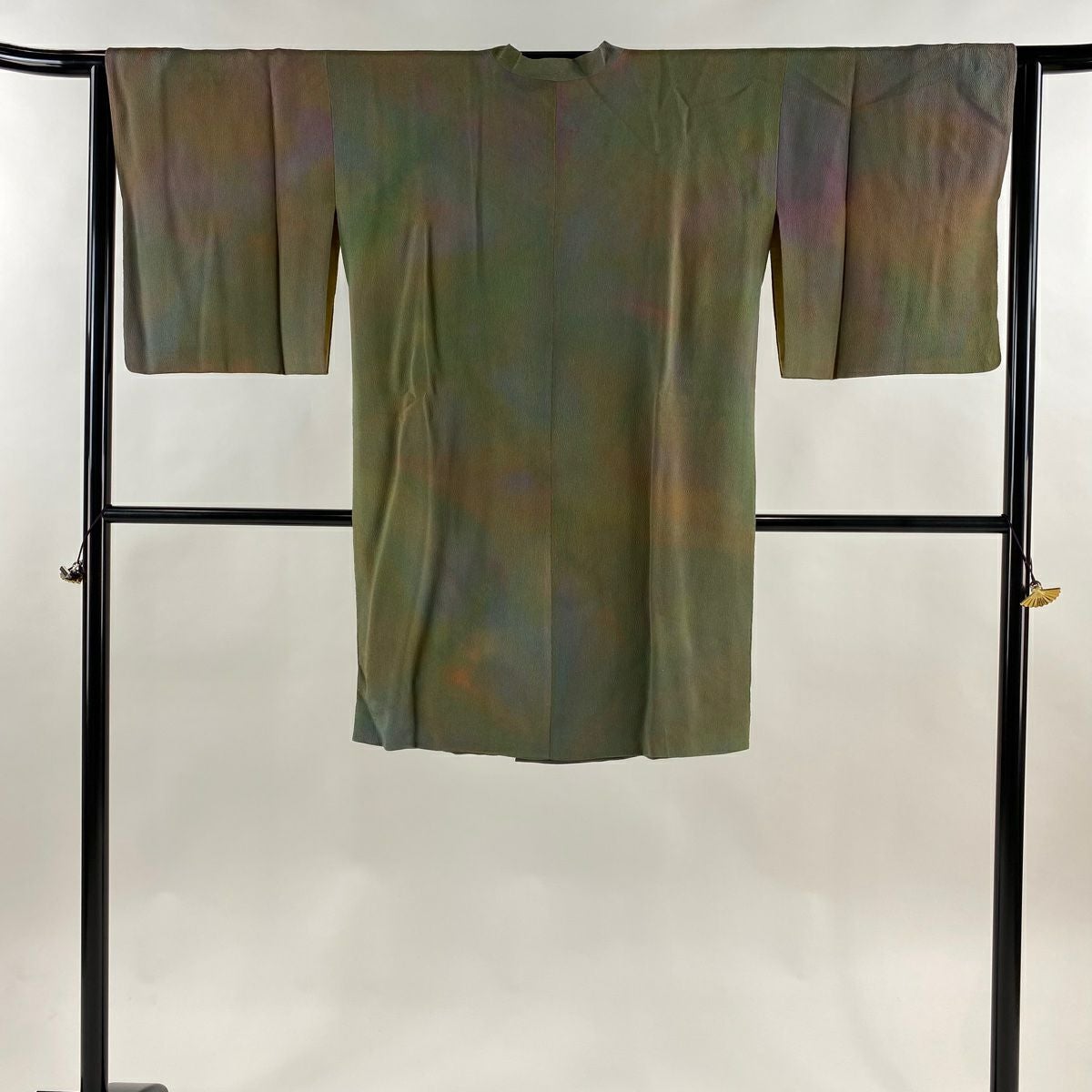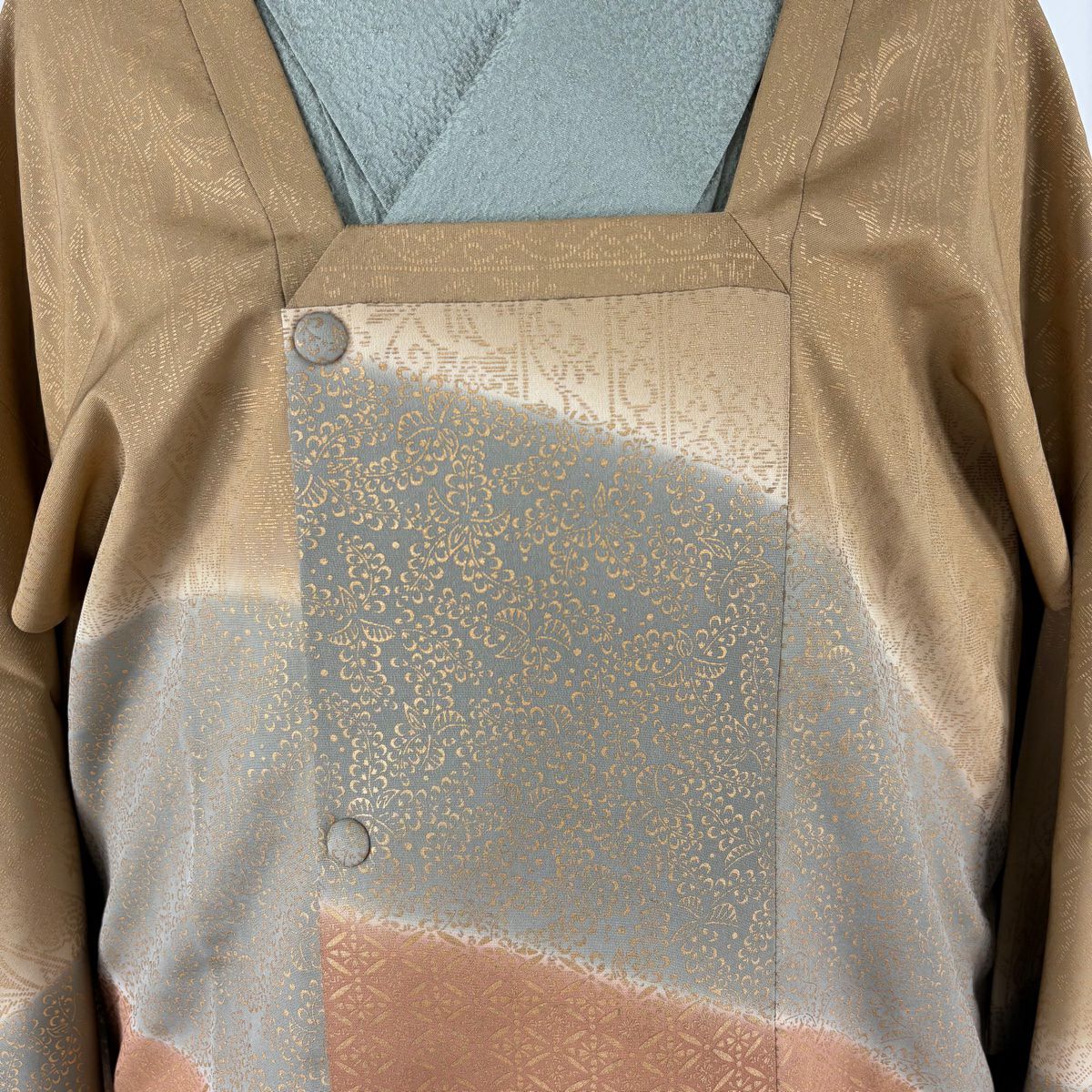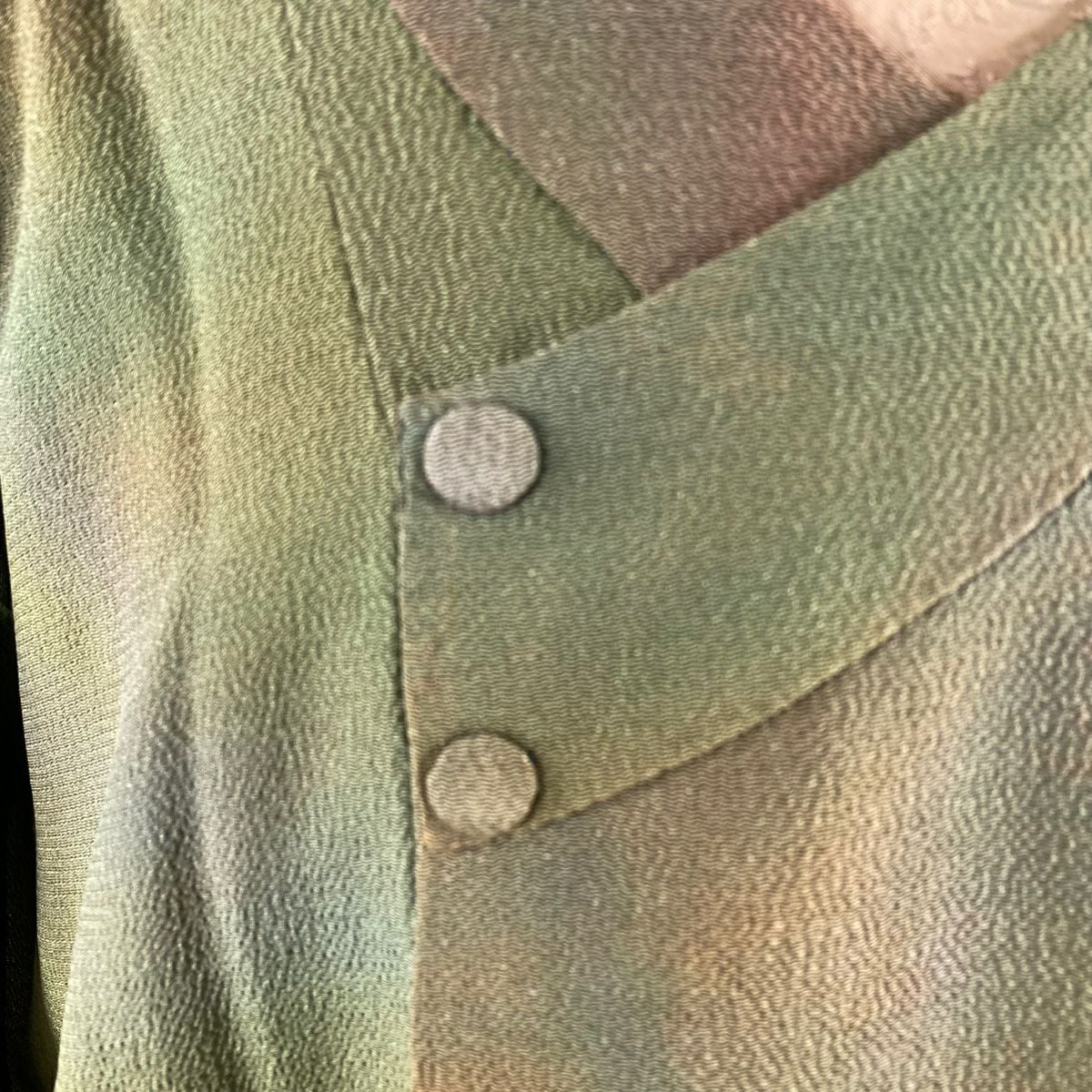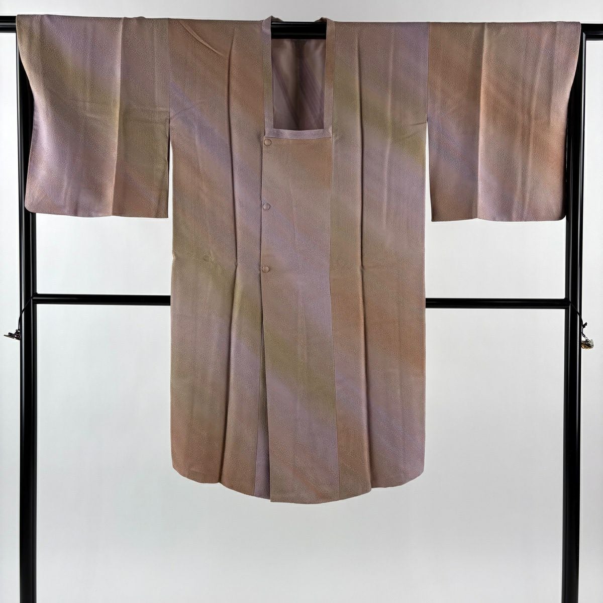 【在庫一掃】 道行 身丈100cm 裄丈63cm S 和装コート 千代田衿 ぼかし ちりめん 茶緑色 正絹 秀品