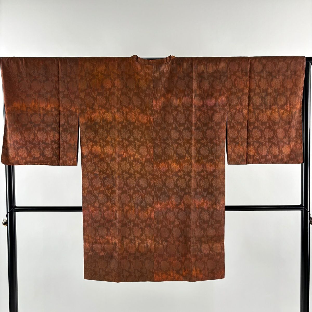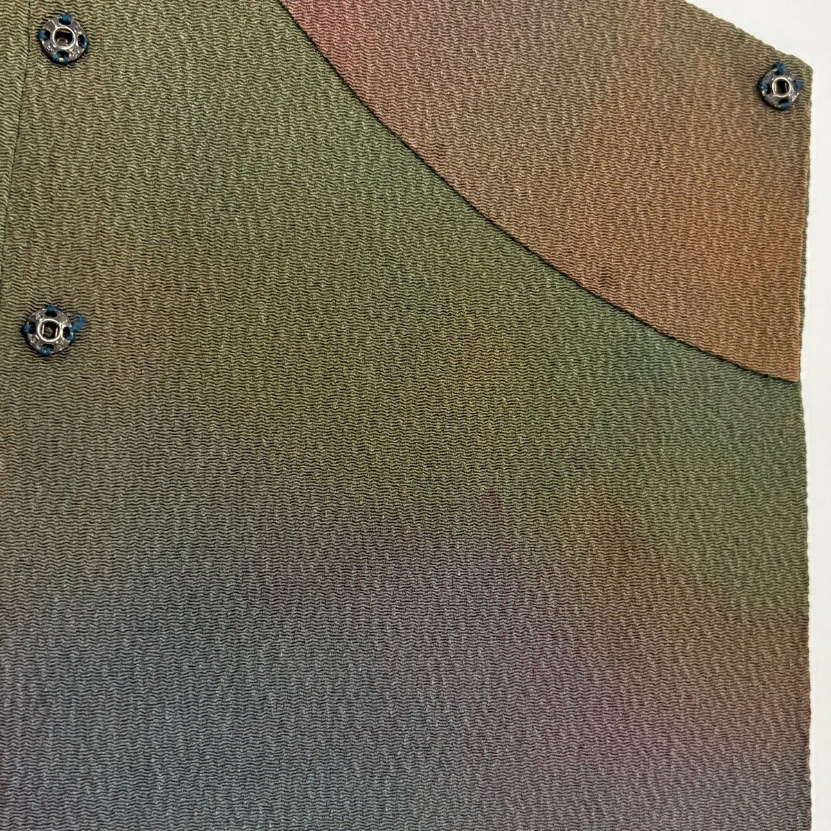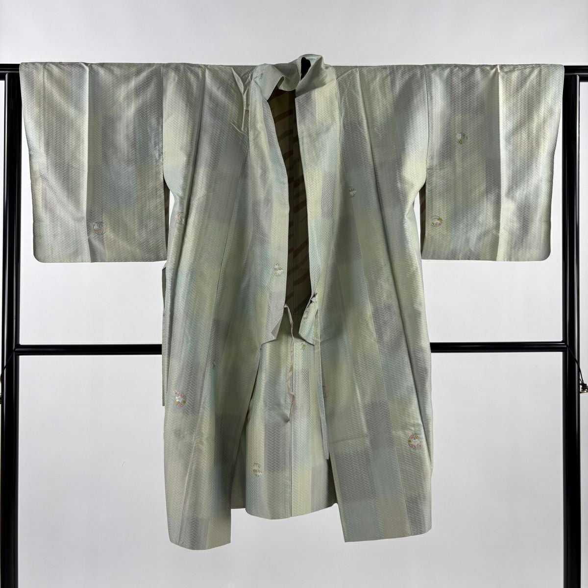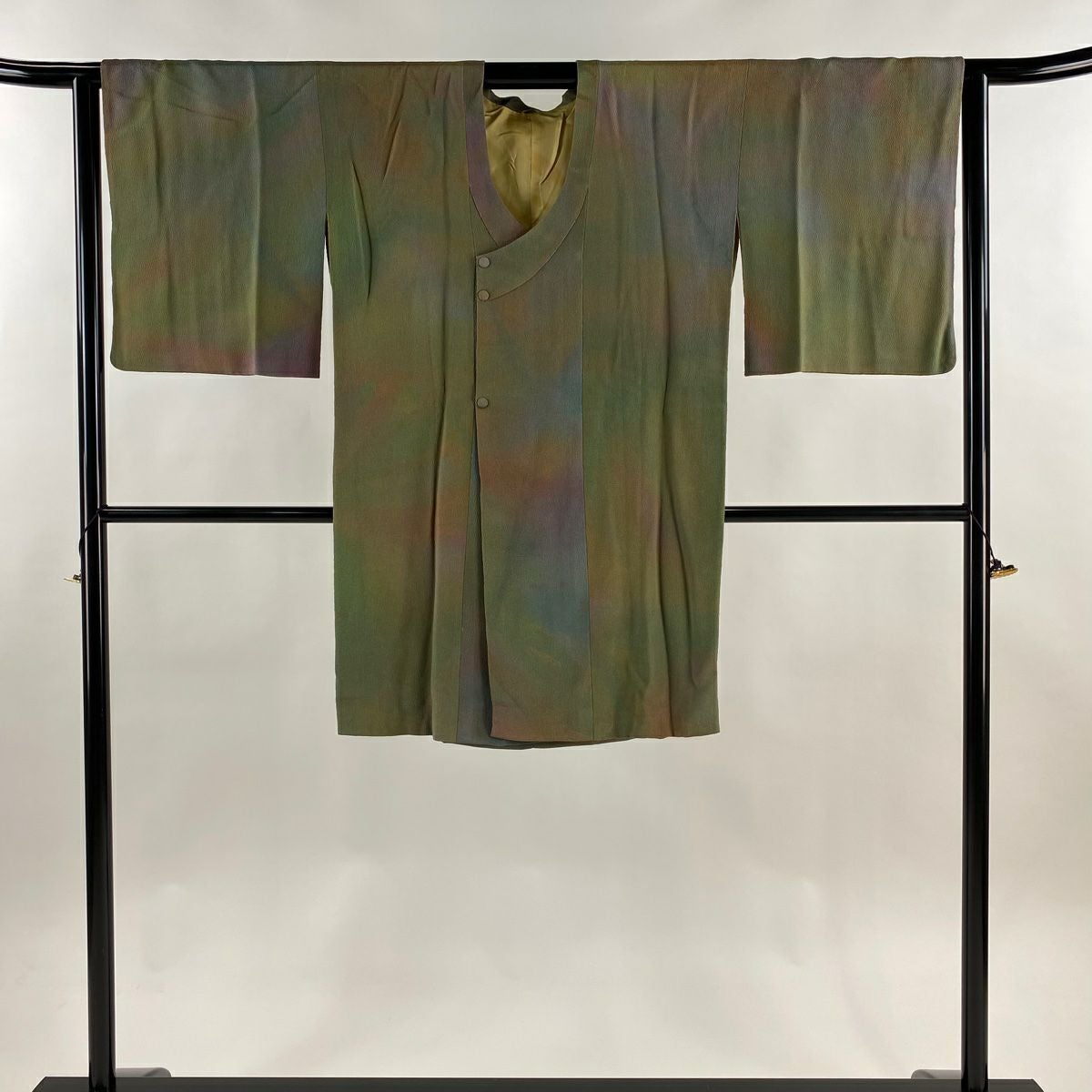【在庫一掃】 道行 身丈100cm 裄丈63cm S 和装コート 千代田衿 ぼかし ちりめん 茶緑色 正絹 秀品
